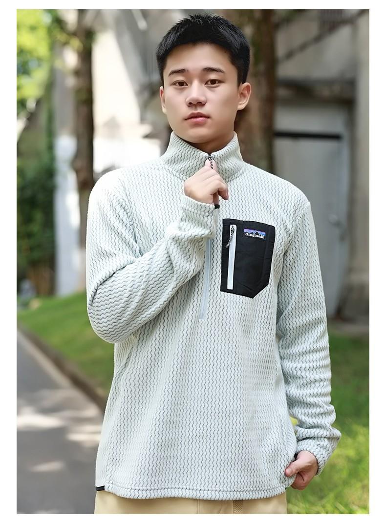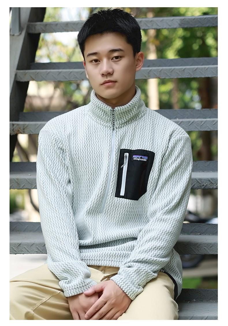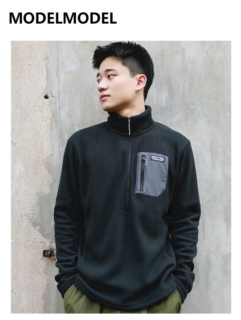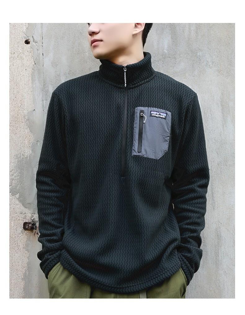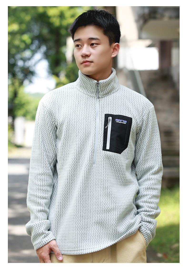 平替速干锁温透气半拉链立领户外秋冬季提花抓绒衣运动滑雪中间层