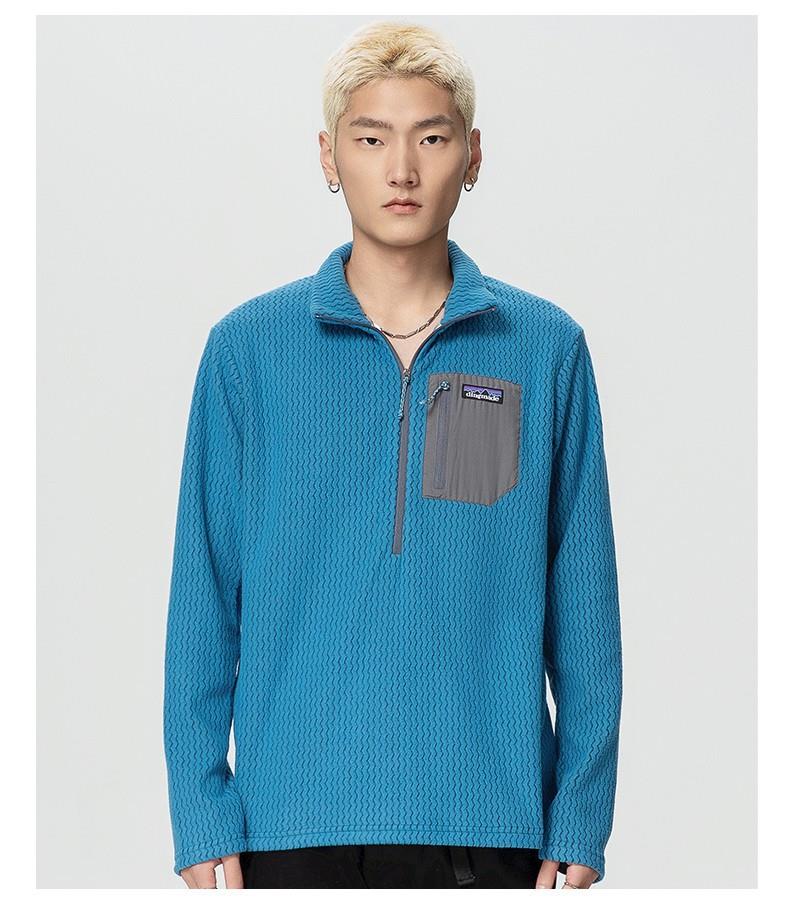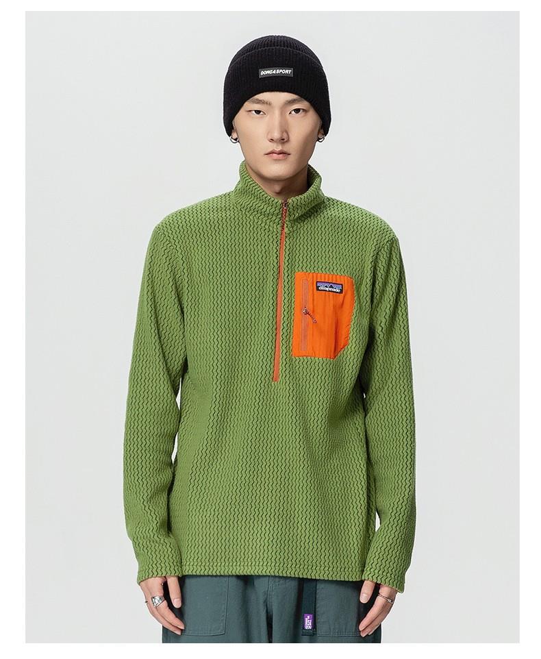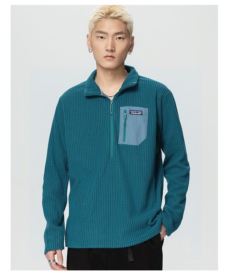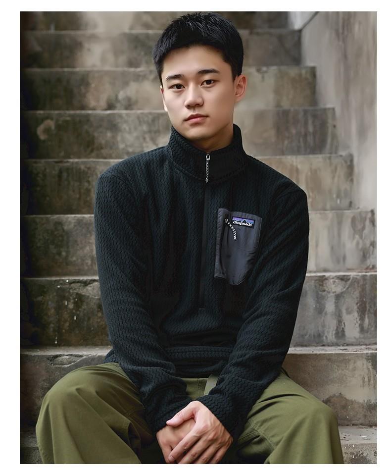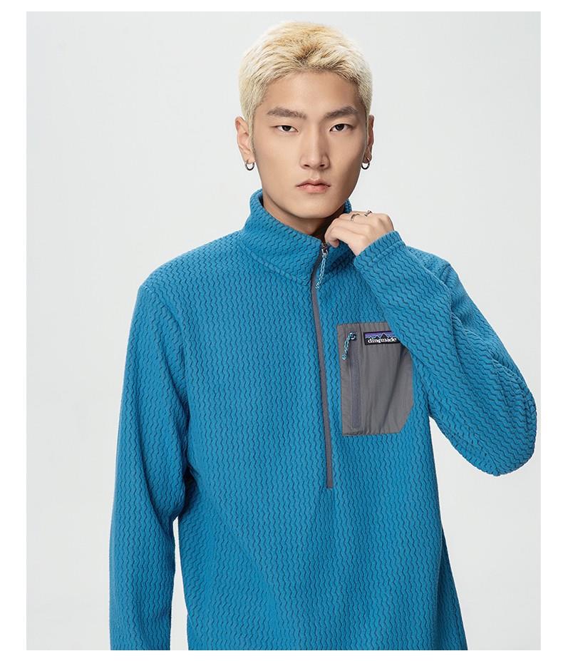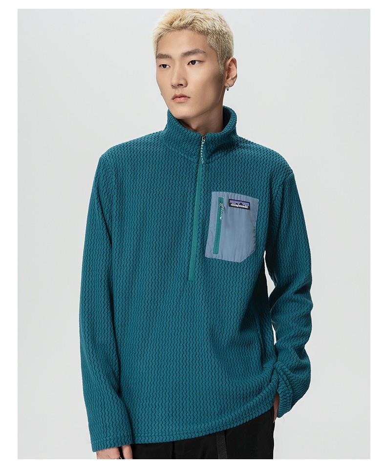 平替速干锁温透气半拉链立领户外秋冬季提花抓绒衣运动滑雪中间层