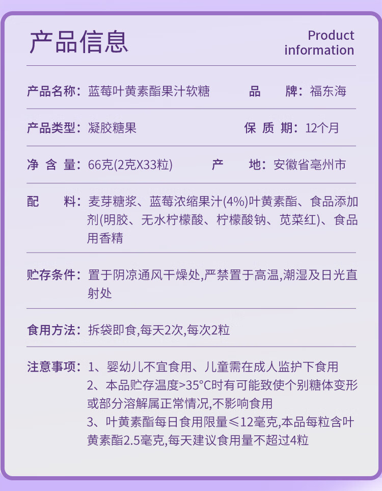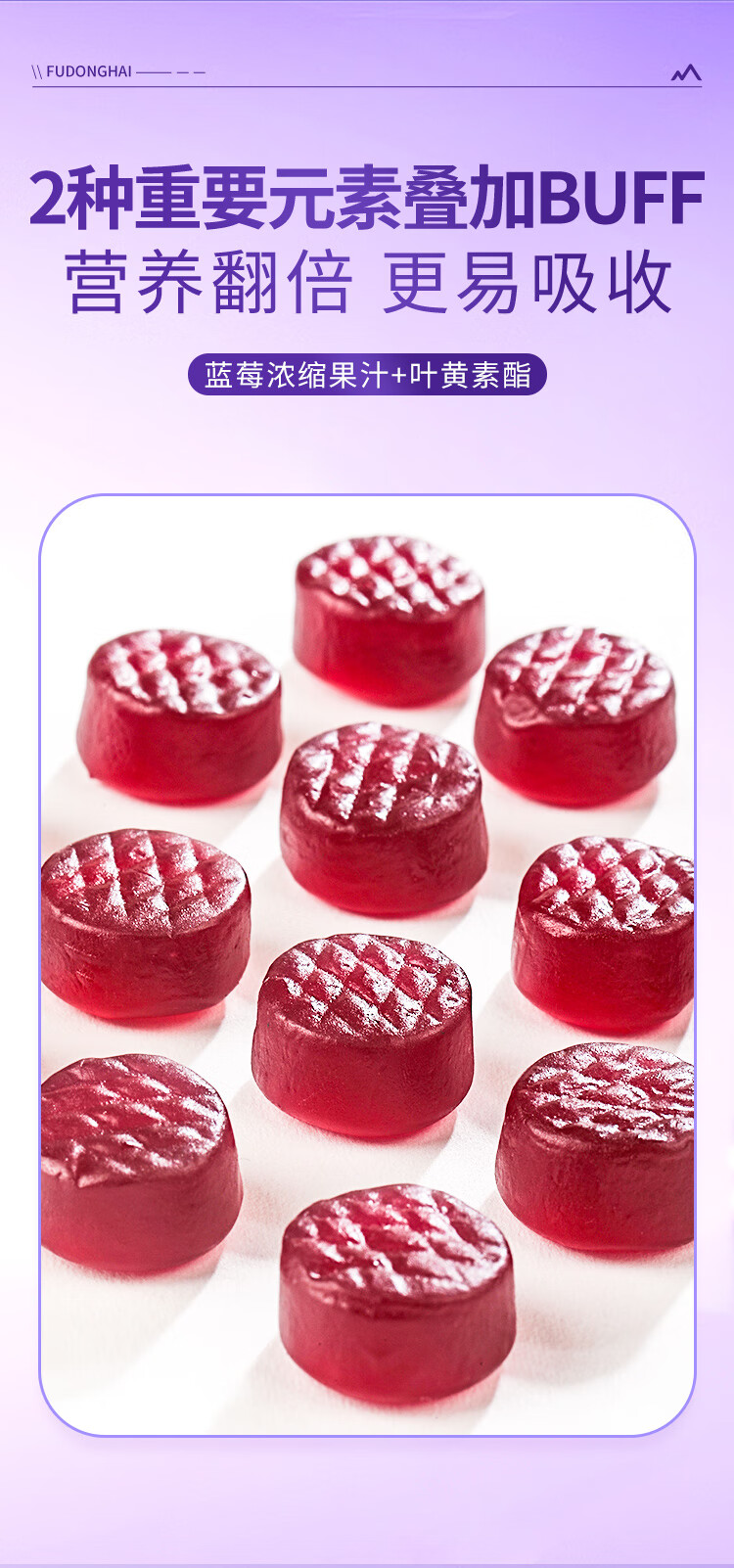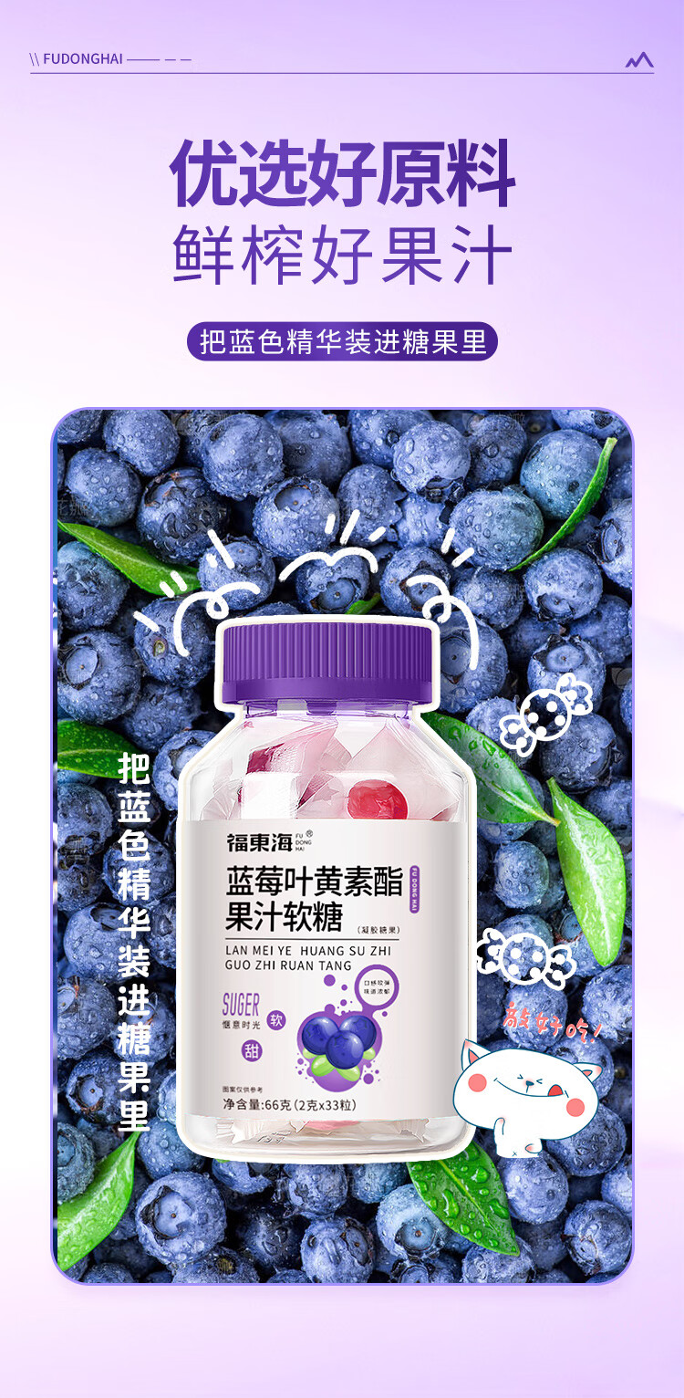 【福东海】蓝莓叶黄素酯果汁软糖66克(2克x33粒)/盒