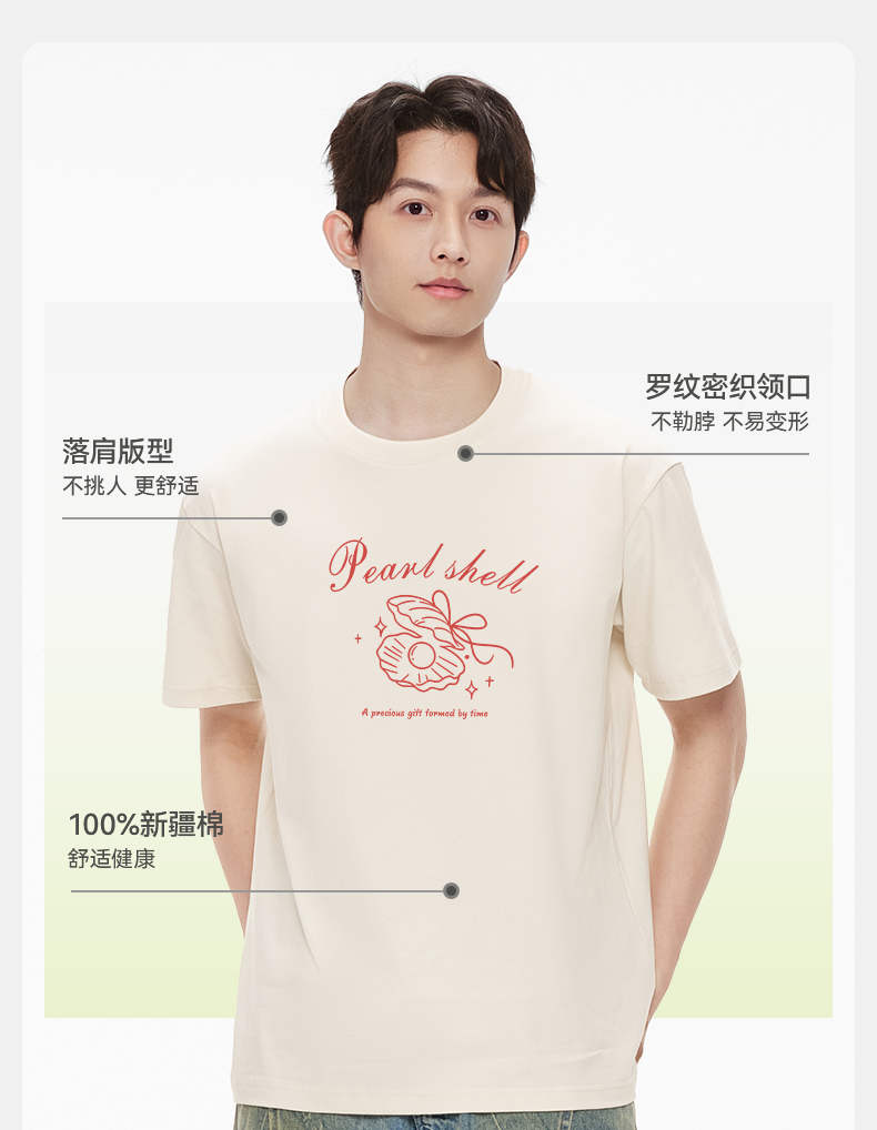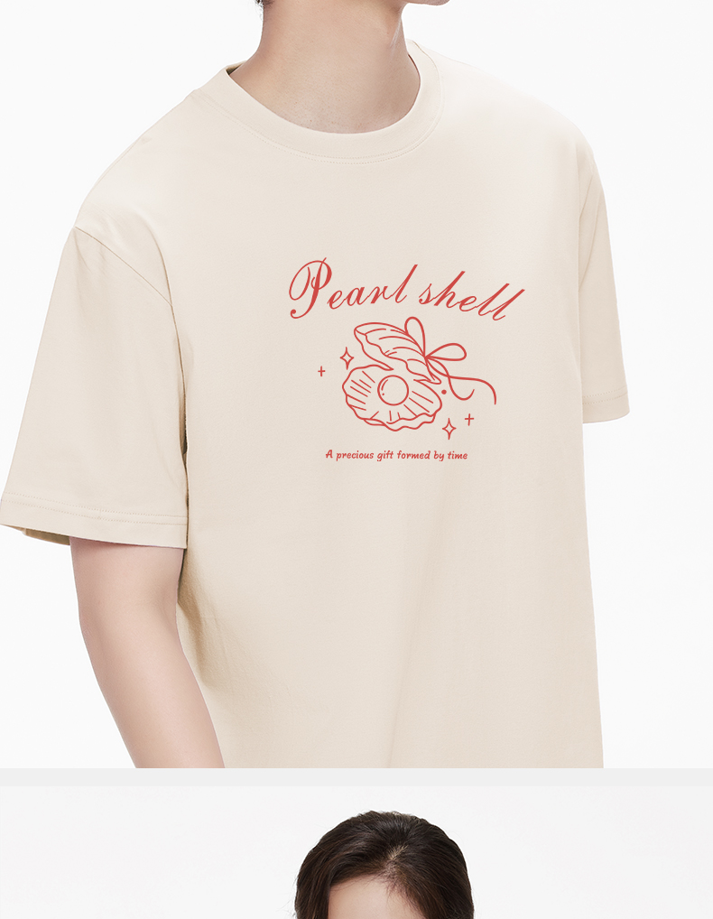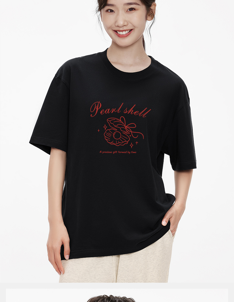 「棉的美学」纯棉修身圆领短袖T恤夏季新款贝壳印花宽松百搭上衣