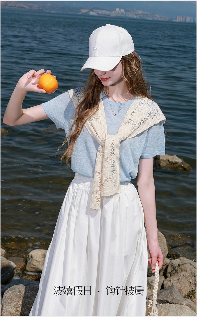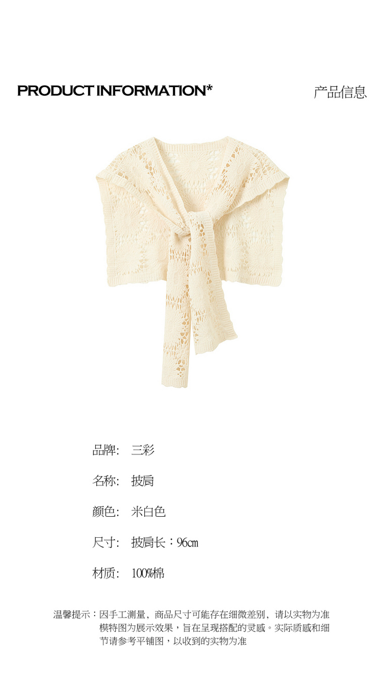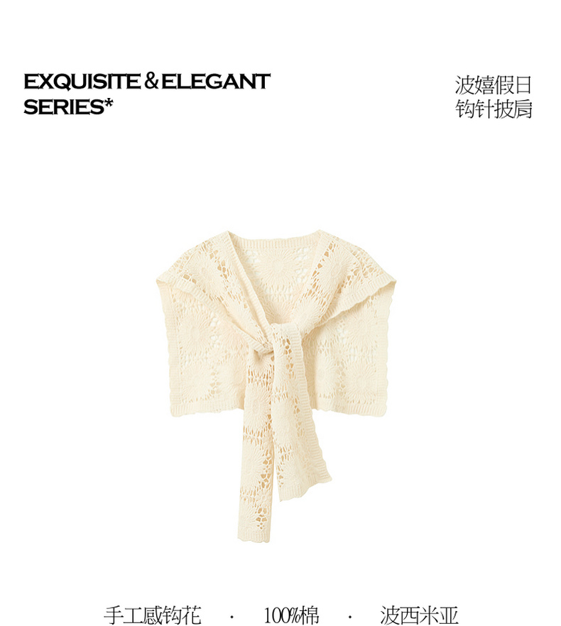 三彩2026新款波西米亚纯棉钩花小披肩手工感镂空氛围度假通勤约会