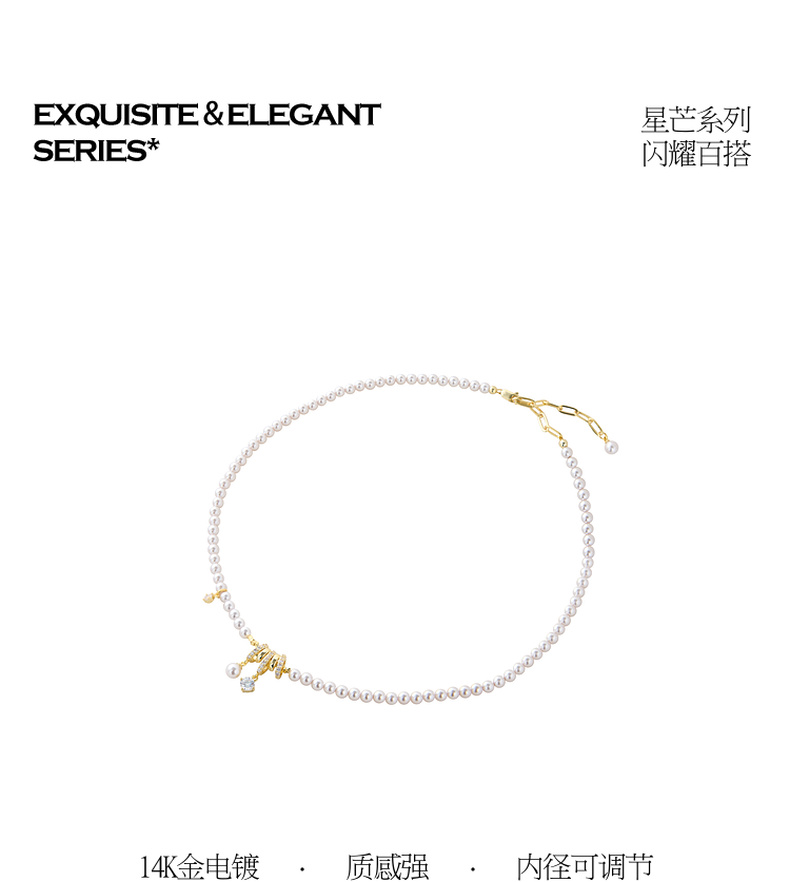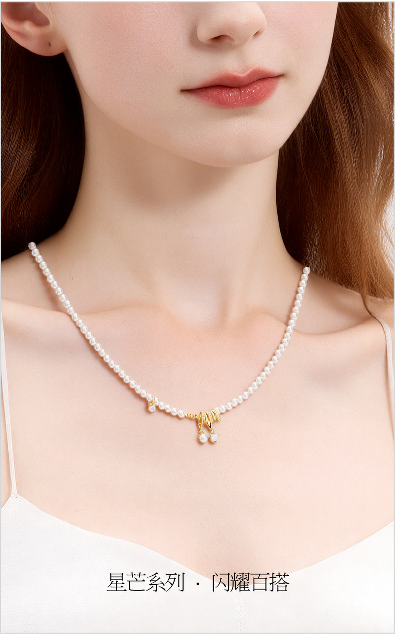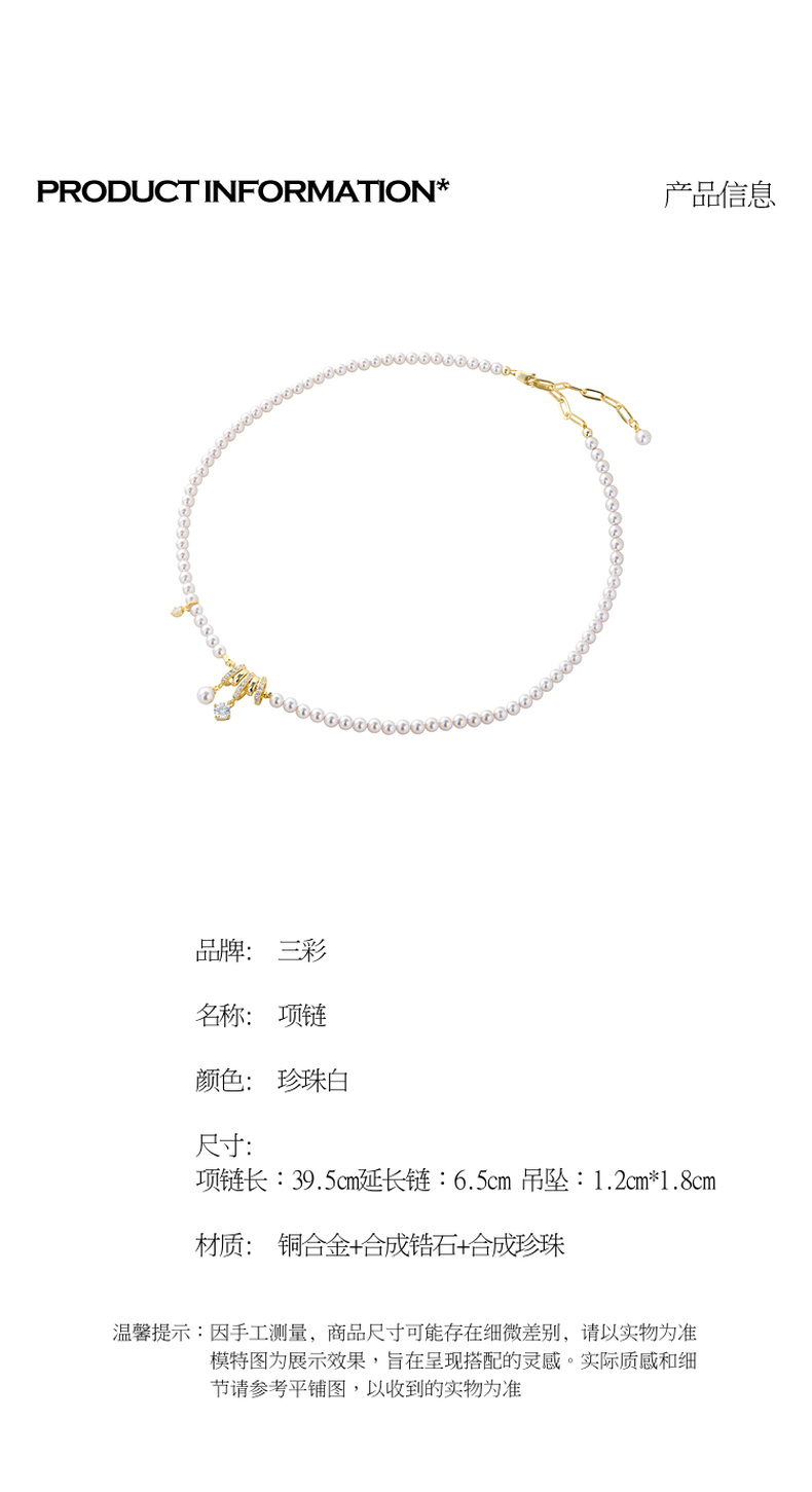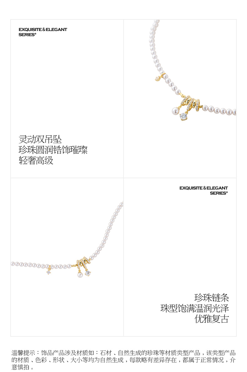 三彩2026新款锆饰双吊坠珍珠项链闪耀百搭贵气复古小众宴会约会