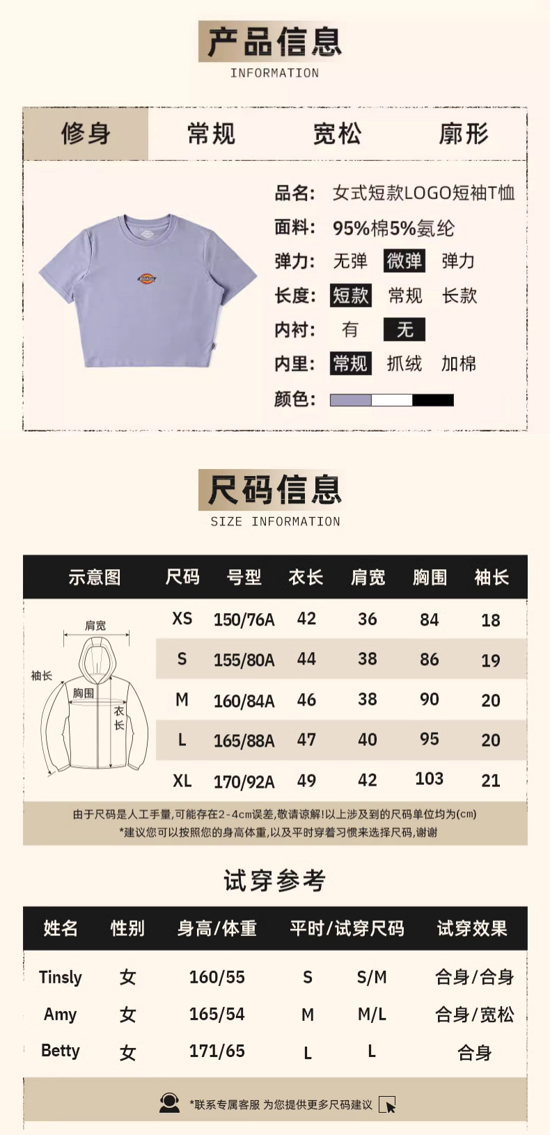 Dickies女式短款LOGO短袖T恤 舒适百搭修身短袖 DK012314
