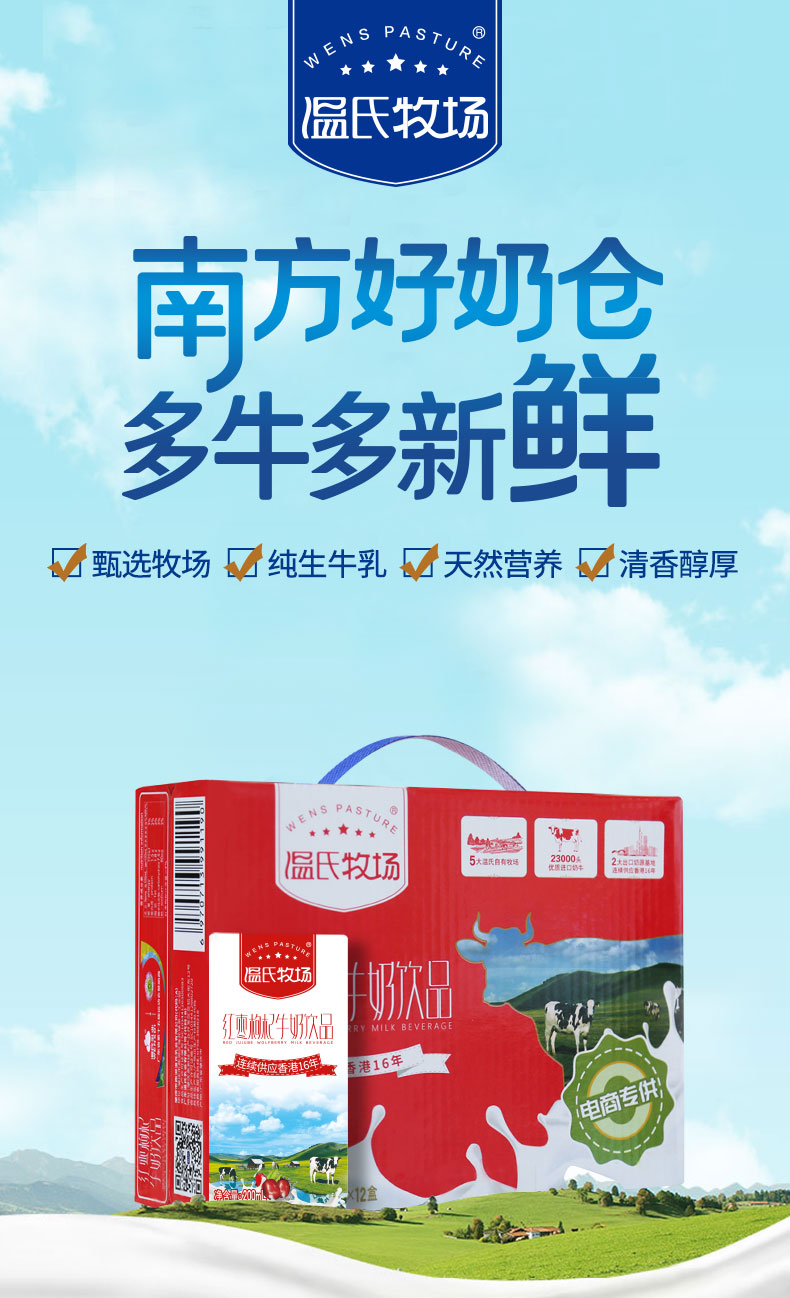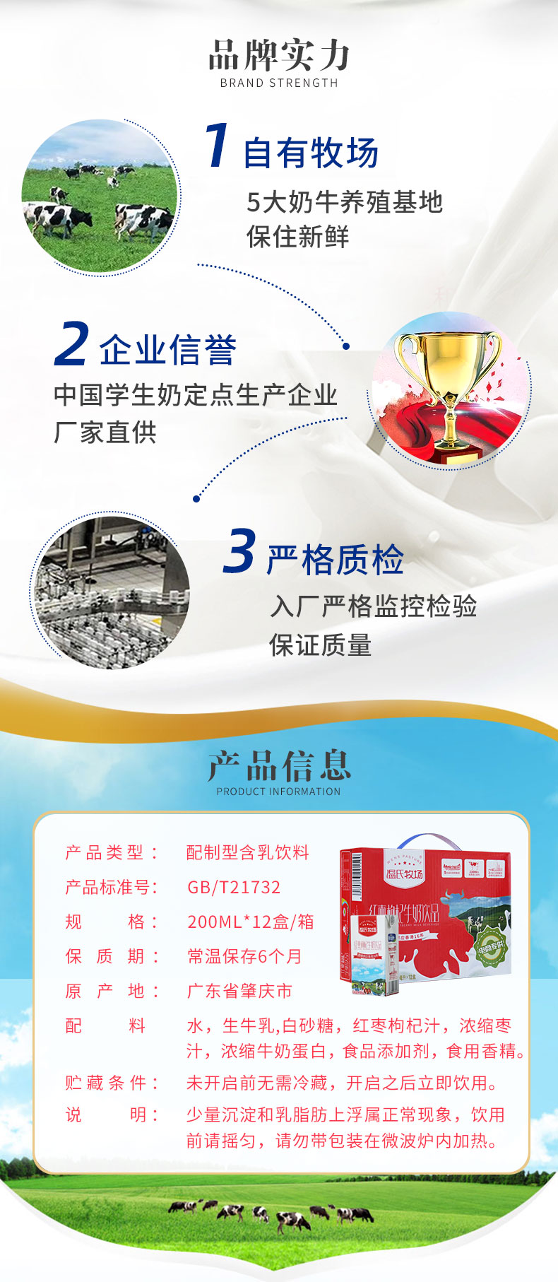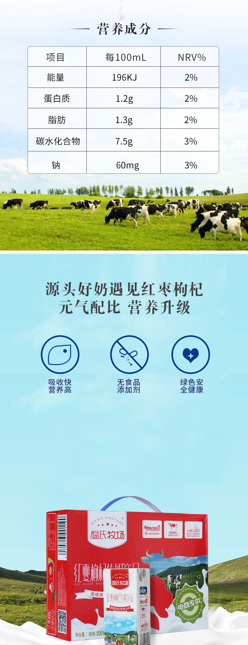温氏牧场红枣枸杞牛奶200ml×12盒每箱学生早餐营养奶