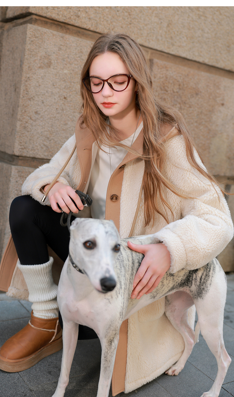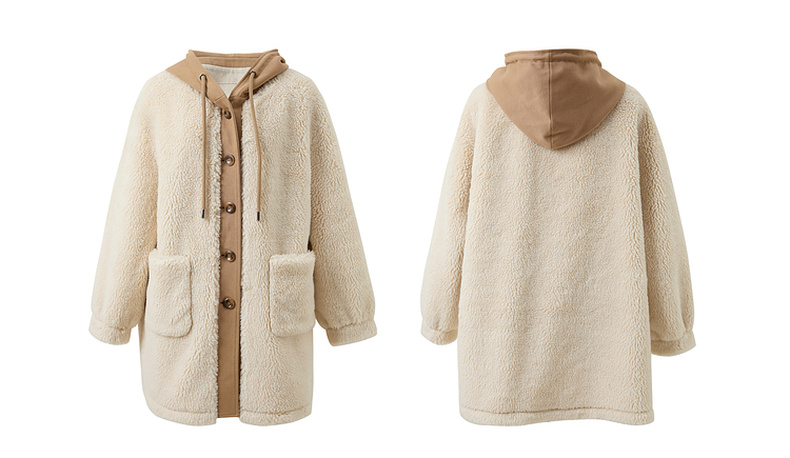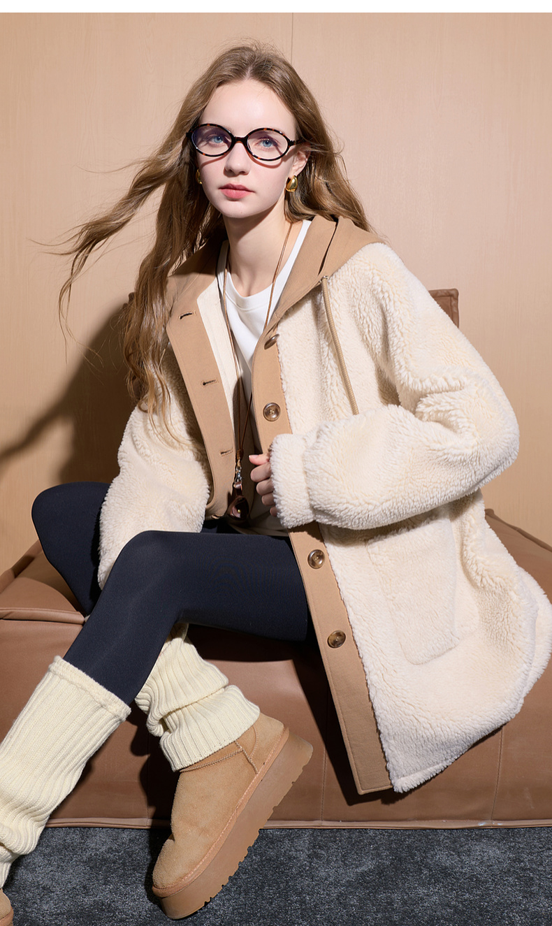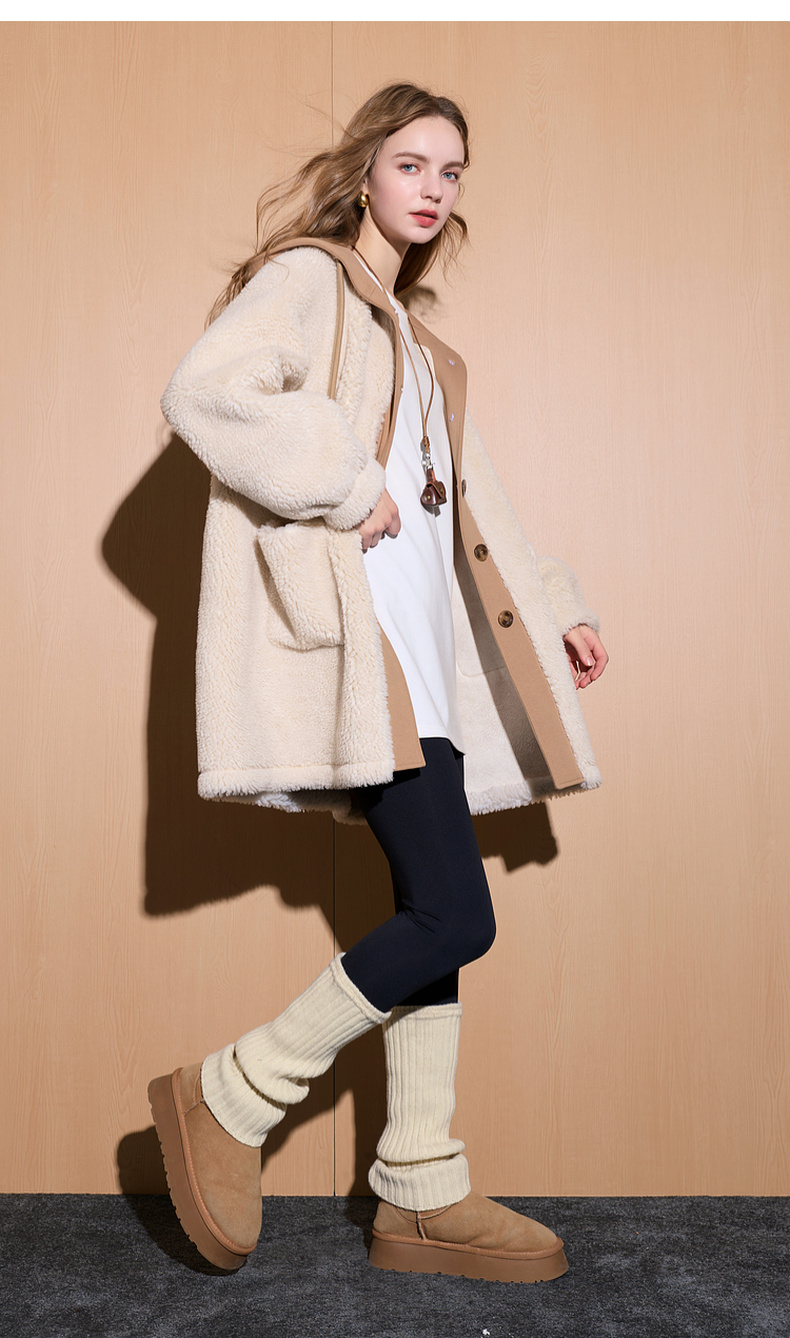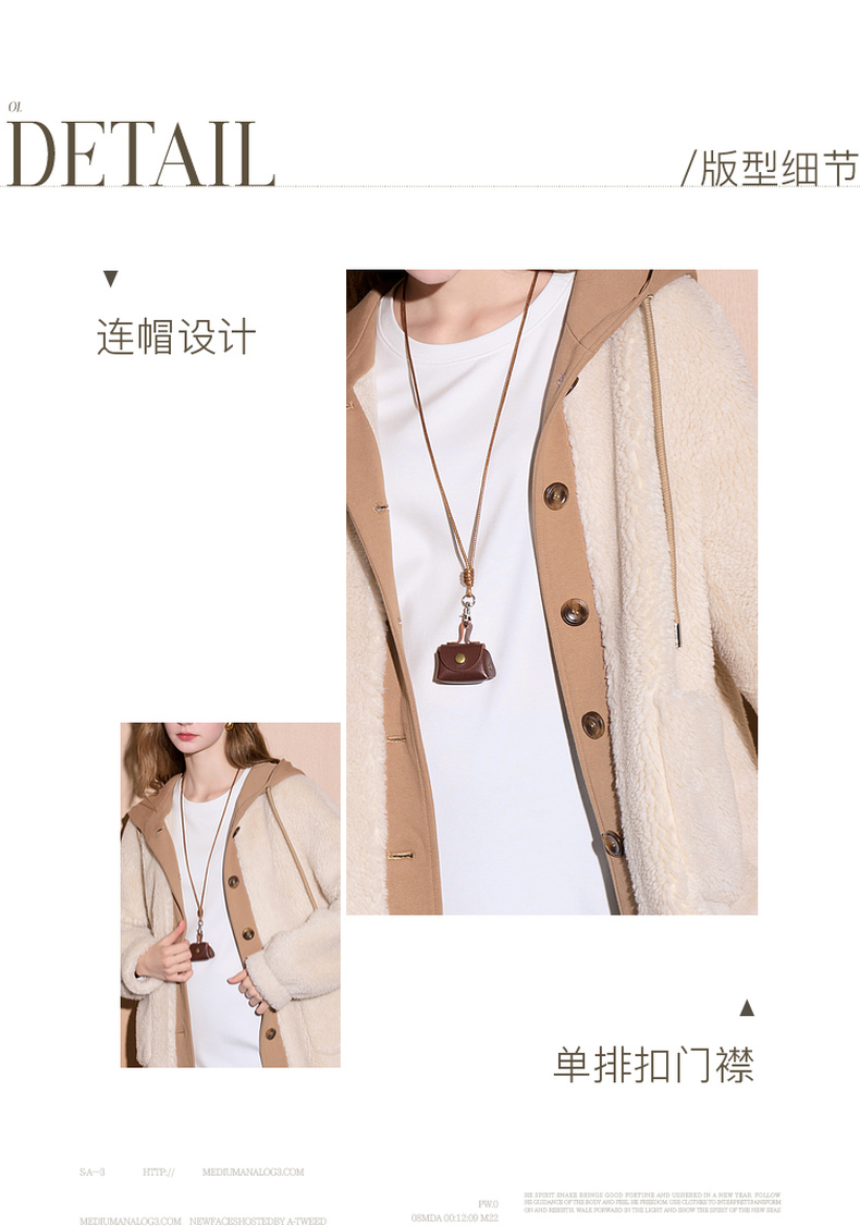 三彩2025冬季新款环保皮草连帽毛毛外套中长宽松仿皮草M