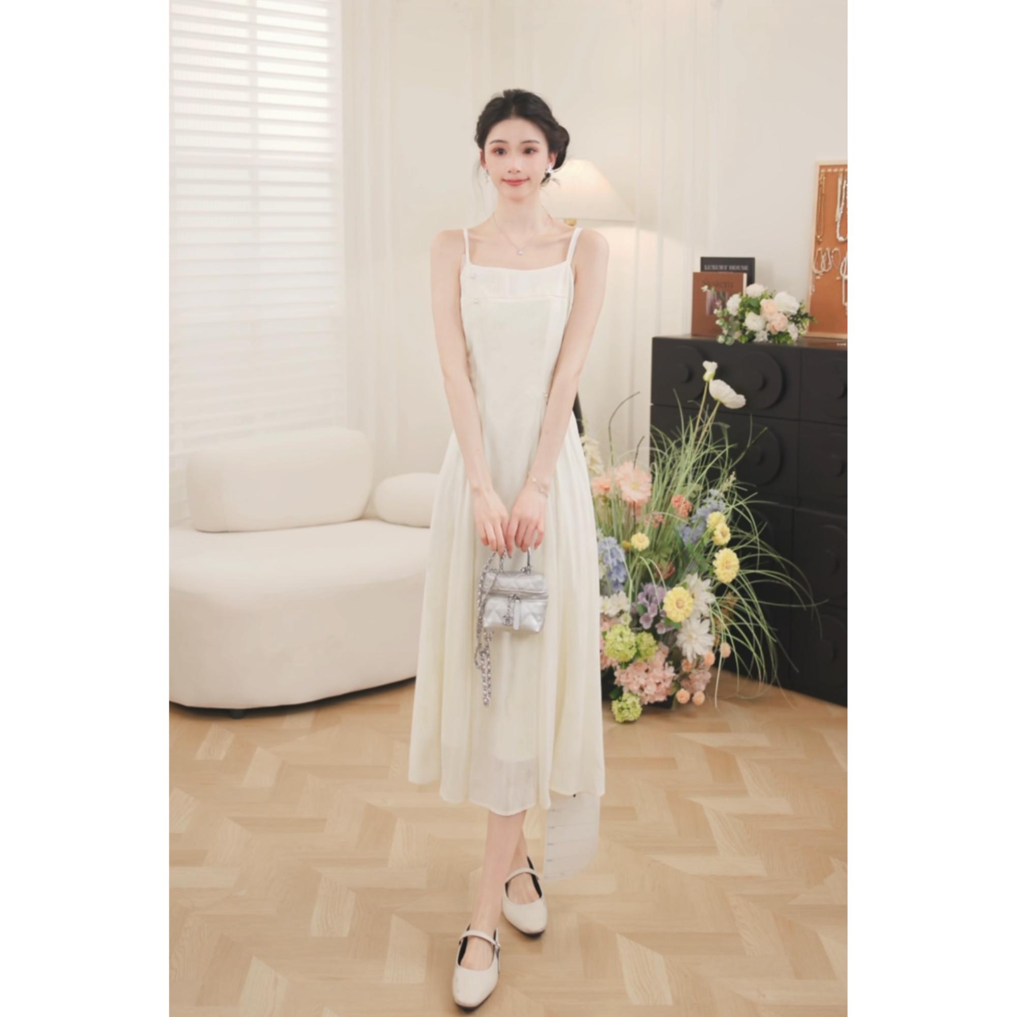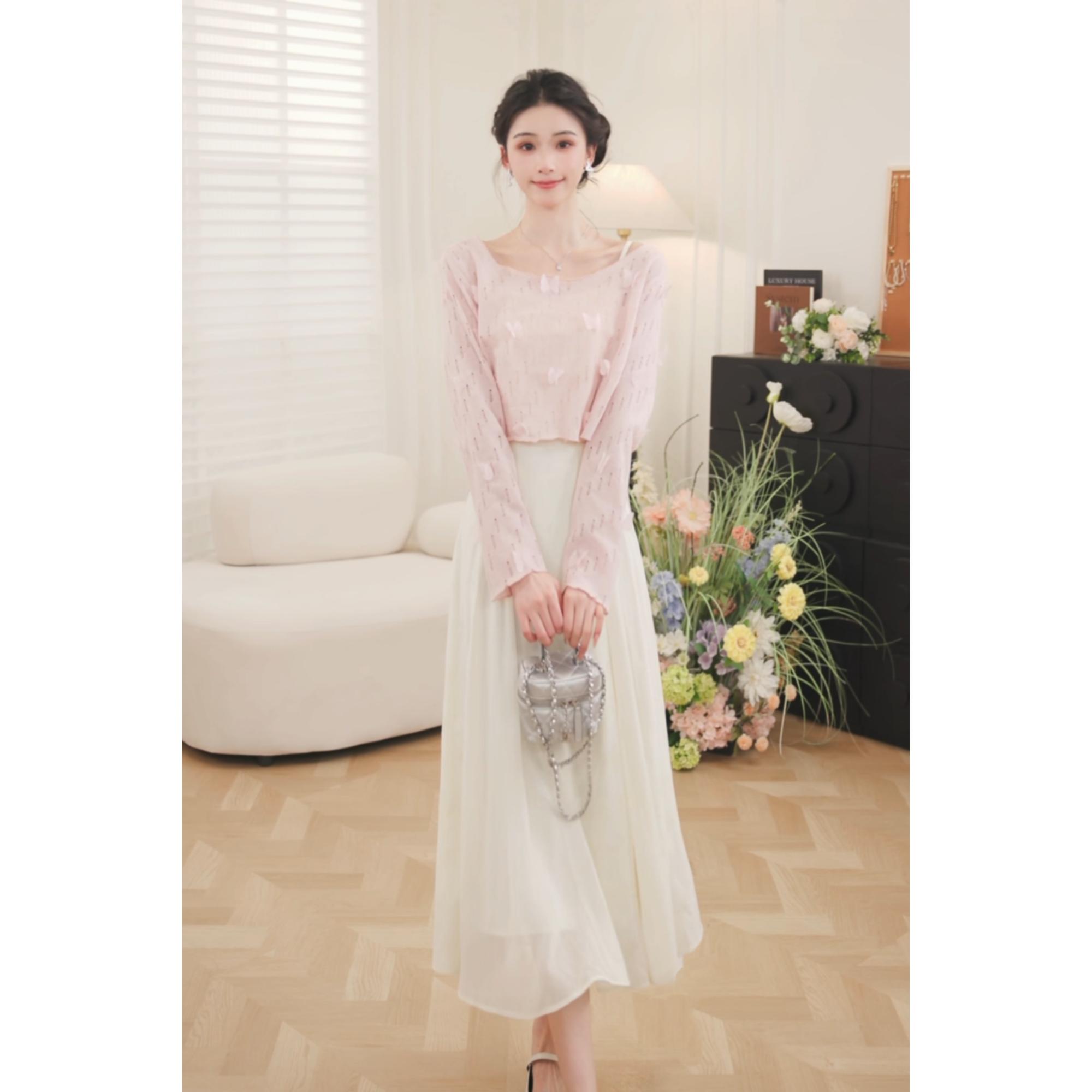 【65折秒杀】鹿向南「蝴蝶物语」2025年春夏新款粉色罩衫米白色吊带裙两件套