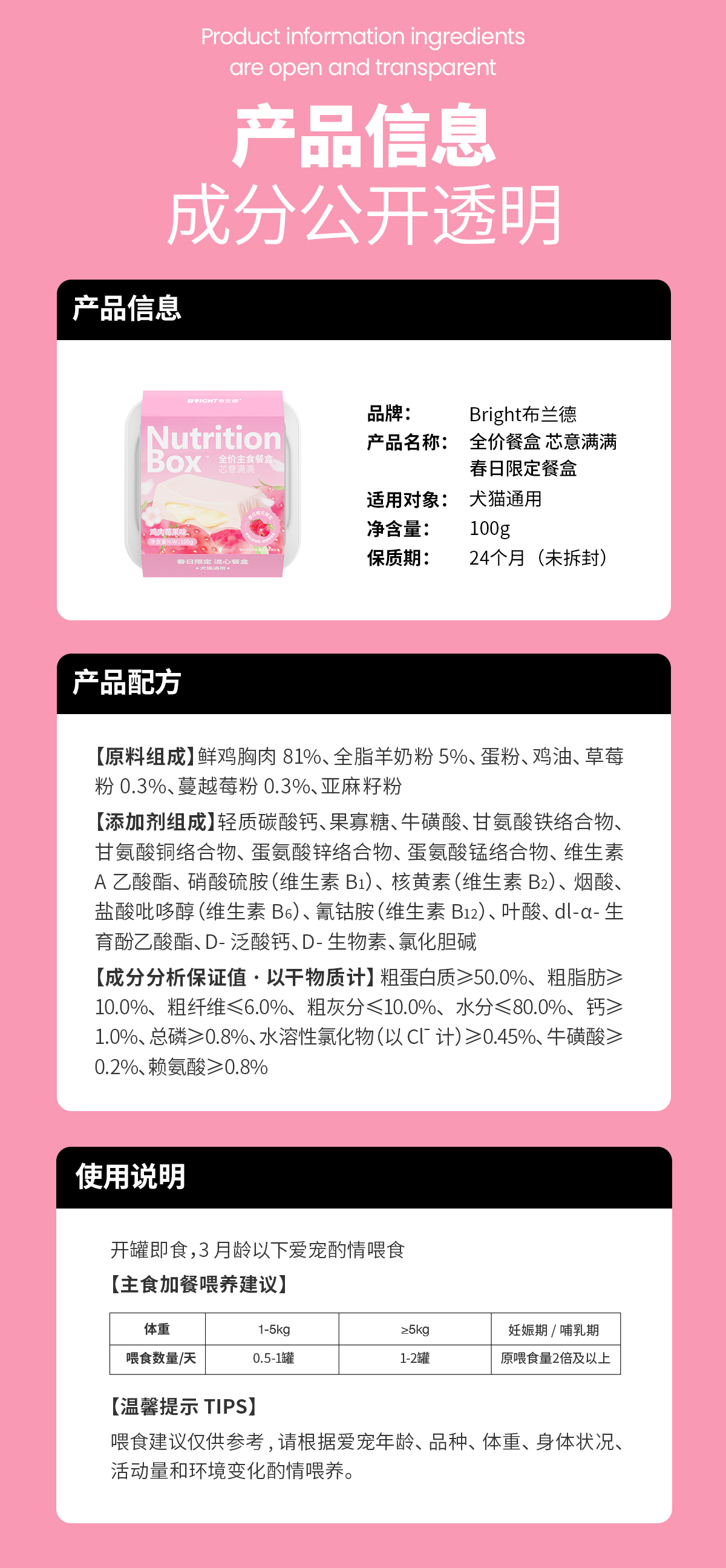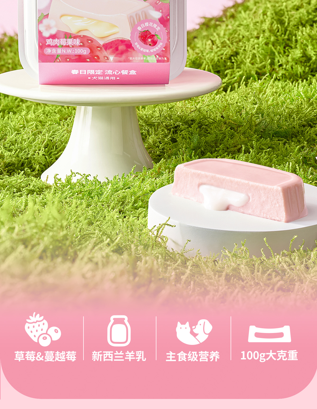 布兰德芯意满满-春日限定流心餐盒鸡肉莓果味100g(犬猫通用)