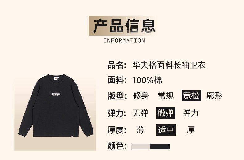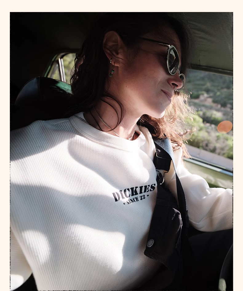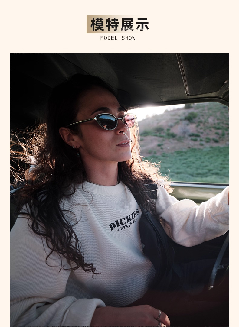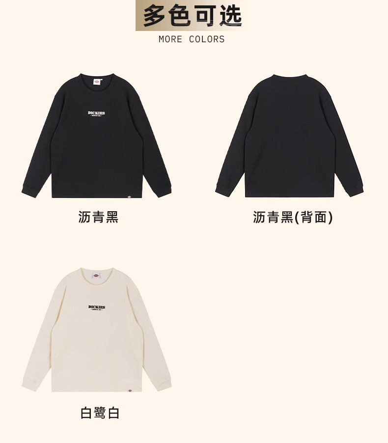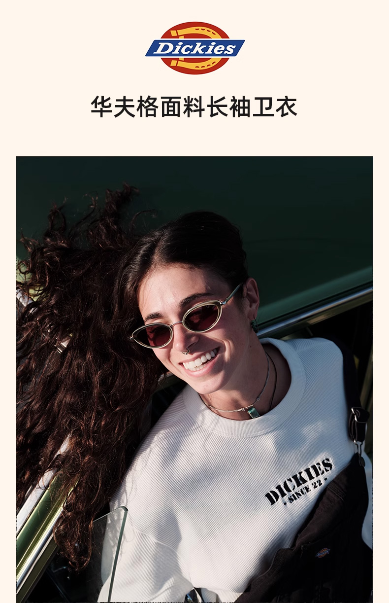 Dickies【田嘉瑞同款】华夫格面料长袖卫衣字母刺绣圆领上衣 DK0A8821