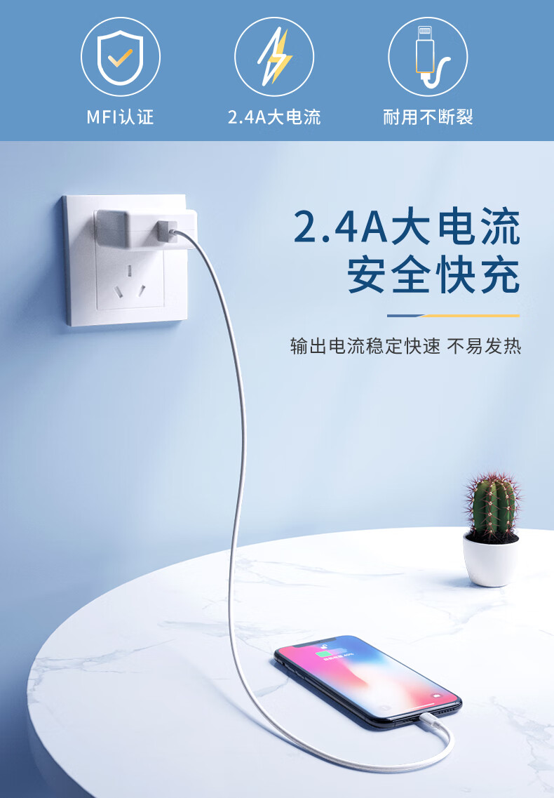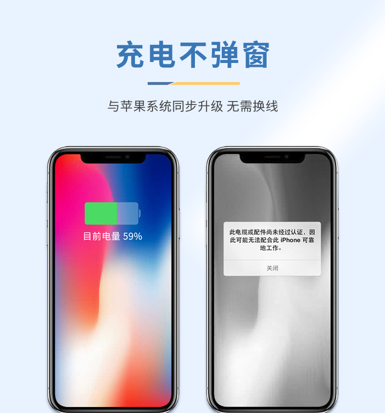 购买须知:这款是苹果MFI认证的数据线,质量做工很好,由于存放时间较长,外观可能会有发黄现象,但不影响使用。