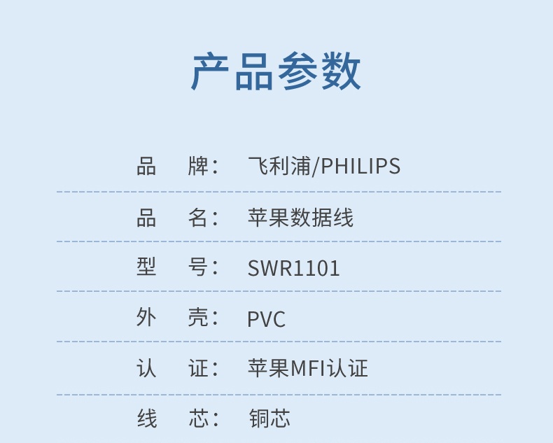PHILIPS/飞利浦 SWR1101/93 苹果数据线 MFI苹果认证 USB-A转Lightning 充电线