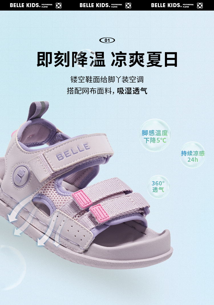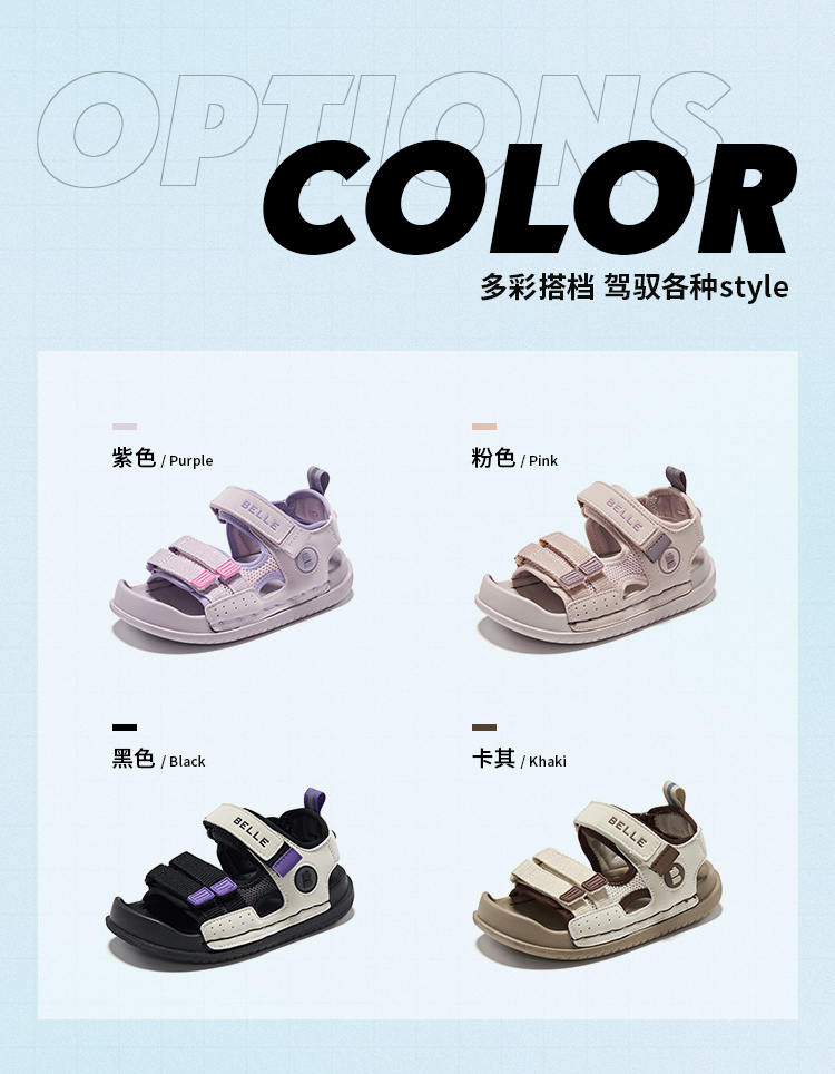 【中大童露趾镂空溯溪鞋】百丽品牌直发!🌲出门游玩必备时尚好物 轻盈舒适,步履轻盈✅风格简约、精美,又充满童趣!✅鞋身轻便,橡胶大底防滑慢回弹❗减震耐磨 ✅粘扣设计,方便穿脱! 即穿即走