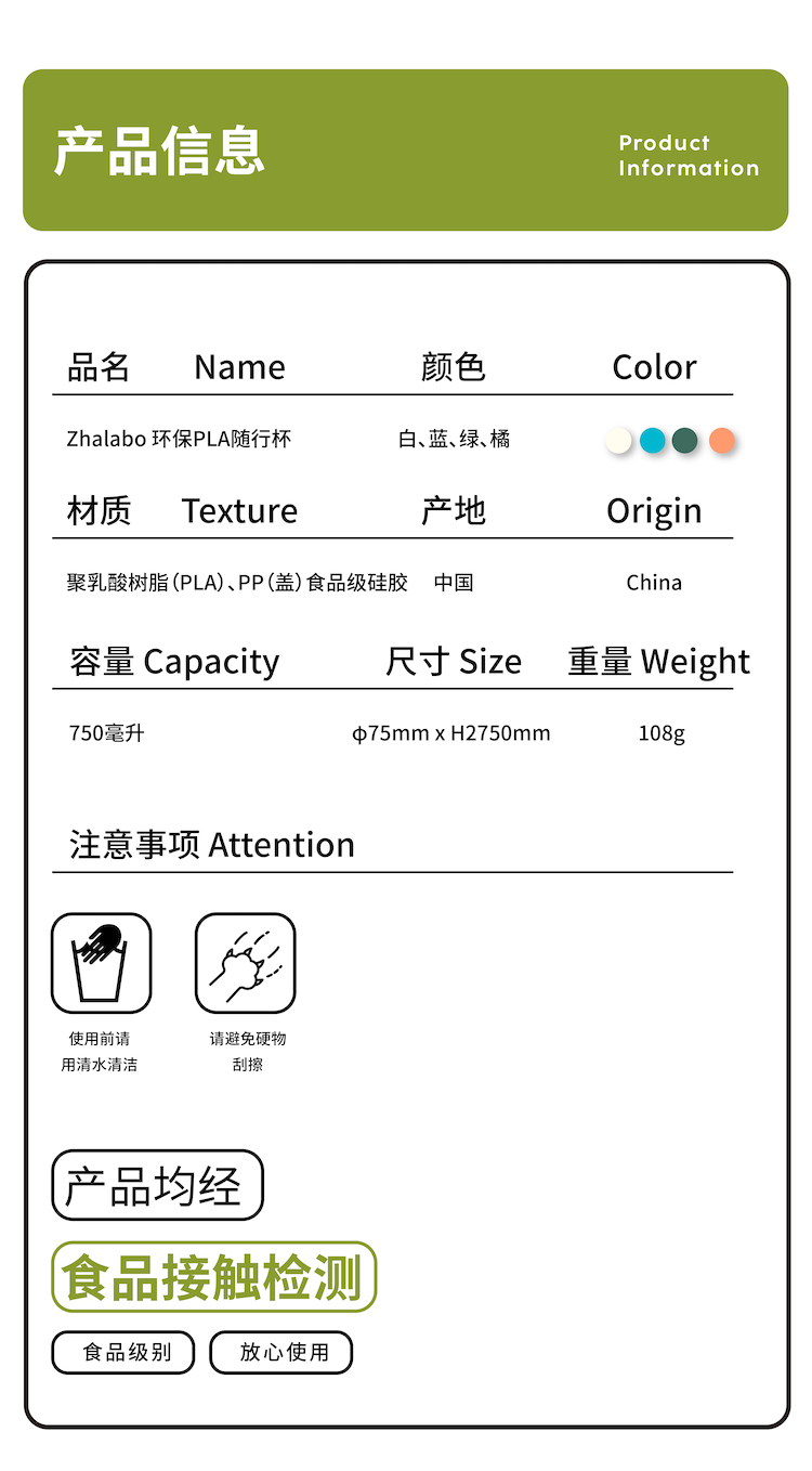 【定制产品拍下不发货】可降解PLA吨吨杯750ml 定制logo