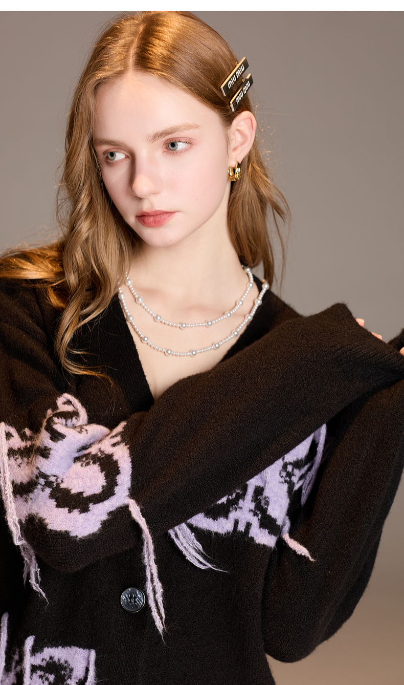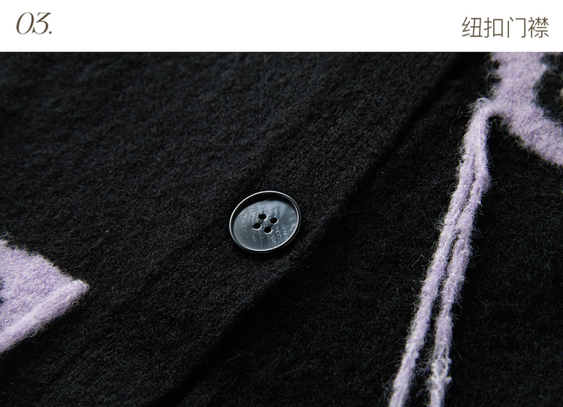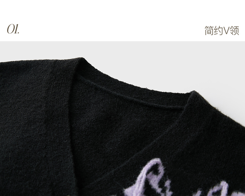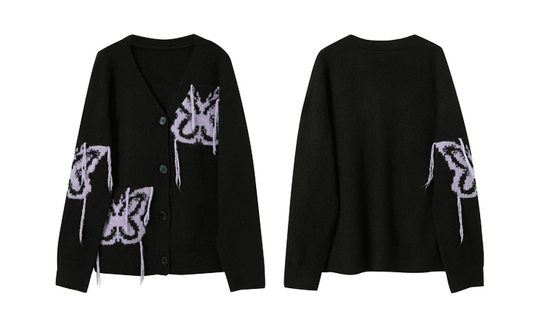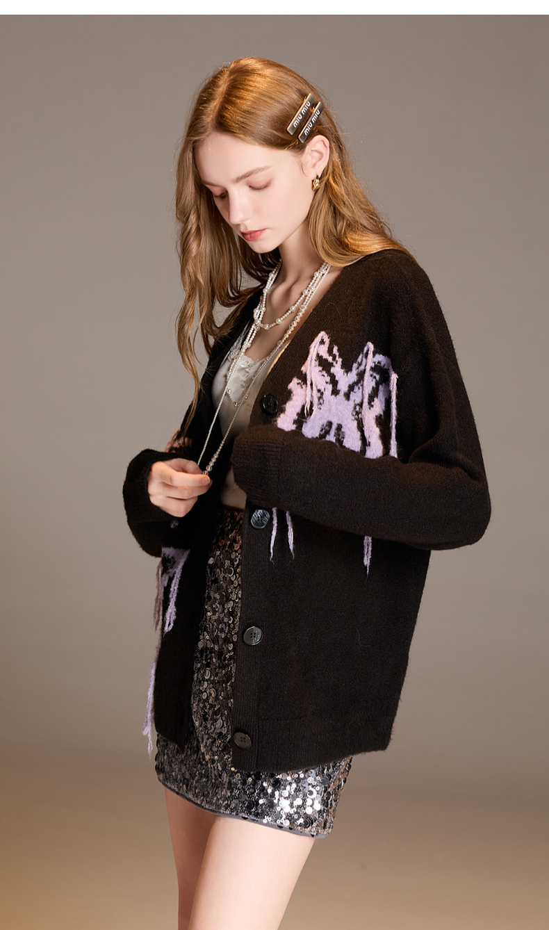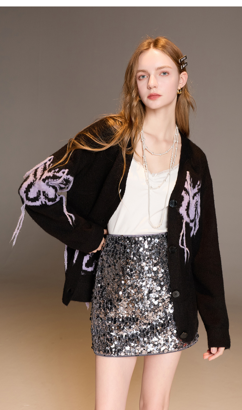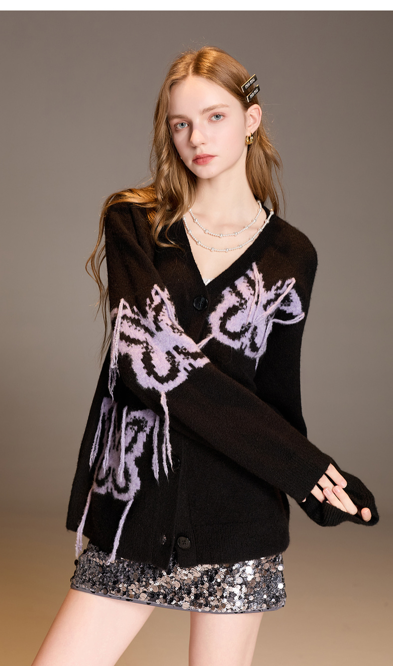 三彩2025冬季新款宽松慵懒蝴蝶针织衫长袖单排扣开衫复古外套M