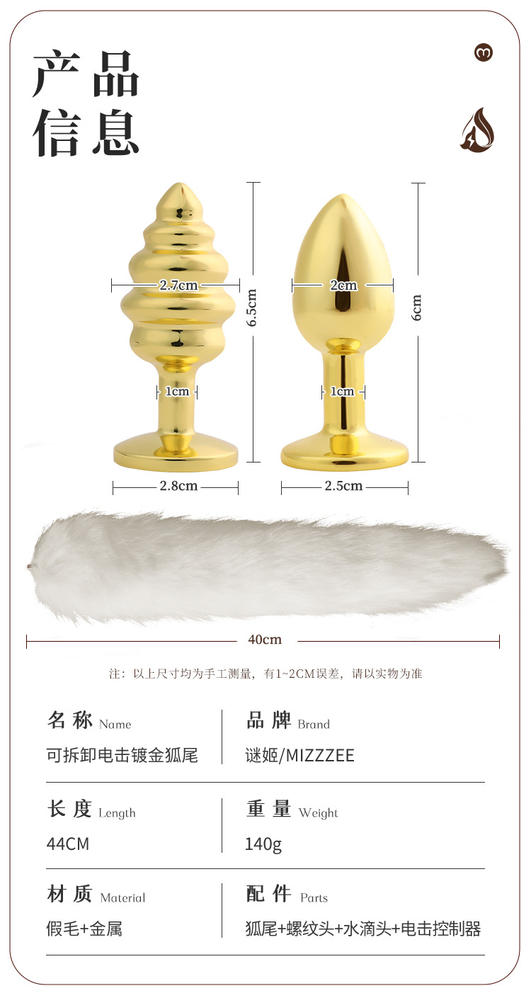 【谜姬】 SM可拆卸电击镀金狐尾情趣用品成人另类玩具刺激后庭震