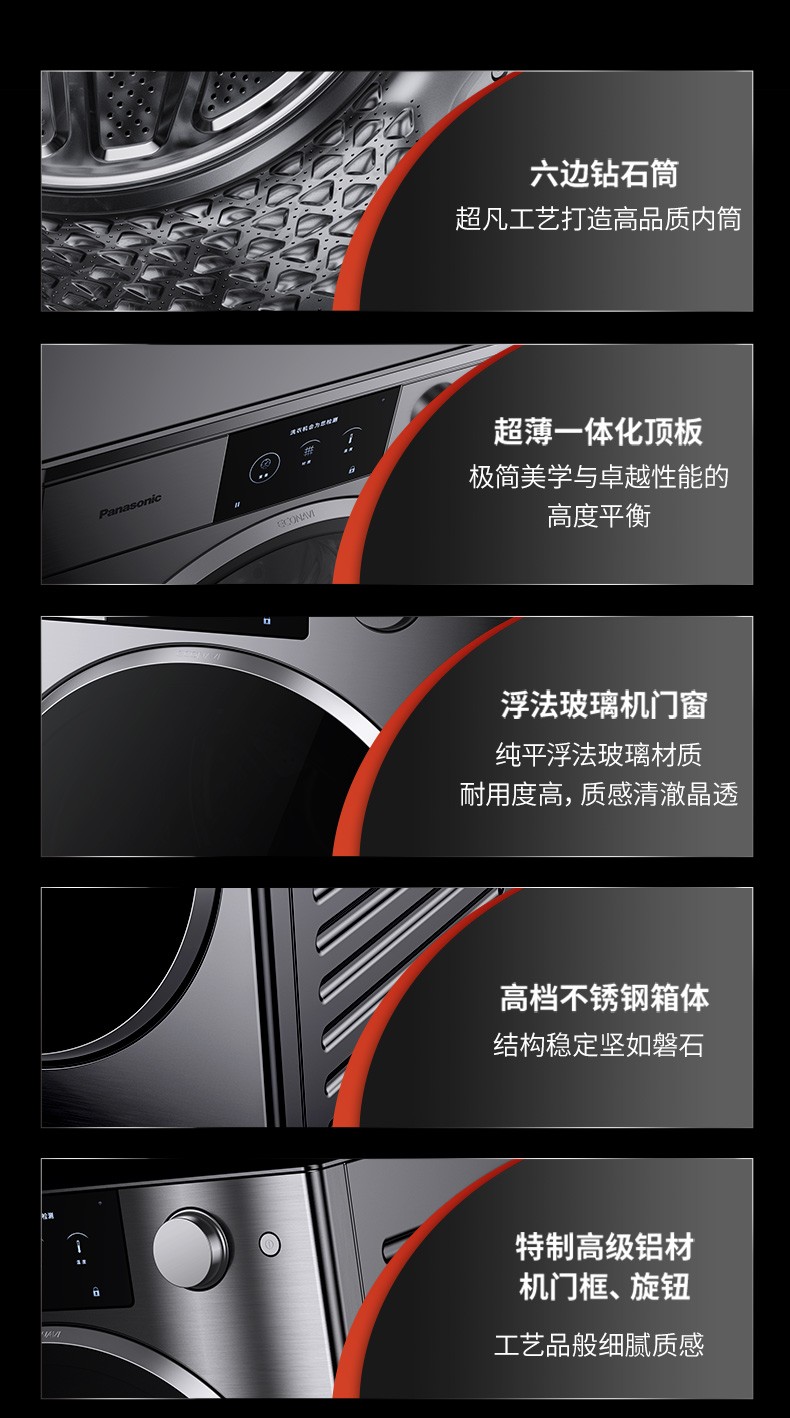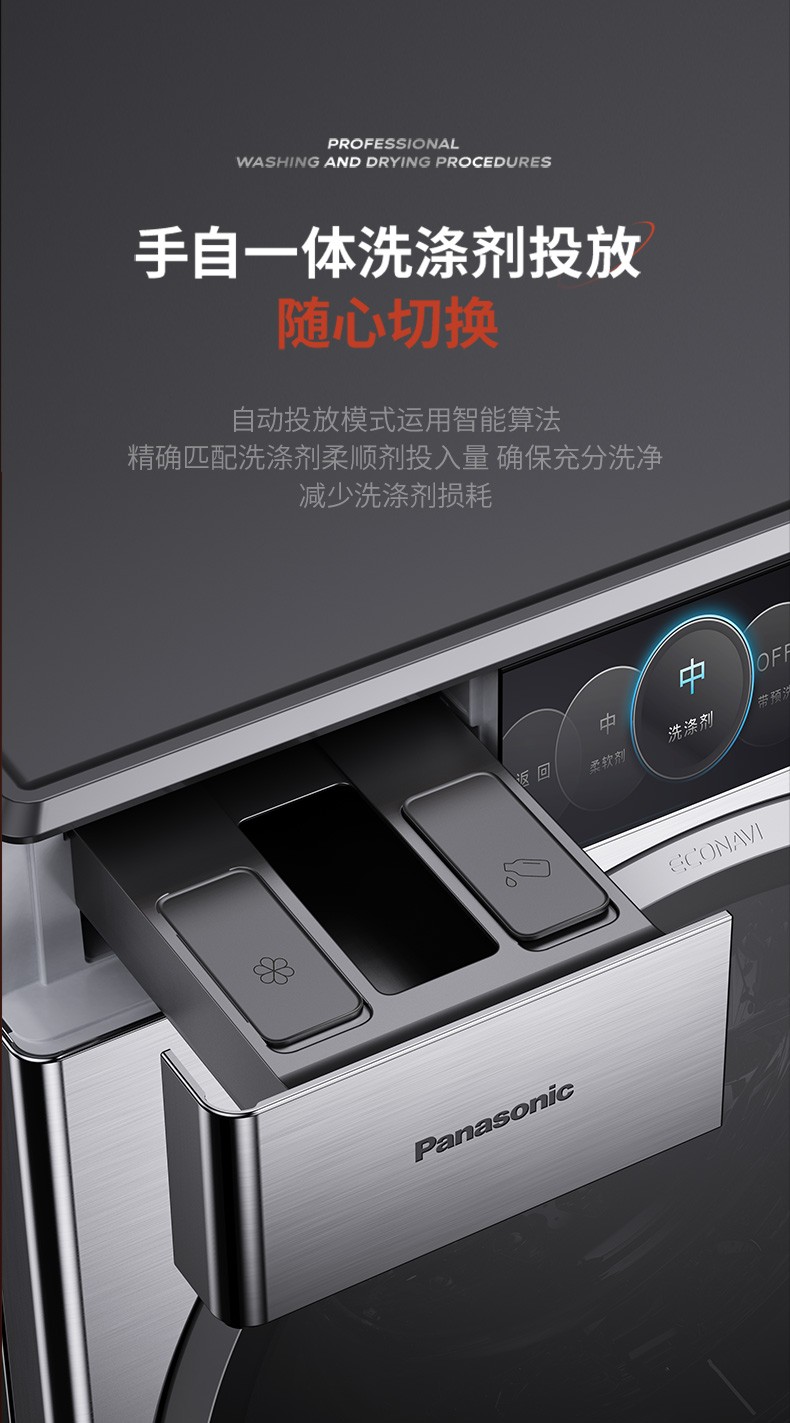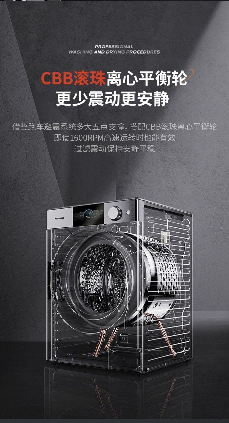 松下(Panasonic)阿尔法10公斤洗烘一体变频滚筒洗衣机保时捷设计旗舰款光动银纳诺怡自动投放 XQG100-P1DL