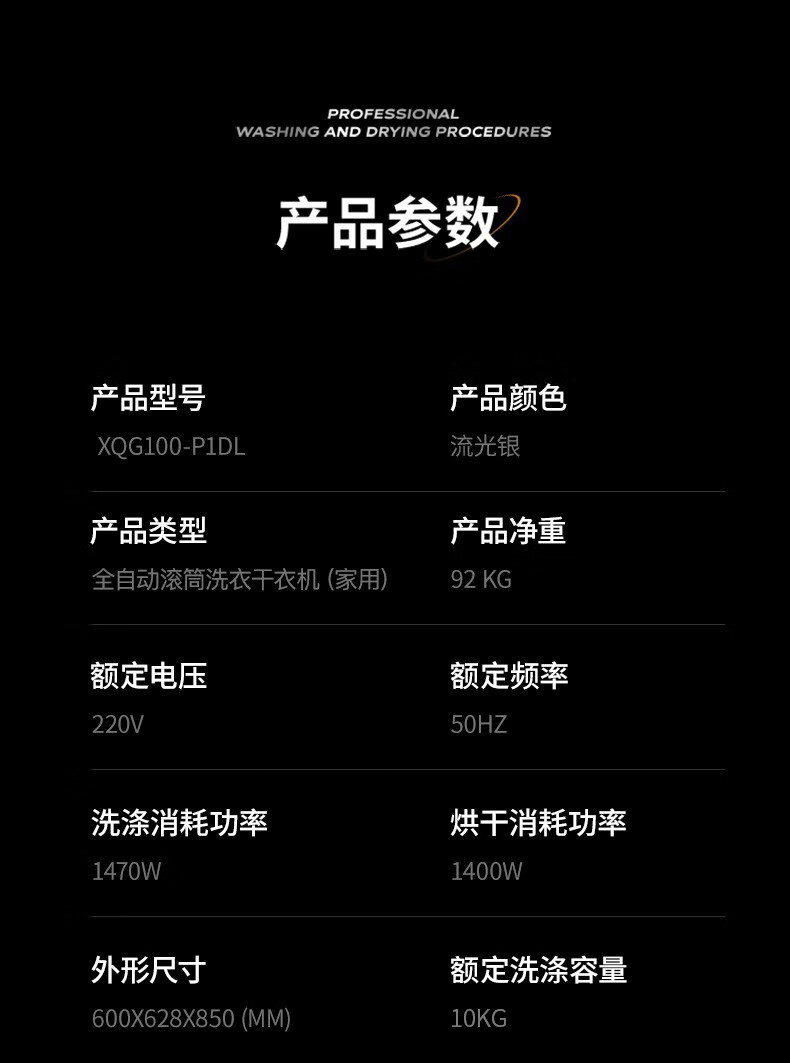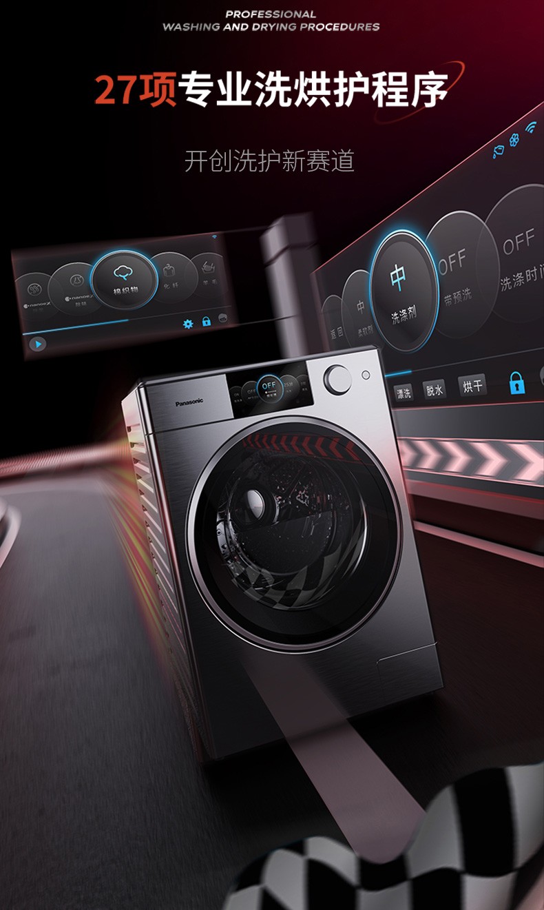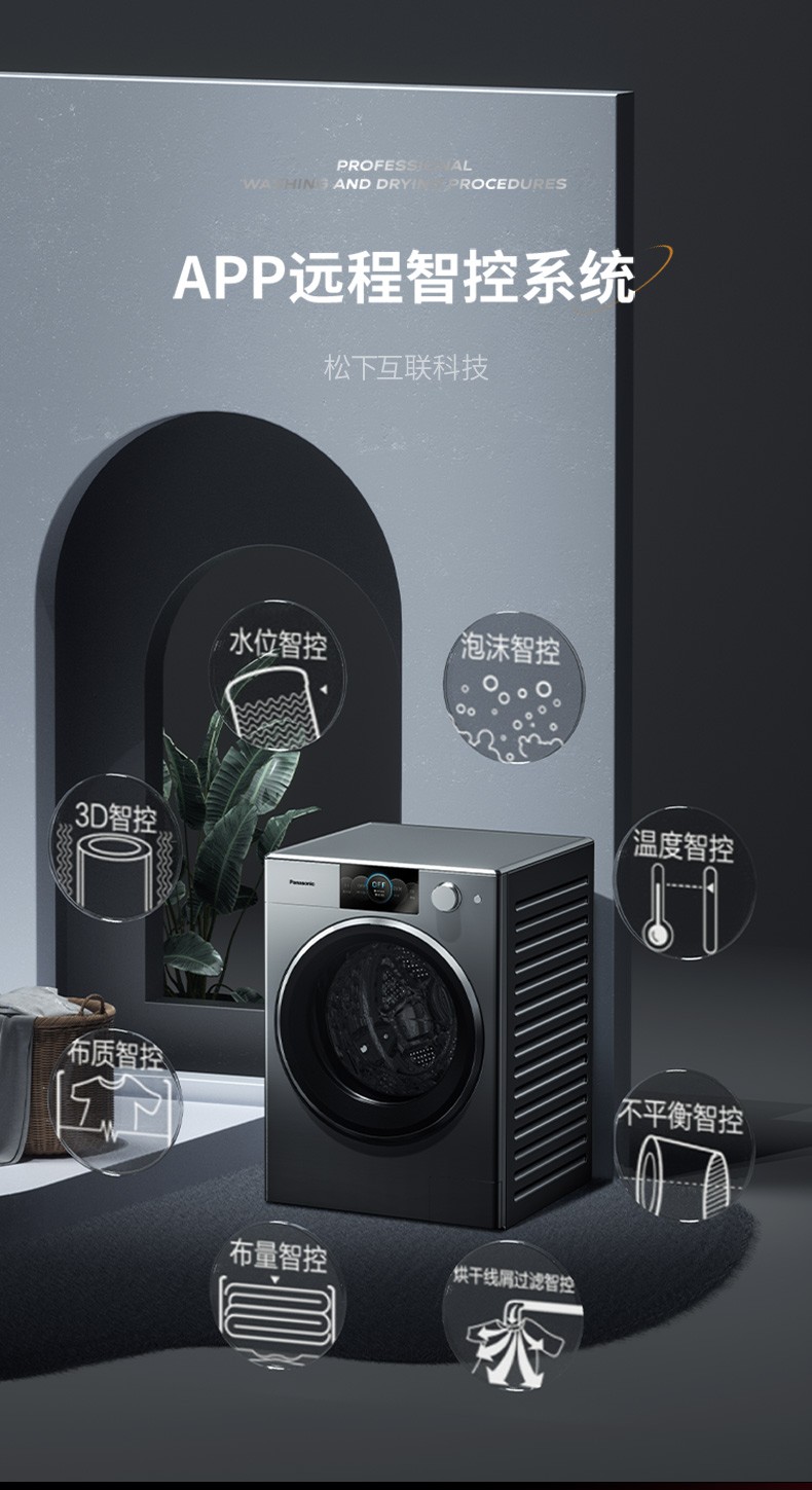 松下(Panasonic)阿尔法10公斤洗烘一体变频滚筒洗衣机保时捷设计旗舰款光动银纳诺怡自动投放 XQG100-P1DL