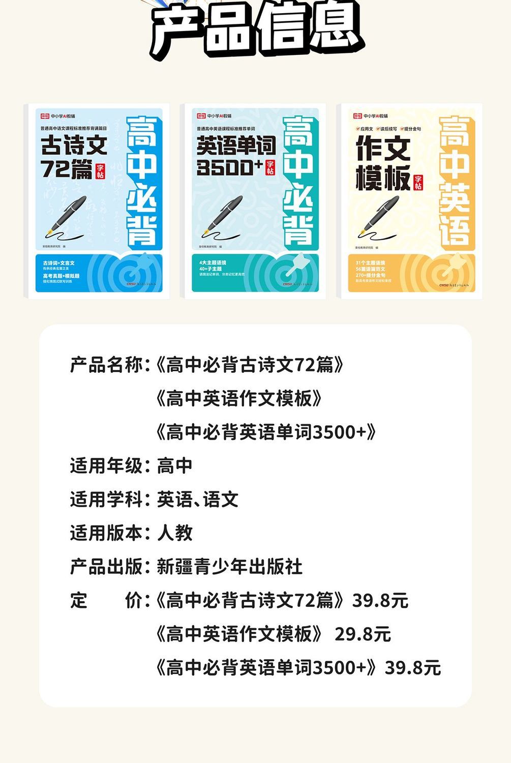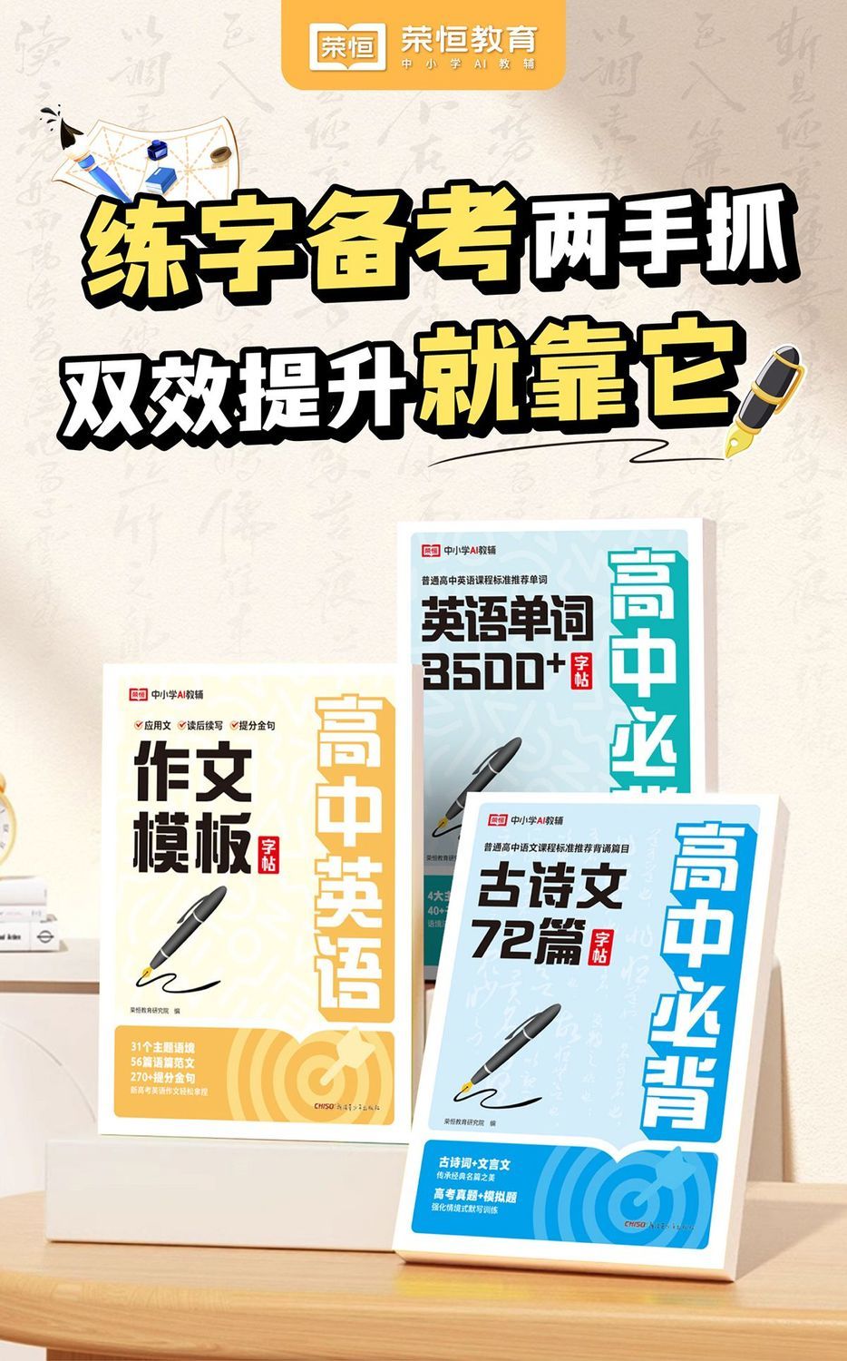 【2026版】高中英语3500词+高中英语作文作文模板练字帖+高中必背古诗文72篇练字帖