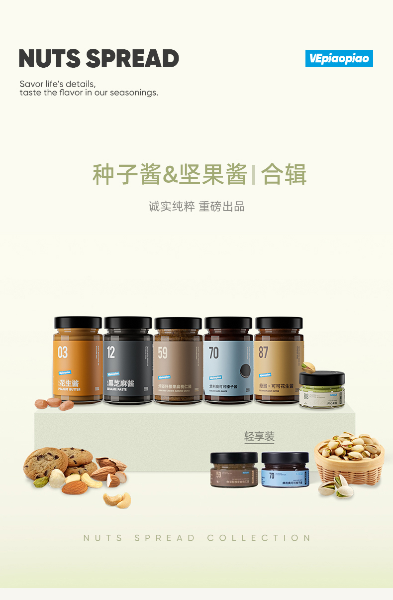 【多种口味可选】VEpiaopiao种子酱坚果酱 纯花生酱黑芝麻酱开心果酱等涂抹面包酱