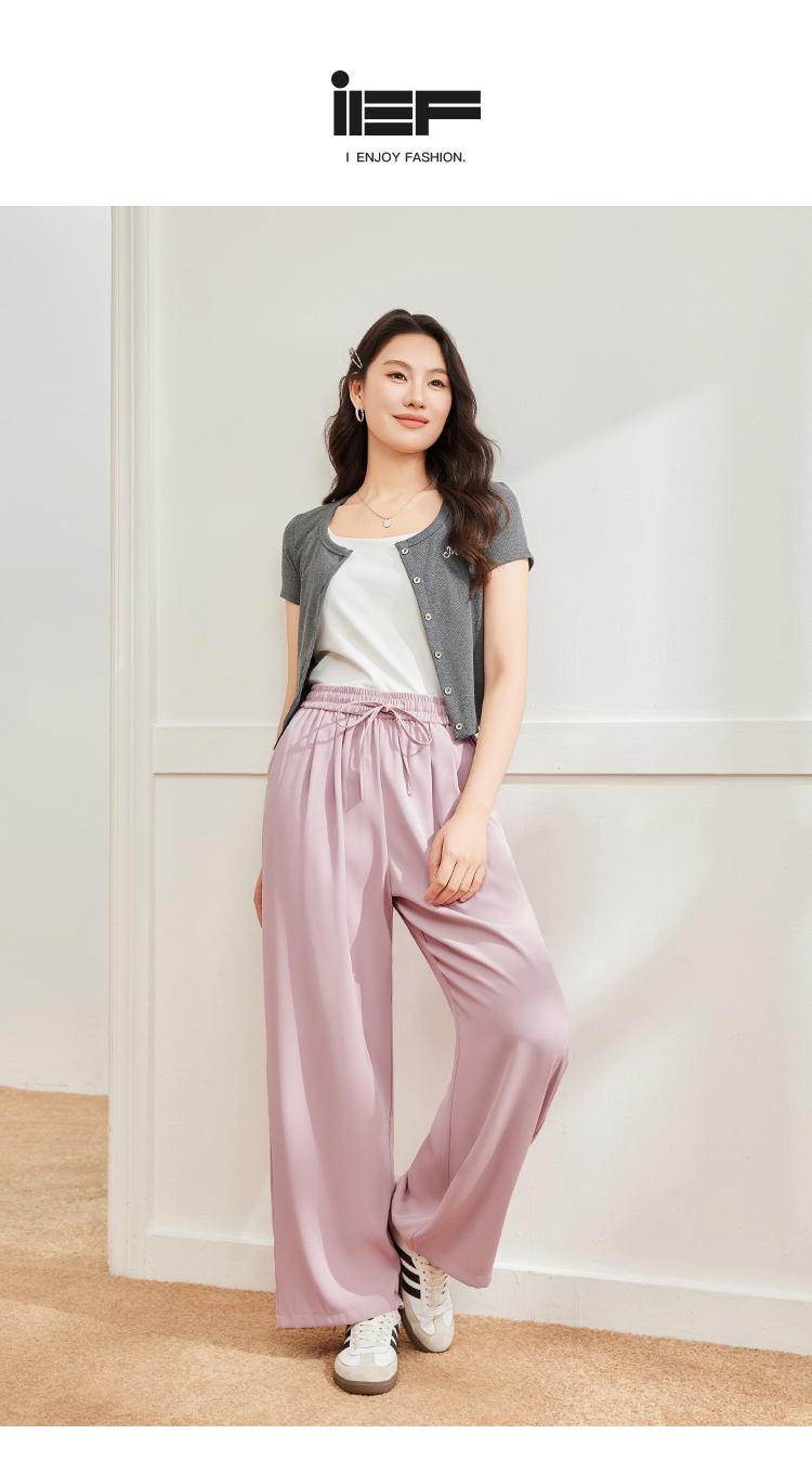【微胖定制】 IEF/爱依服2025微胖大码女装休闲长裤夏季流行宽松显瘦百搭阔腿裤DP0120-