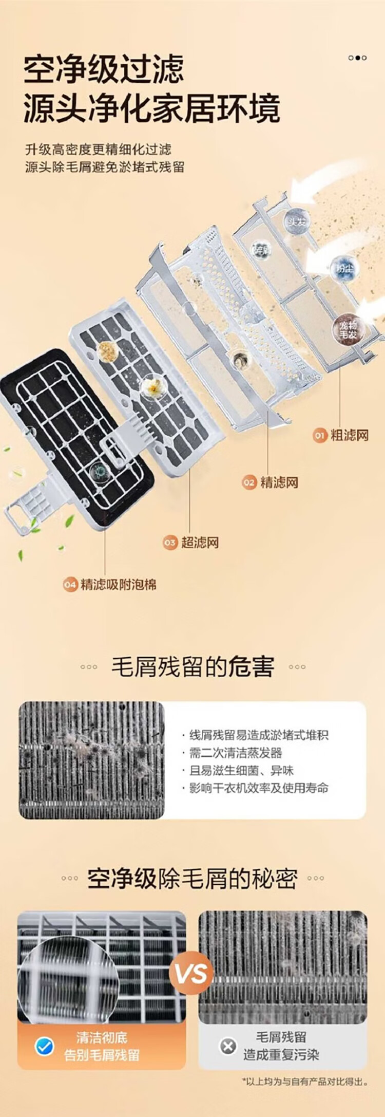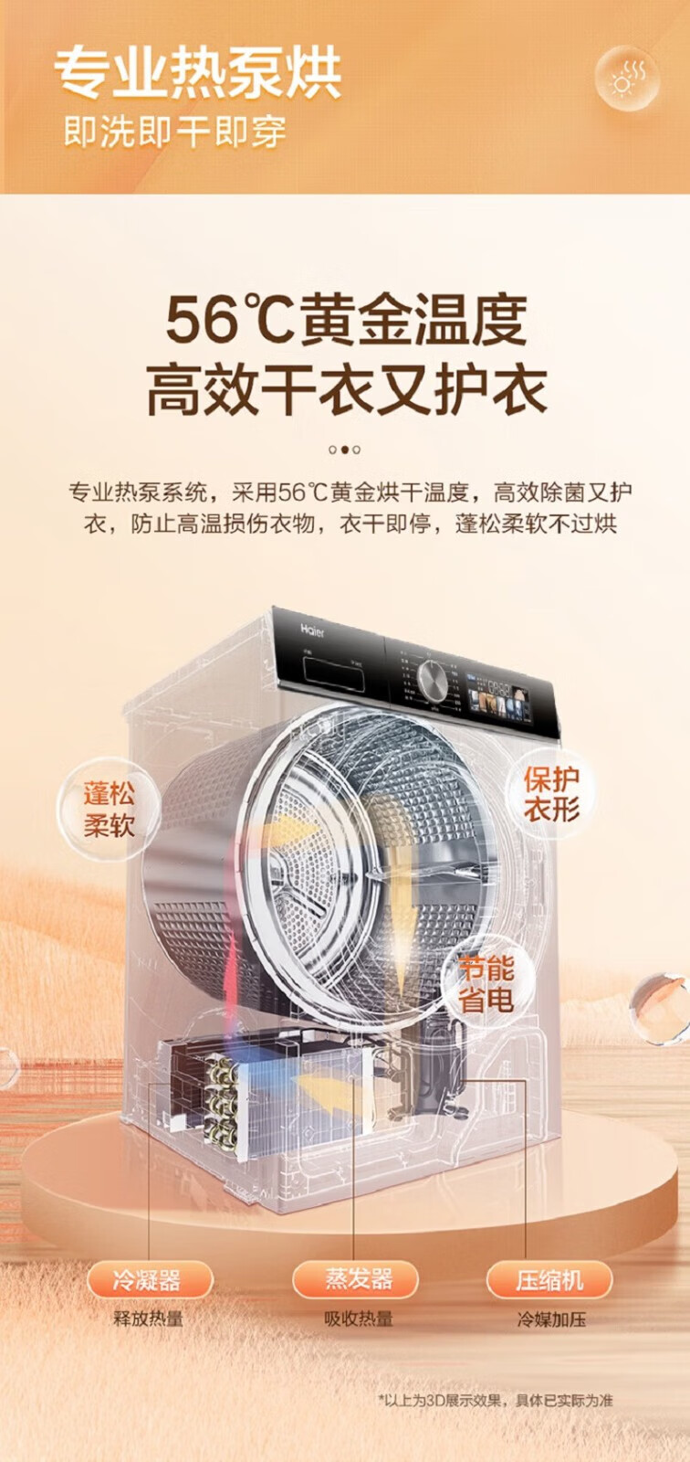 海尔(Haier)热泵干衣机烘干机四重空净级过滤除尘祛味双擎热泵 3D透视烘干HGS100-26 商品图3