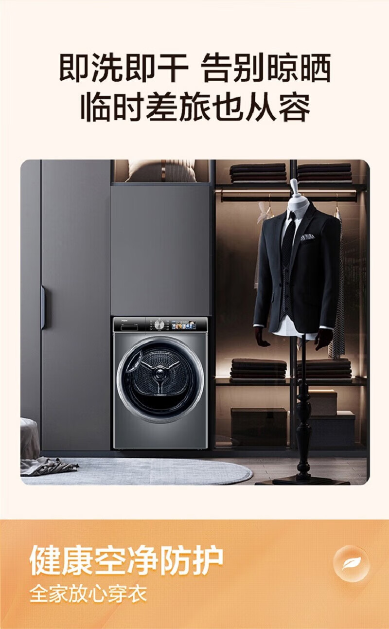 海尔(Haier)热泵干衣机烘干机四重空净级过滤除尘祛味双擎热泵 3D透视烘干HGS100-26 商品图0