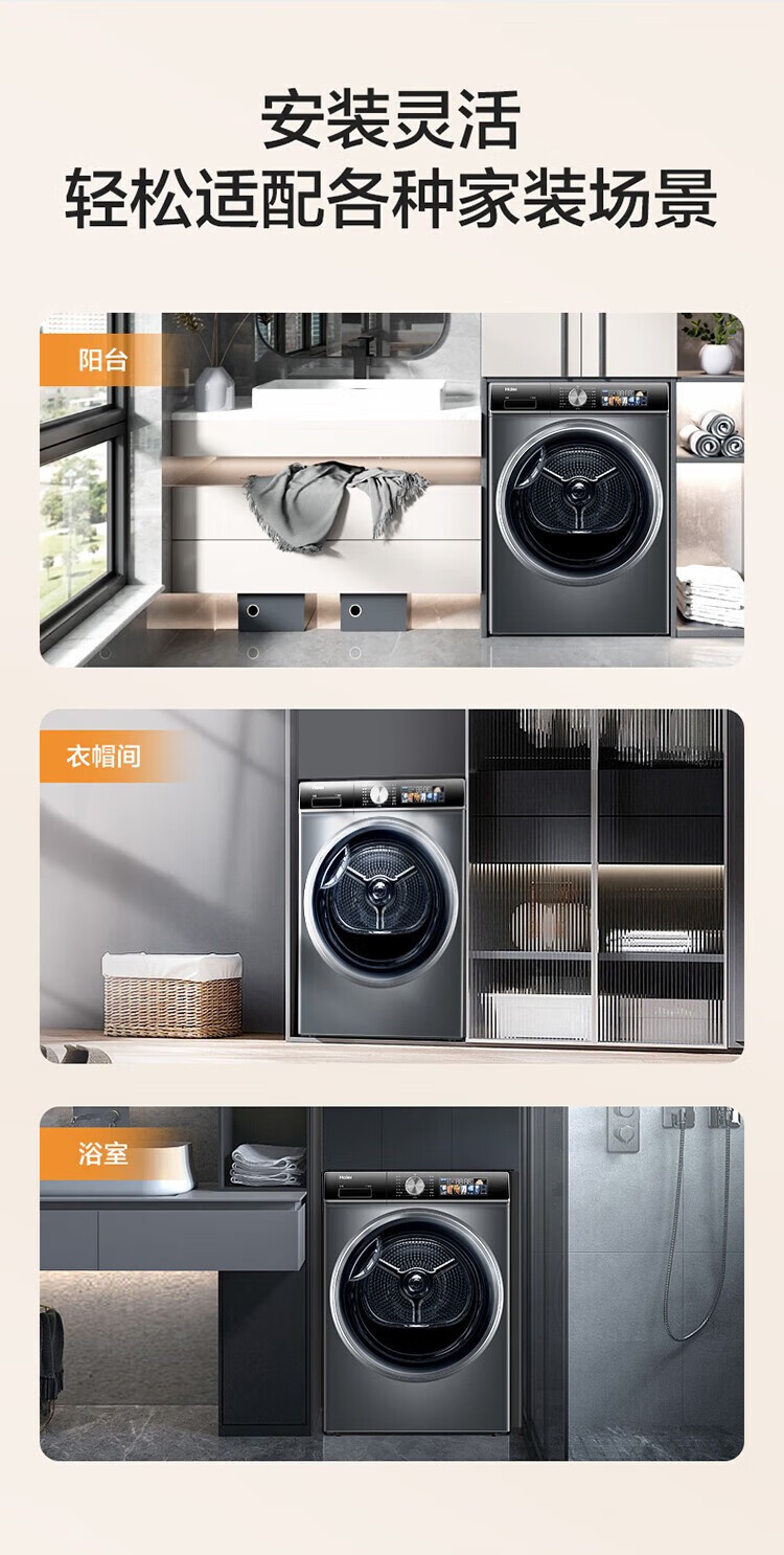 海尔(Haier)热泵干衣机烘干机四重空净级过滤除尘祛味双擎热泵 3D透视烘干HGS100-26 商品图2