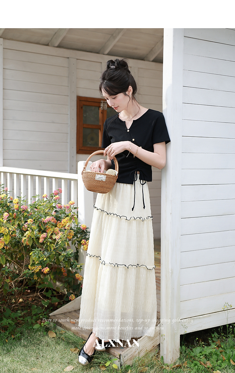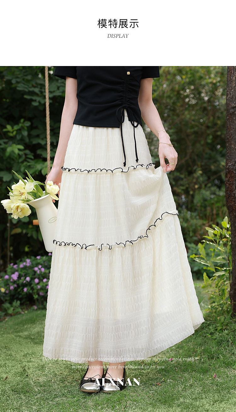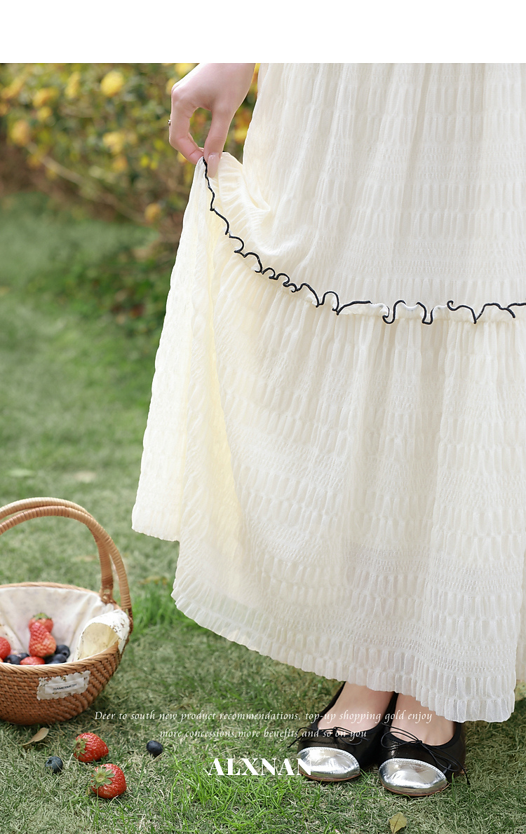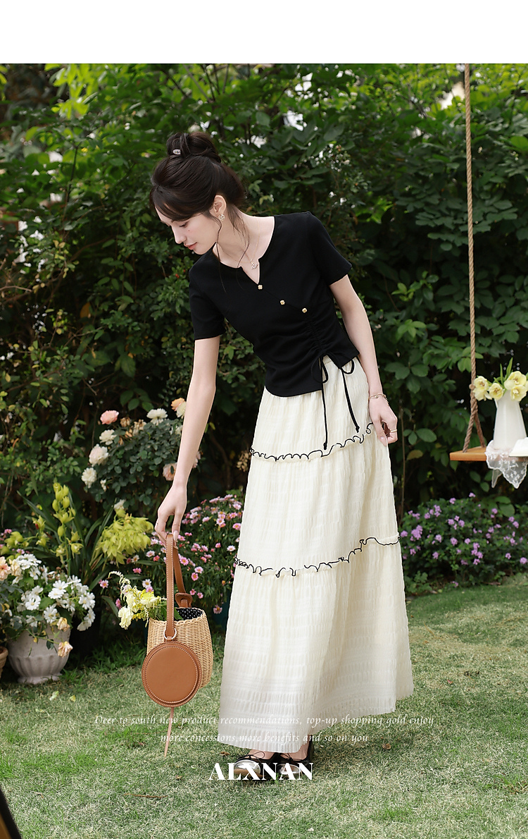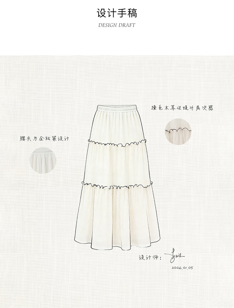 鹿向南「海岛小调」法式杏色蕾丝拼接半身裙女装夏季巨好看蛋糕裙