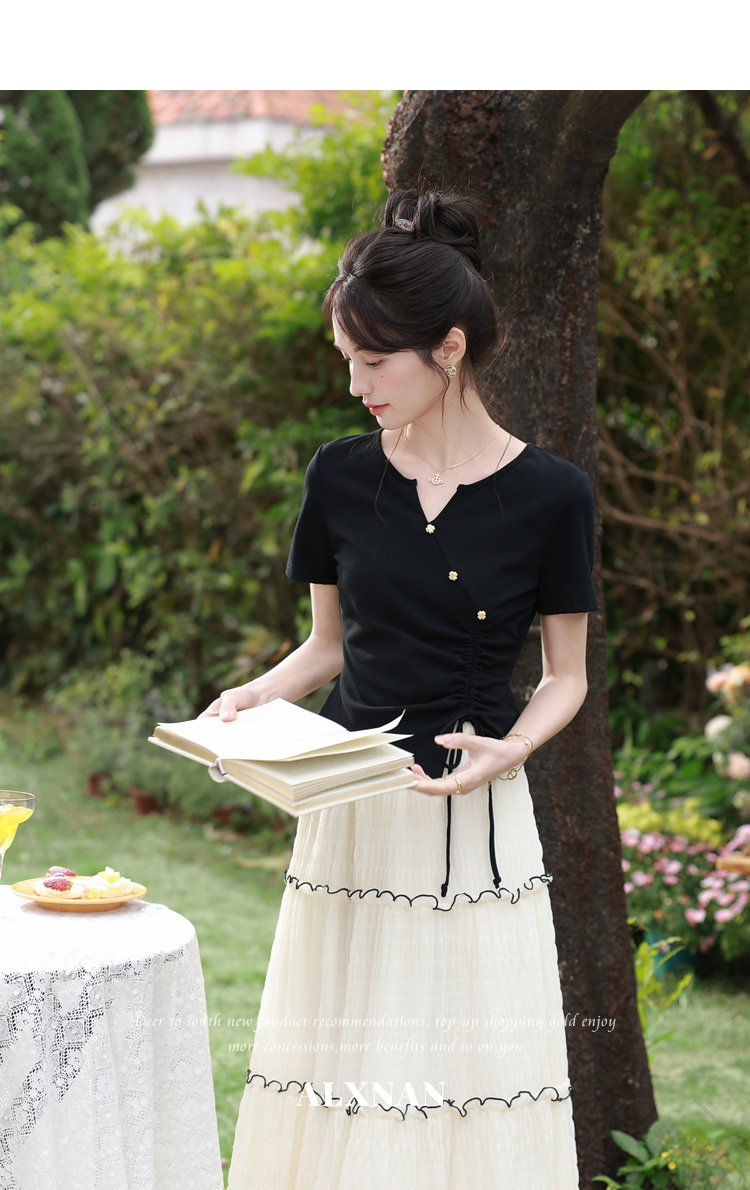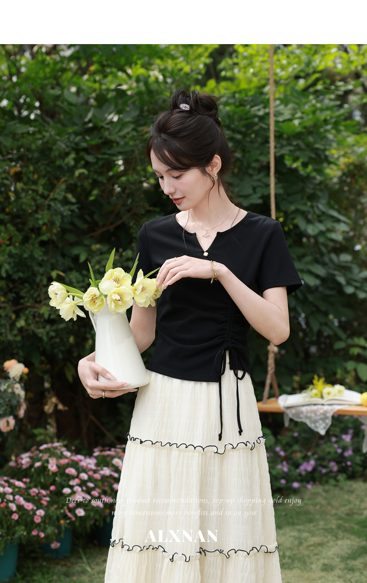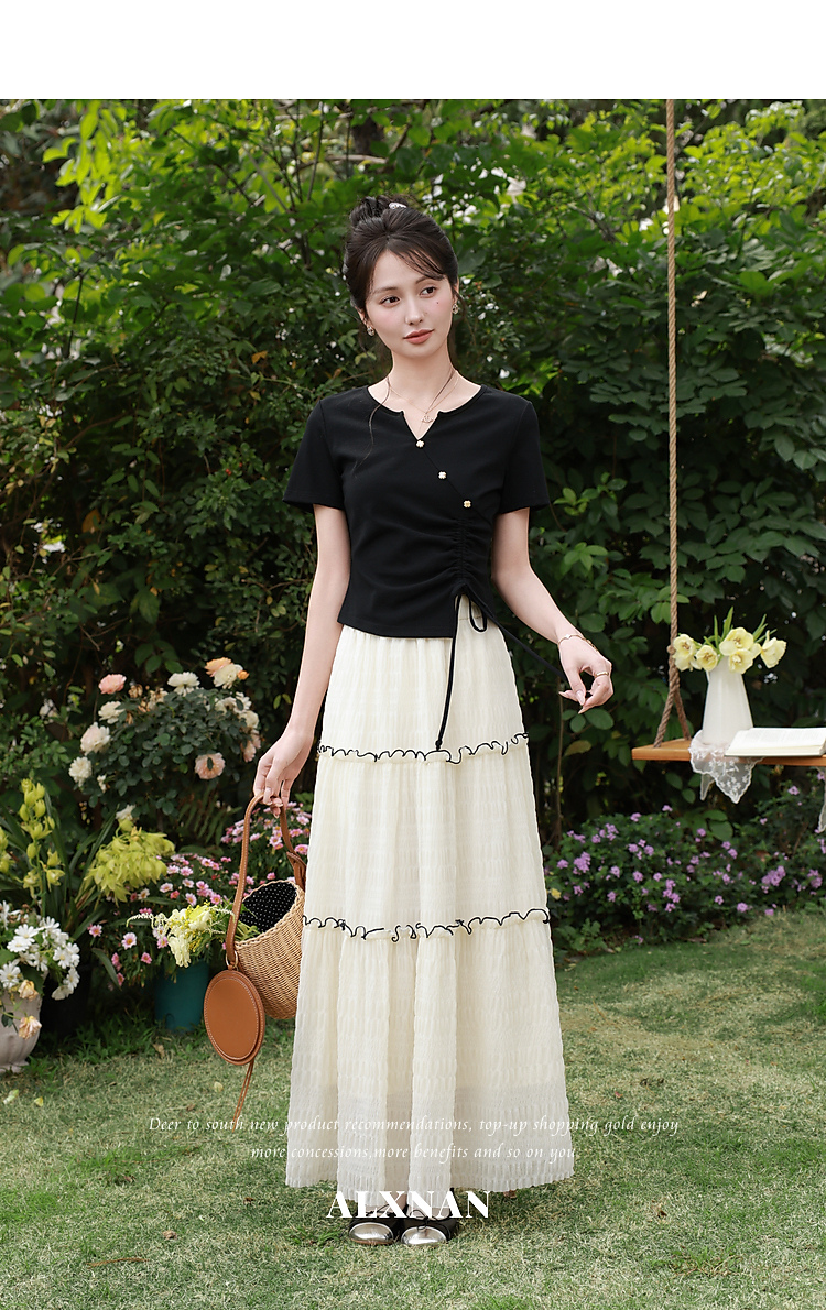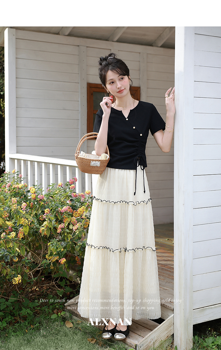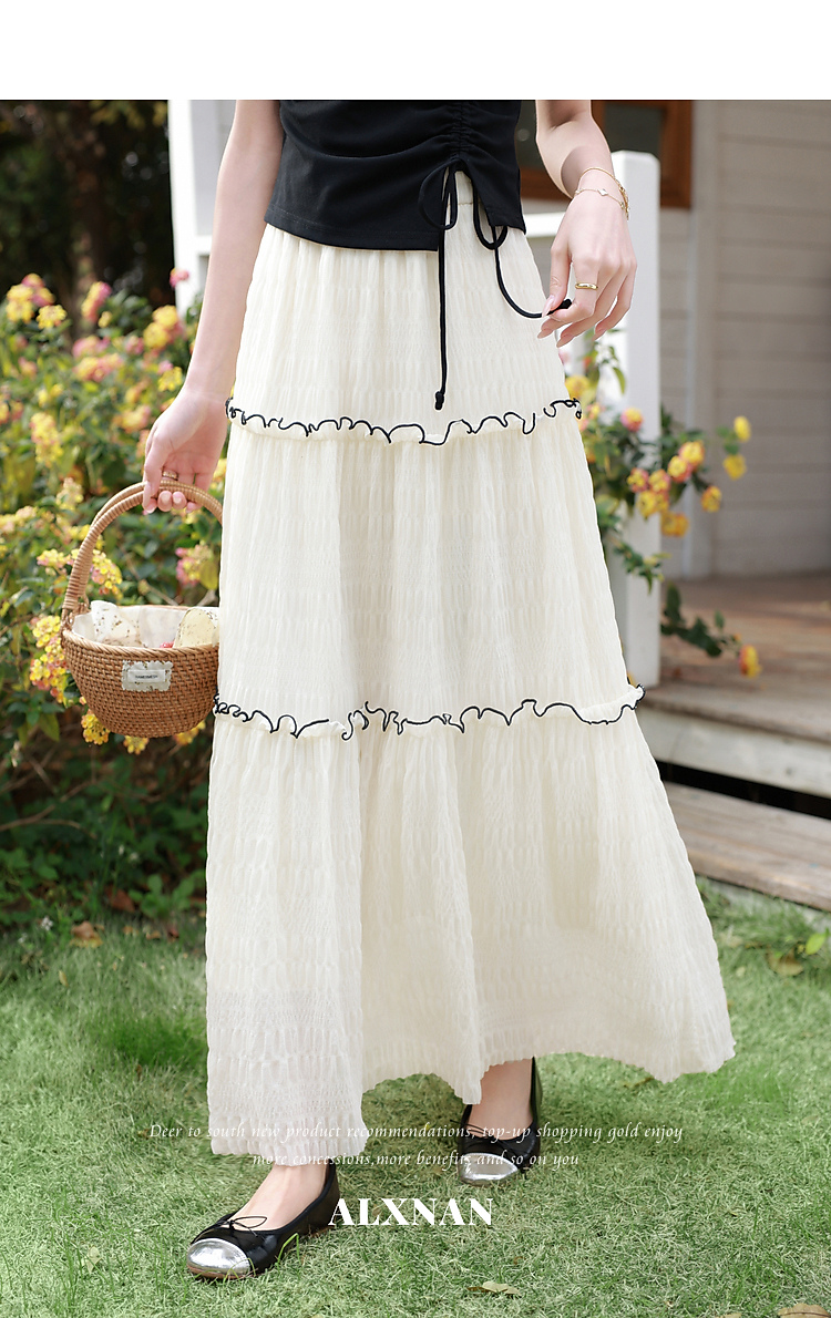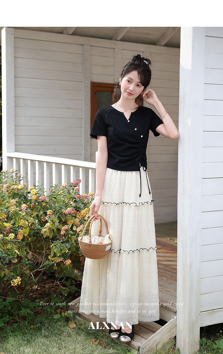 鹿向南「海岛小调」法式杏色蕾丝拼接半身裙女装夏季巨好看蛋糕裙