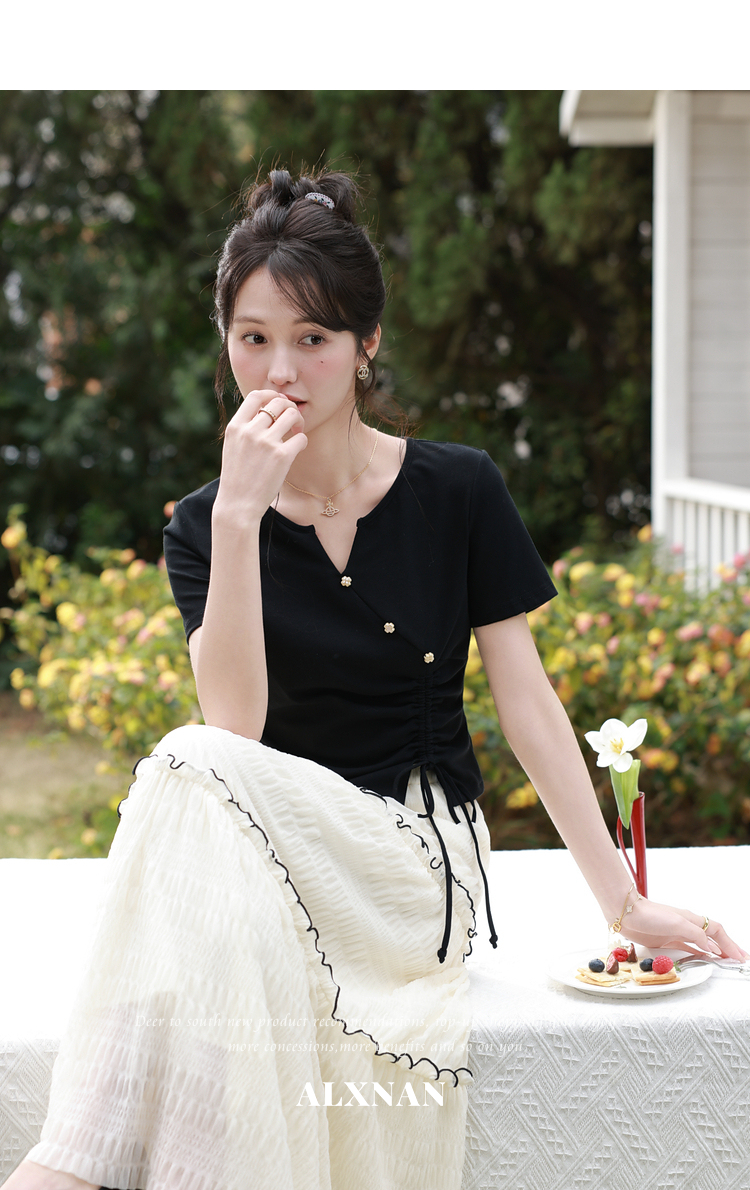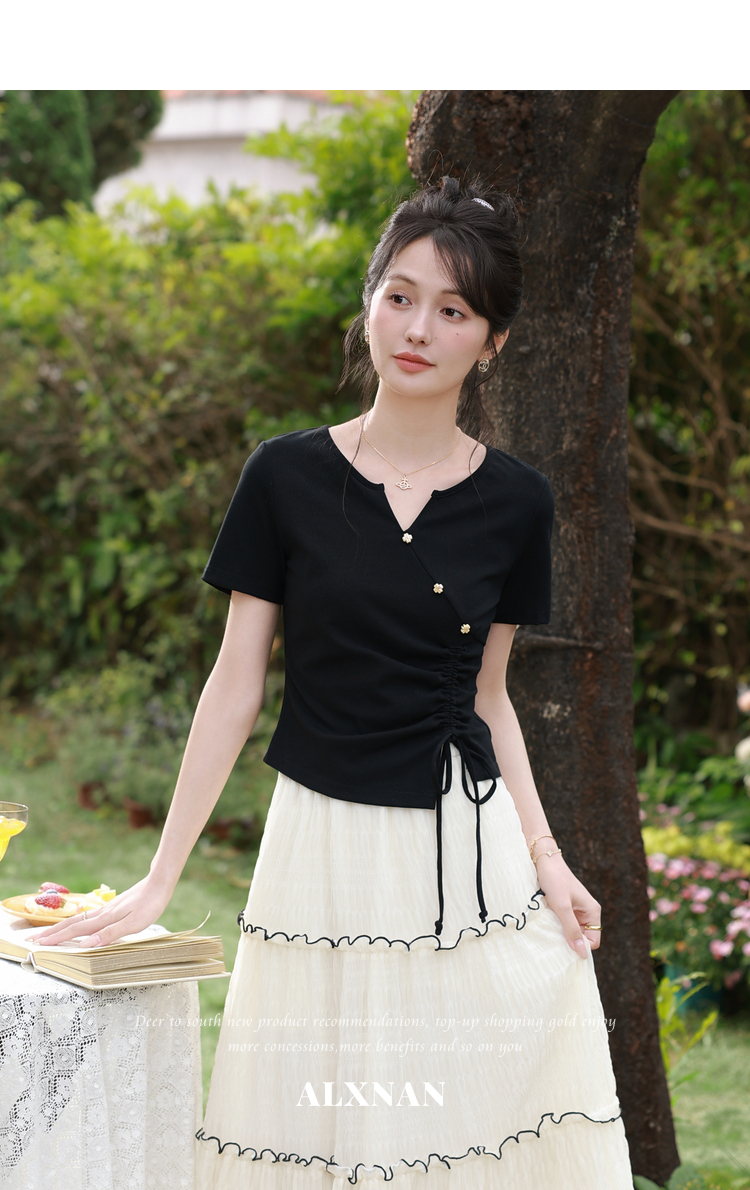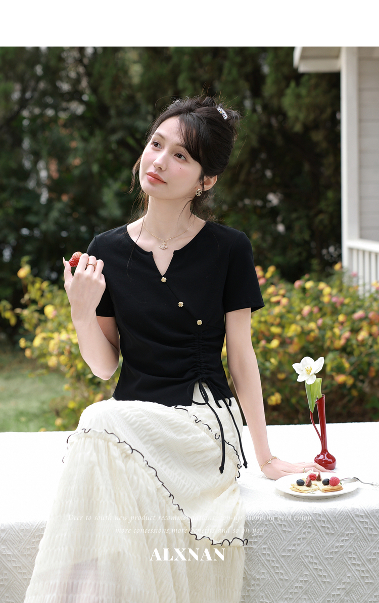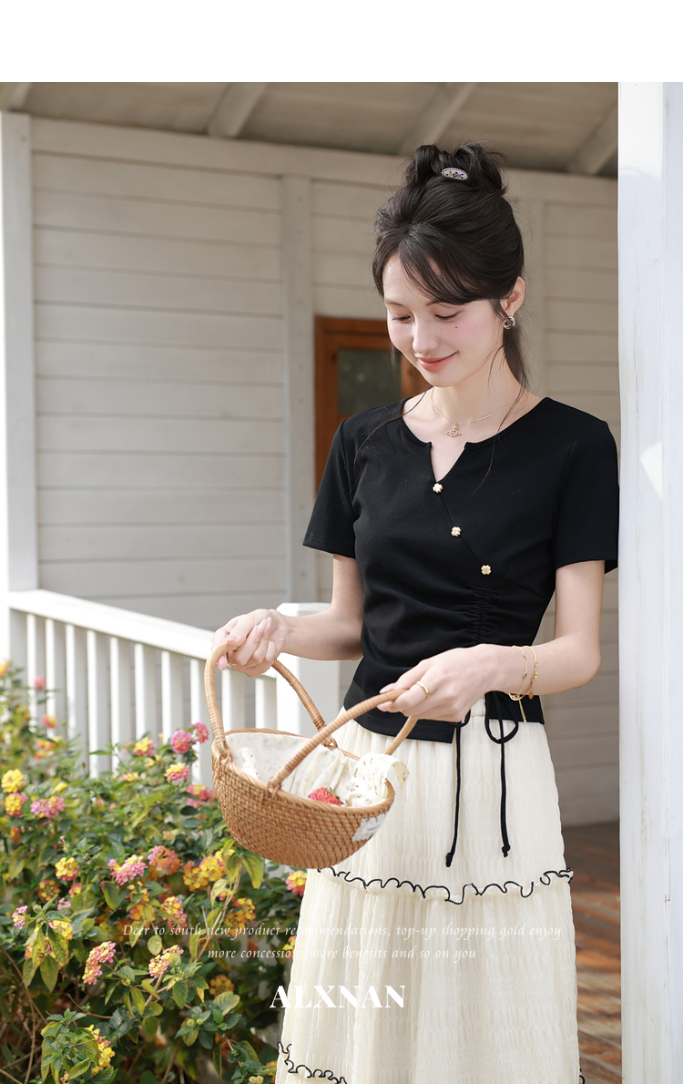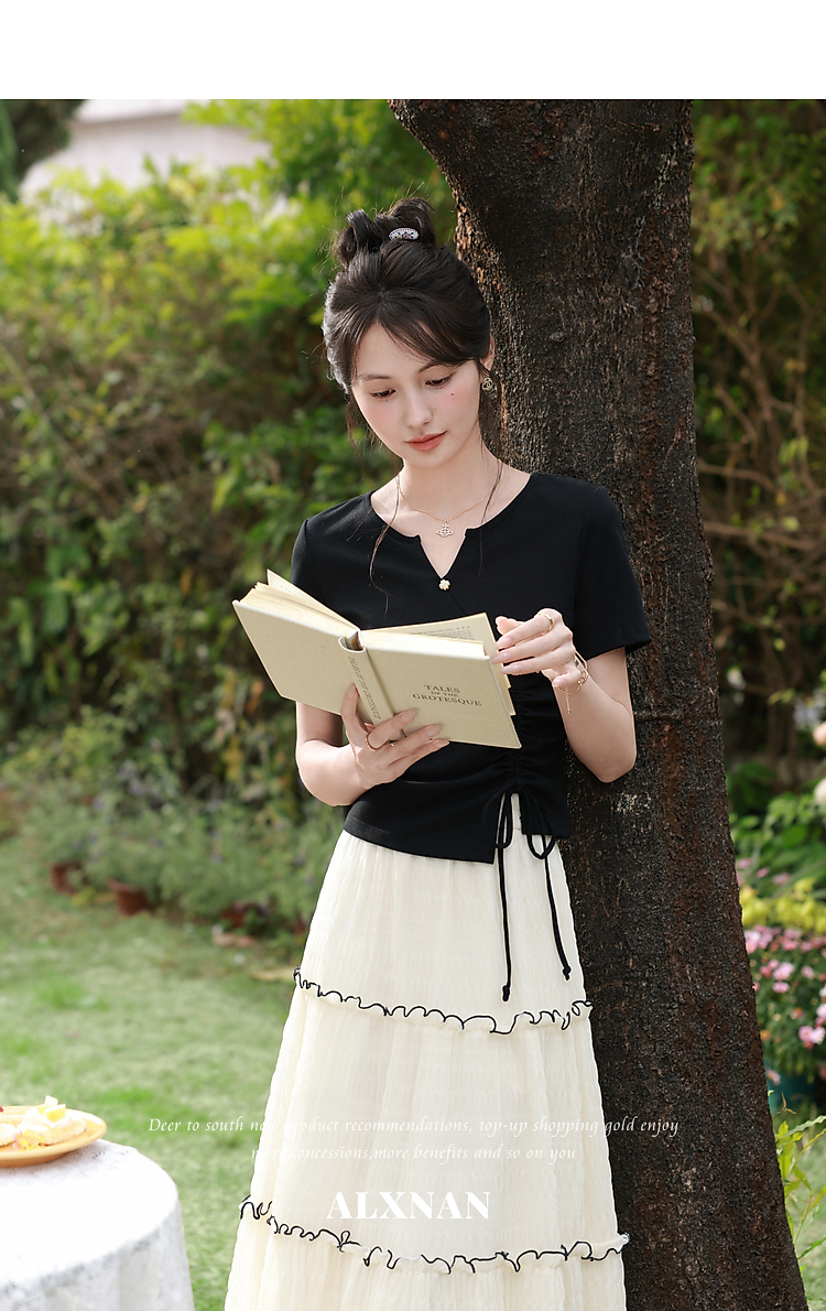 鹿向南「海岛小调」法式杏色蕾丝拼接半身裙女装夏季巨好看蛋糕裙