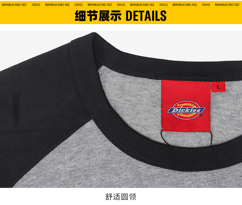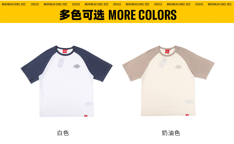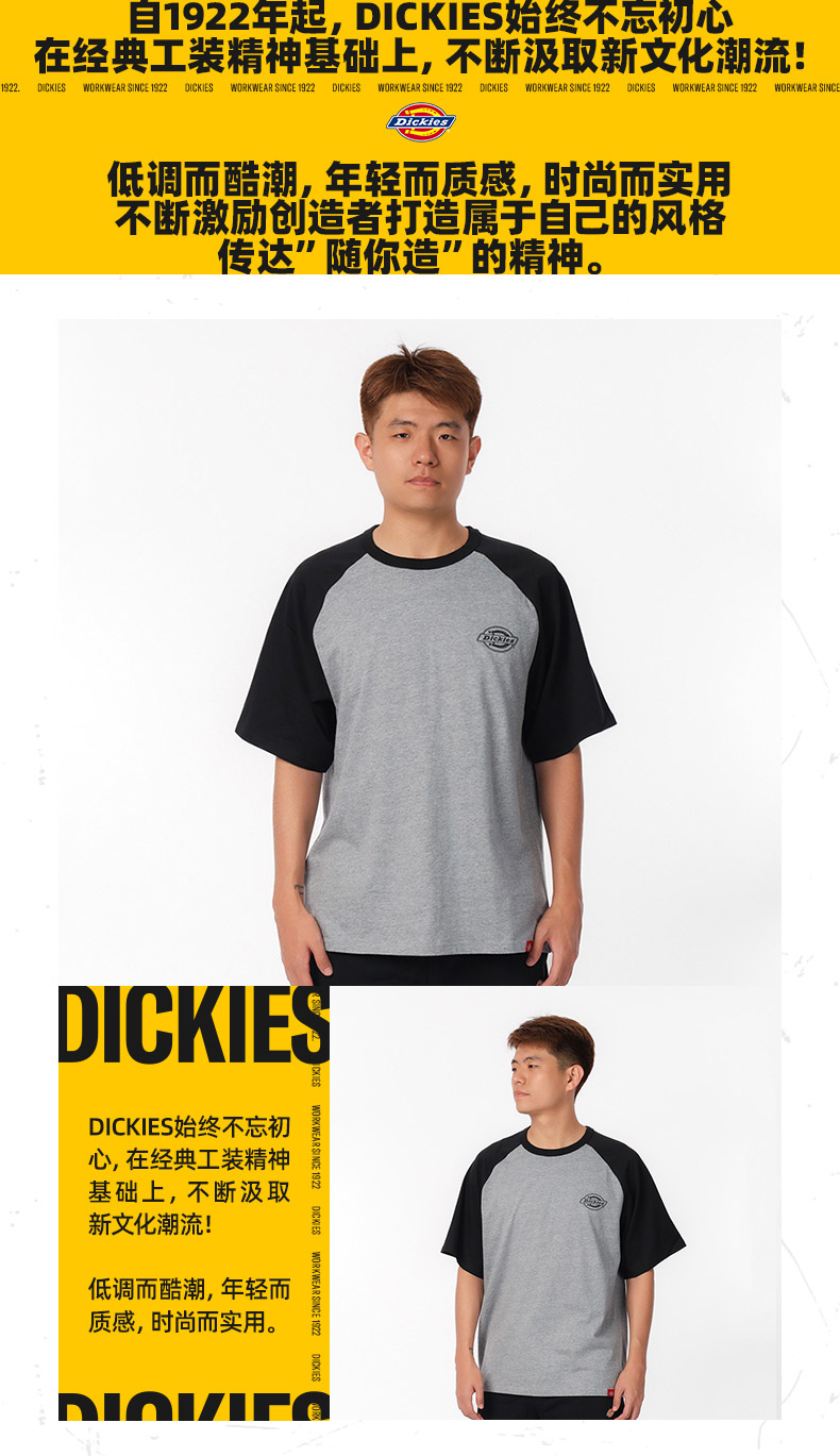 DickiesT恤 宽松百搭 小logo印花插肩袖舒适圆领T恤 男女情侣款