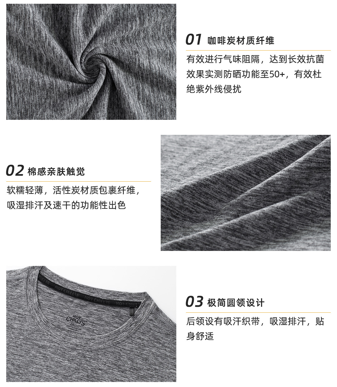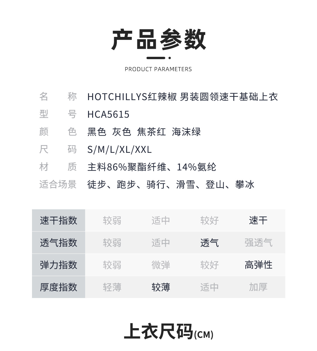 Hotchillys热椒男桃皮速干衣T恤透气跑步健身训练打底长袖上衣5615