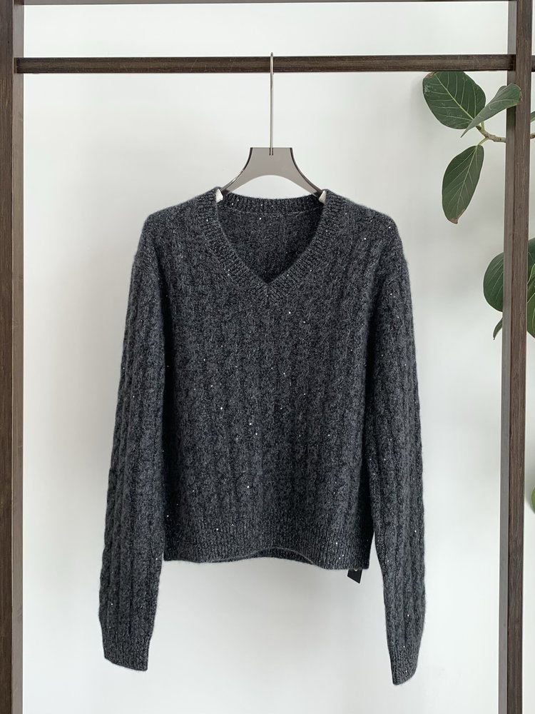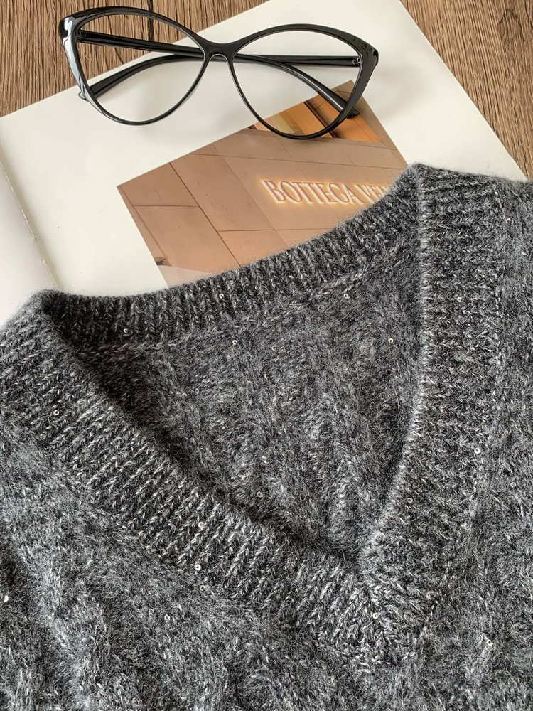 YS1916-轻奢V领亮片针织毛衣【Hera&Song】