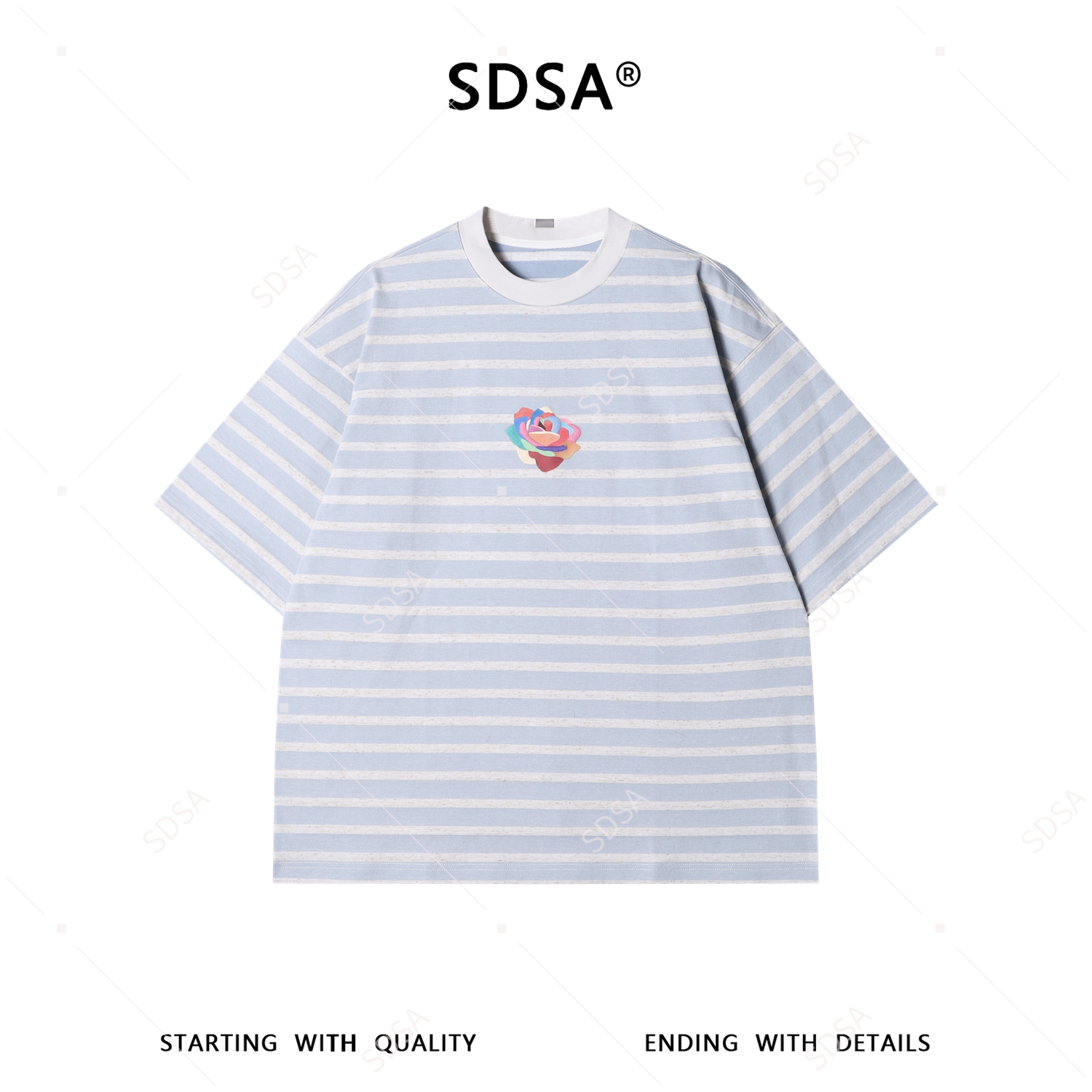 A612189SDSA男装2026新款高贵轻奢撞色条纹圆领短袖T恤刺绣花朵设计百搭