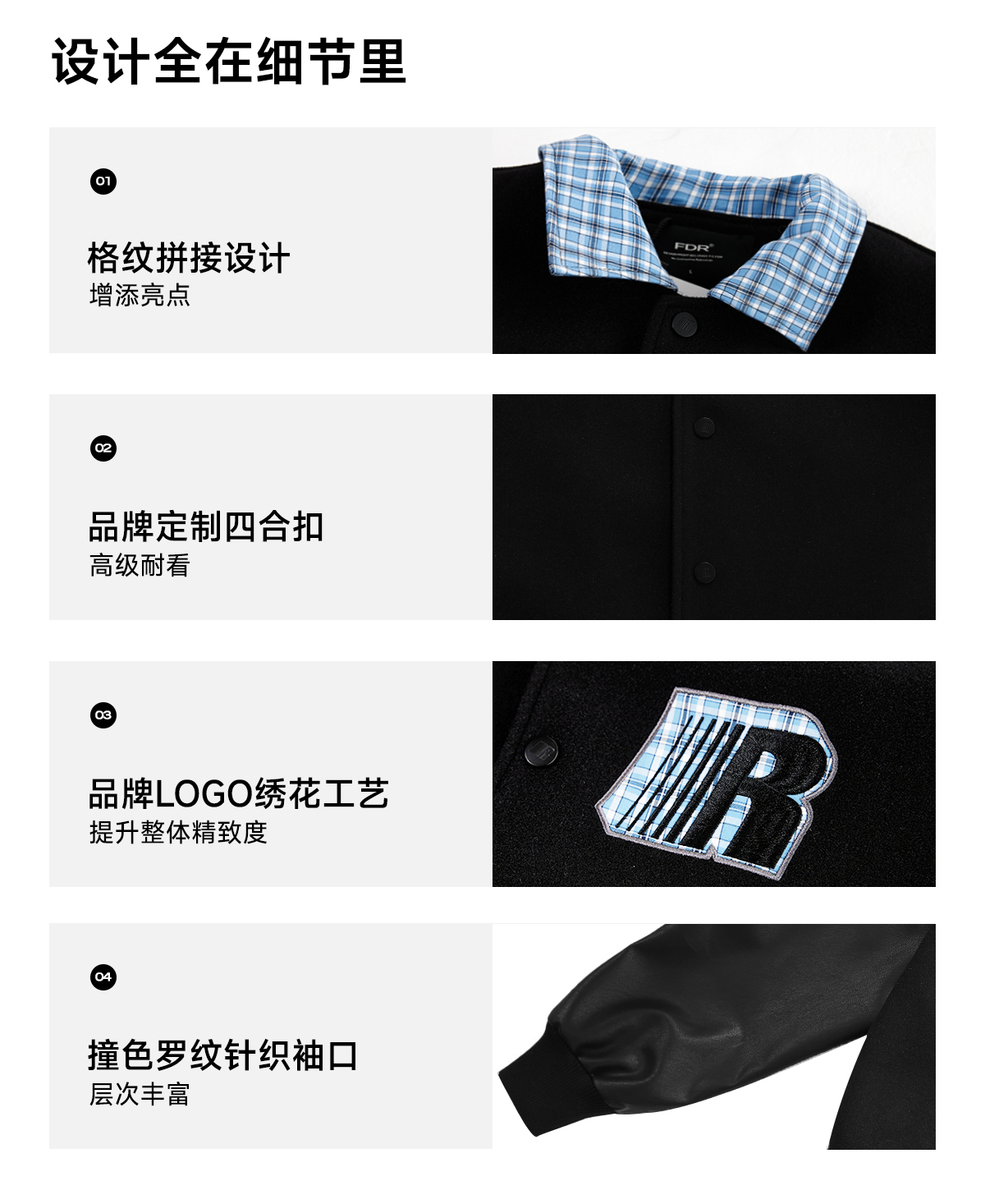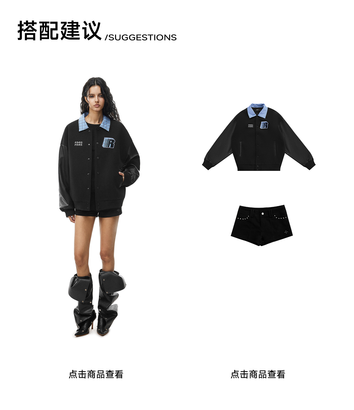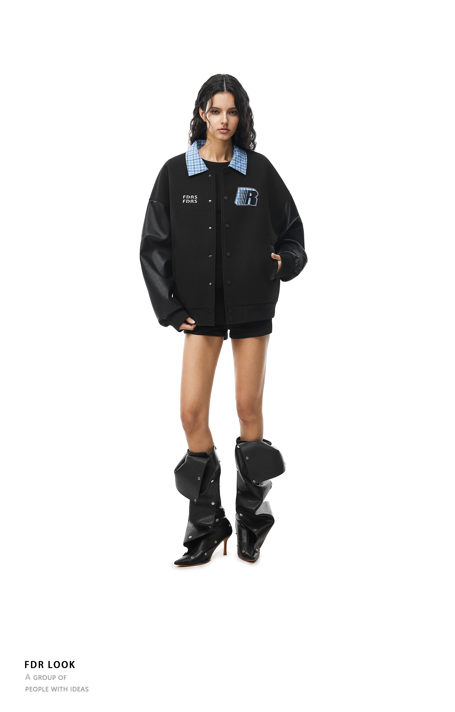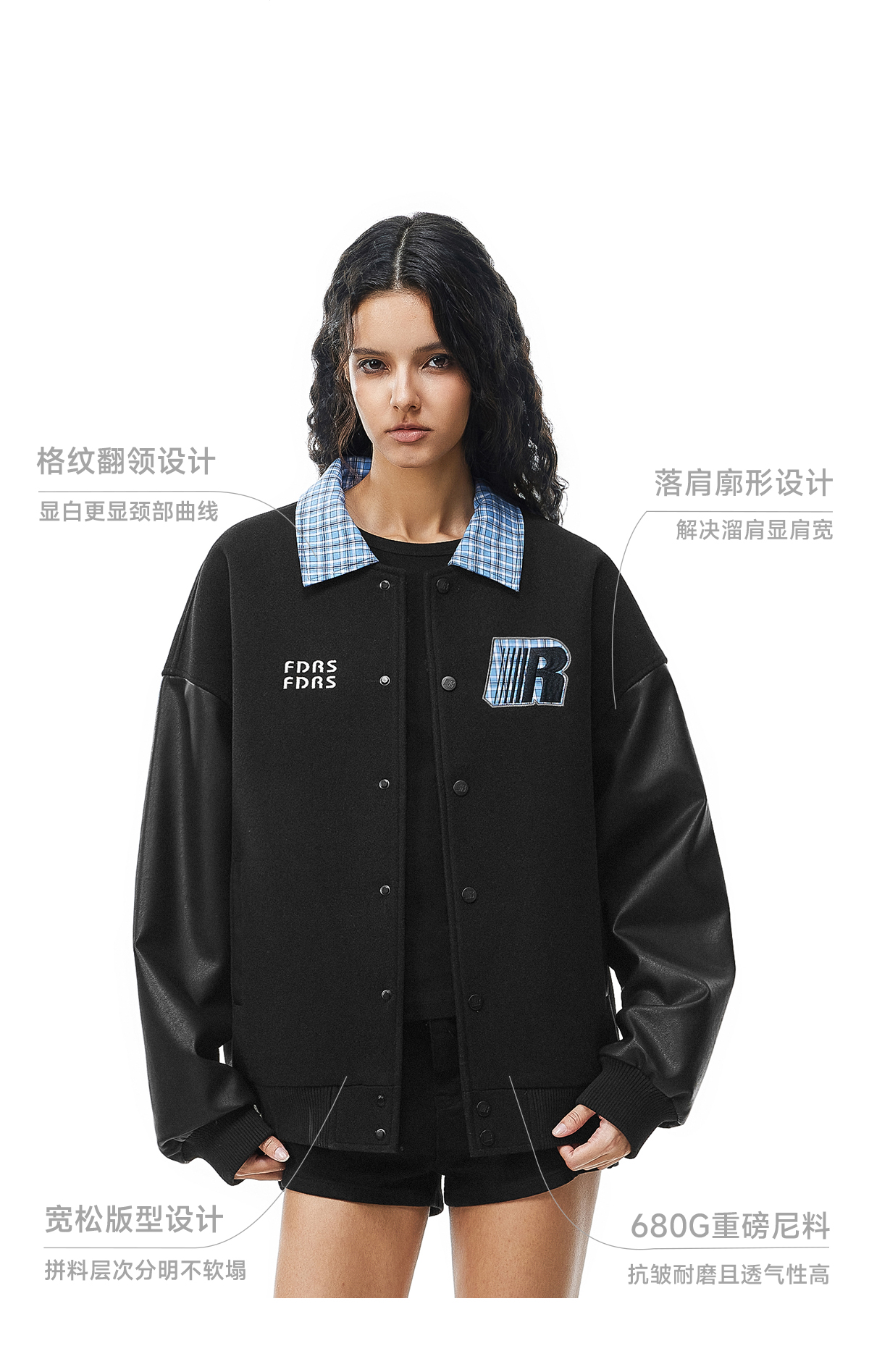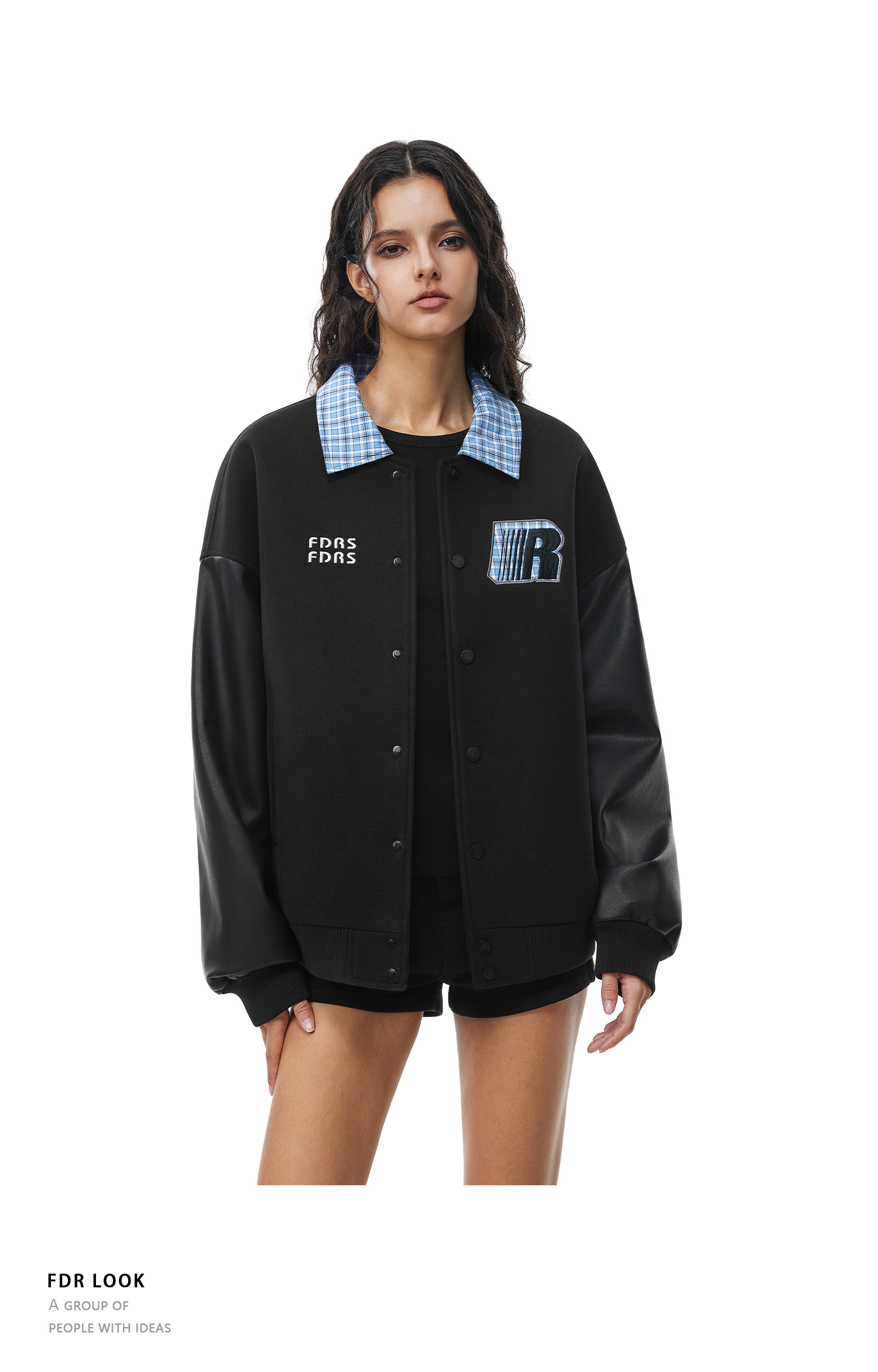 FDR官方店 R字翻领巴恩风夹克外套男女秋季情侣宽松拼接撞色上衣