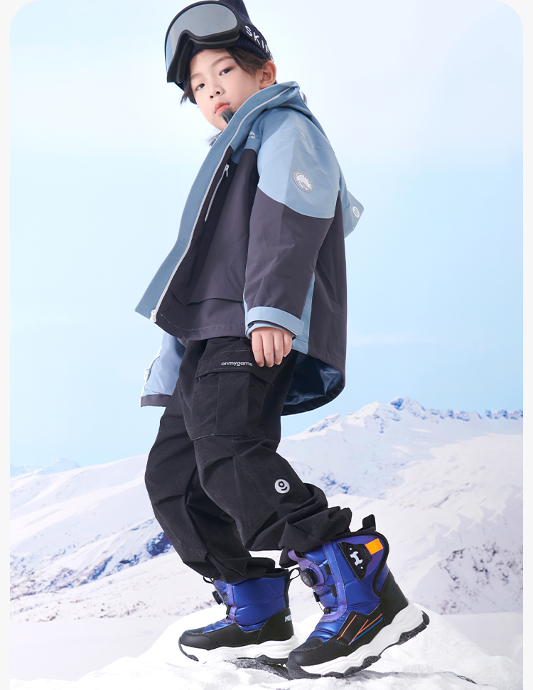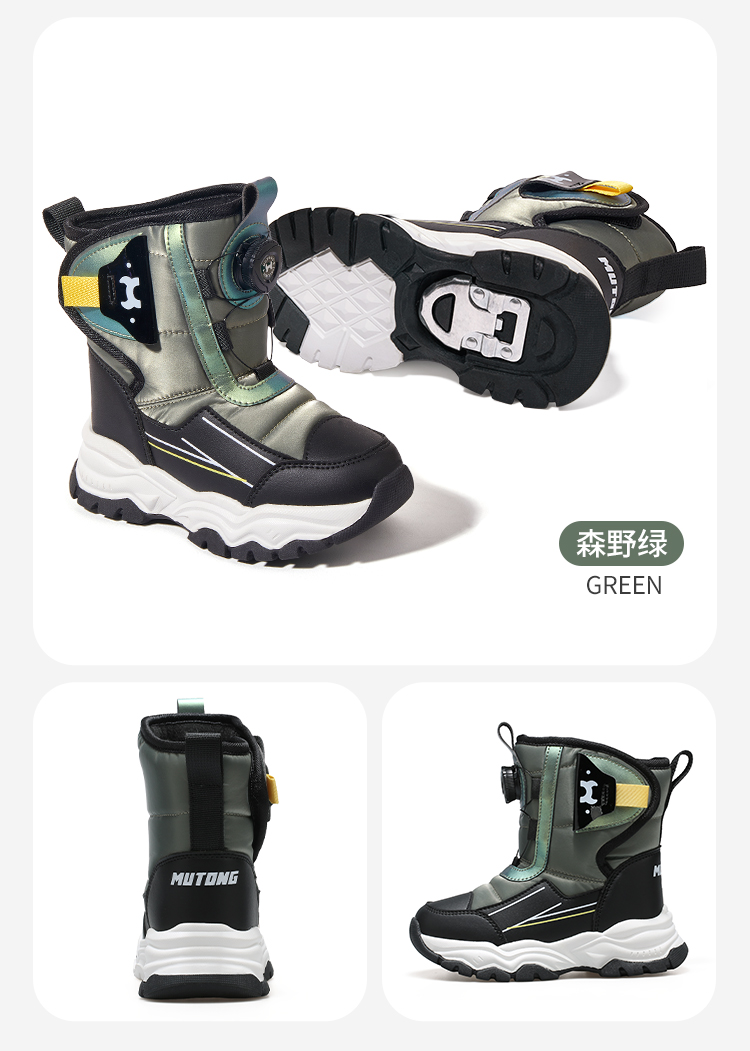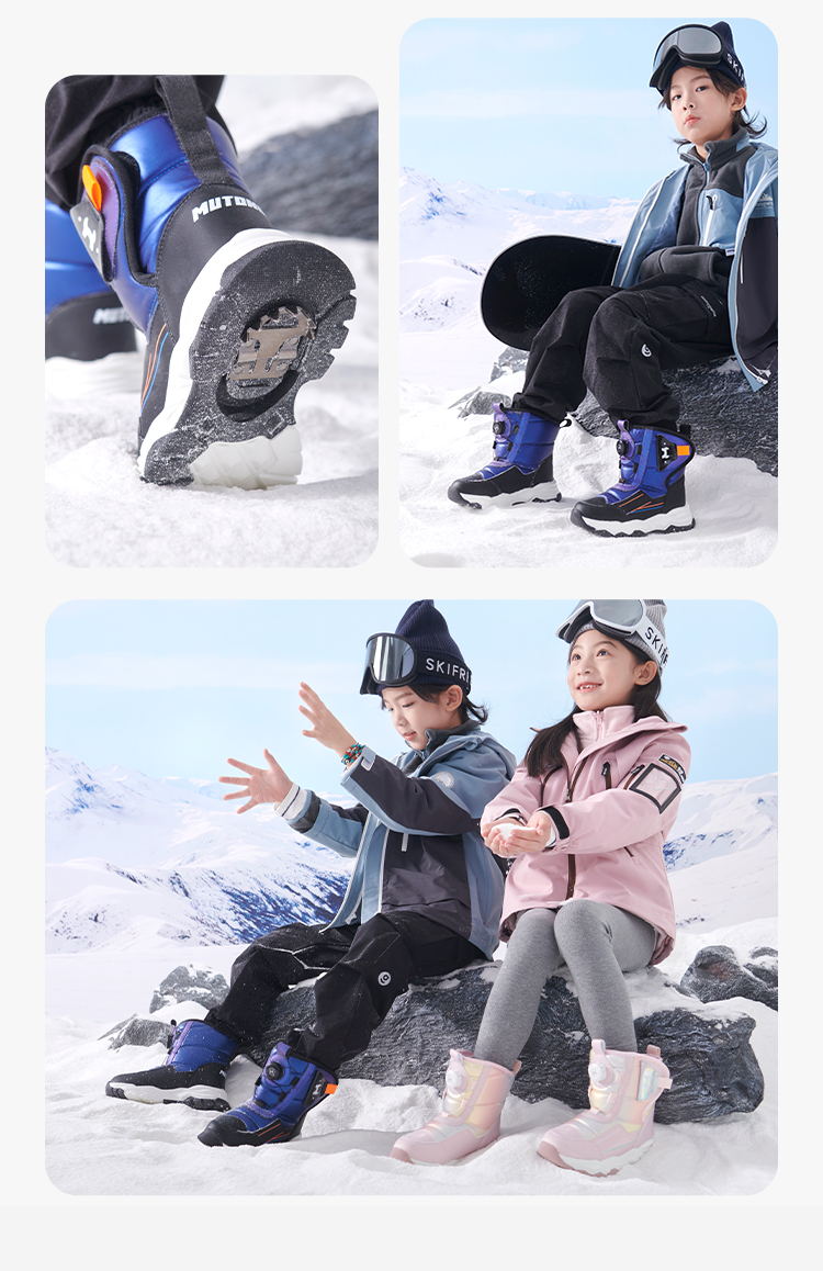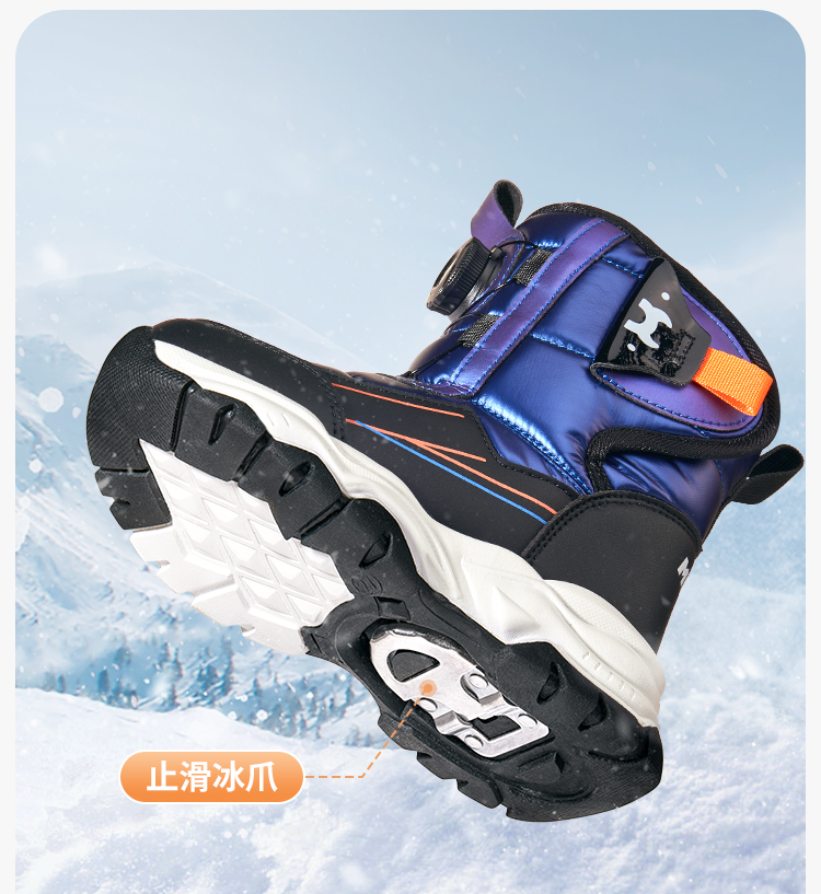 牧童冬季高筒滑雪雪地靴4-12岁中大童棉鞋子宝宝大棉加绒运动棉靴