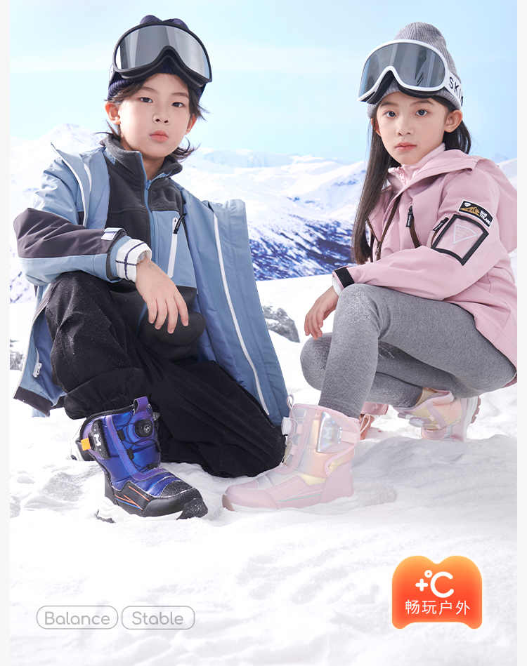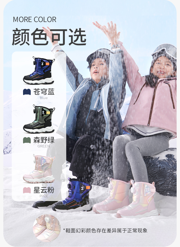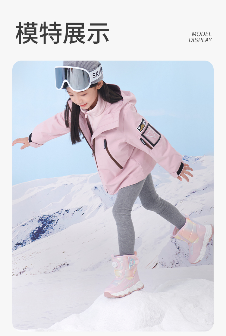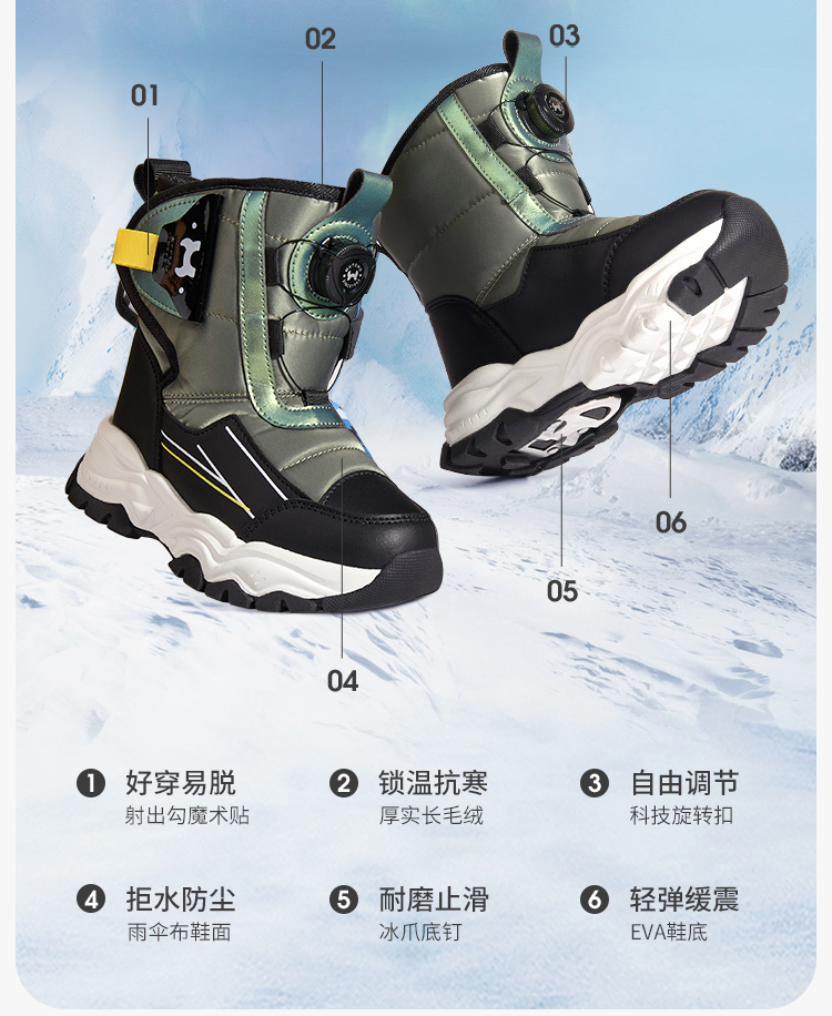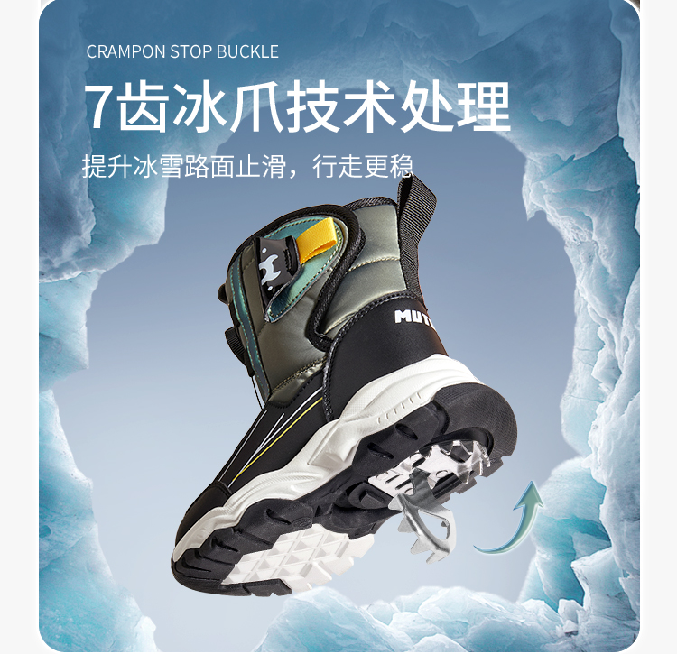 牧童冬季高筒滑雪雪地靴4-12岁中大童棉鞋子宝宝大棉加绒运动棉靴
