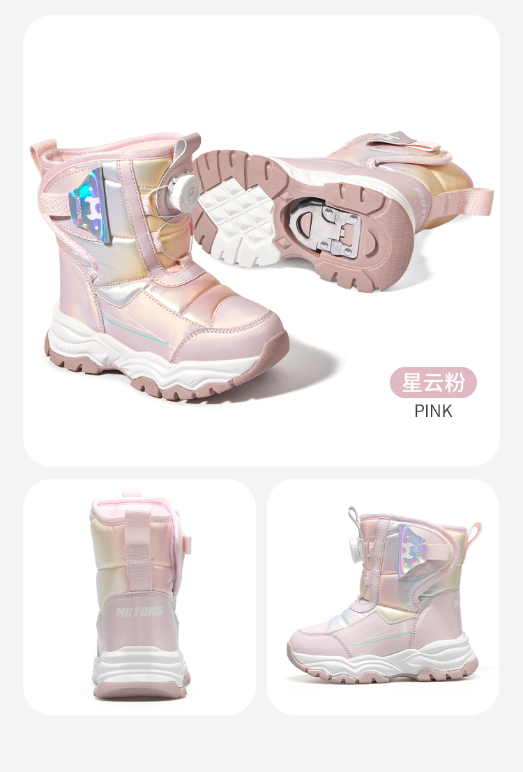 牧童2025冬季卡通雪地靴保暖加绒女宝棉鞋室外防滑加绒男童雪地靴