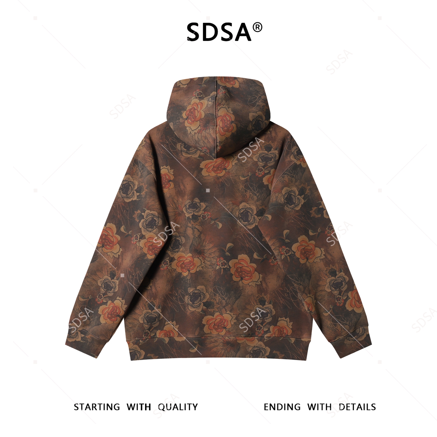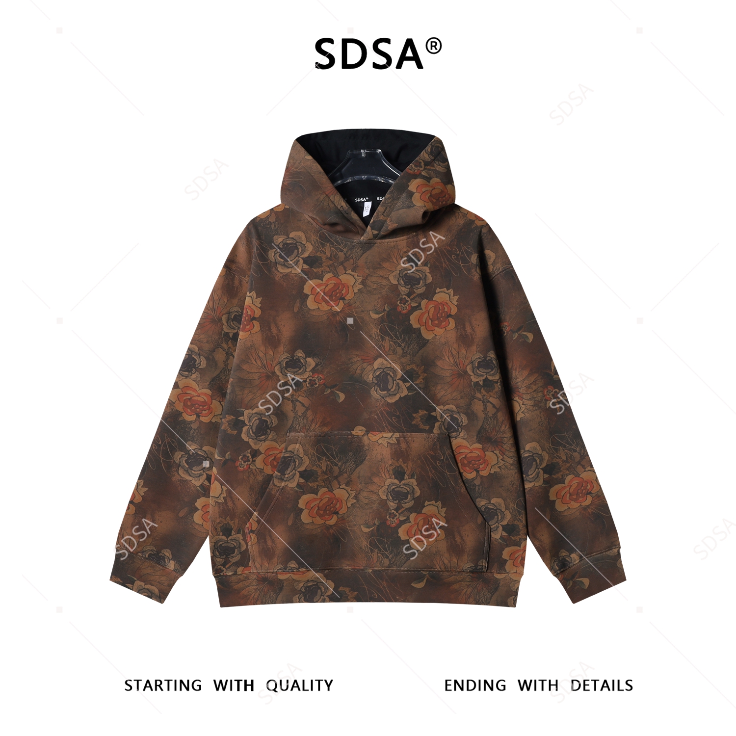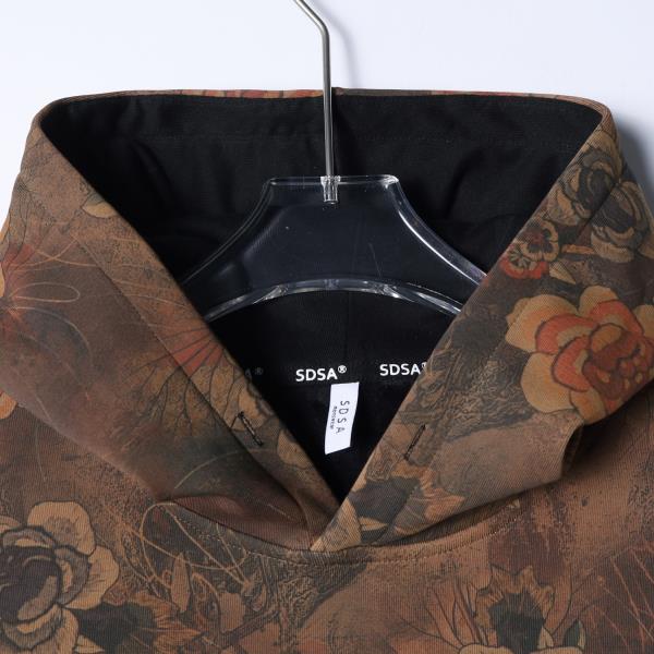 WY1373SDSA男士秋冬新款痞帅男装宽松扎染植物花卉连帽卫衣百搭宽松上衣