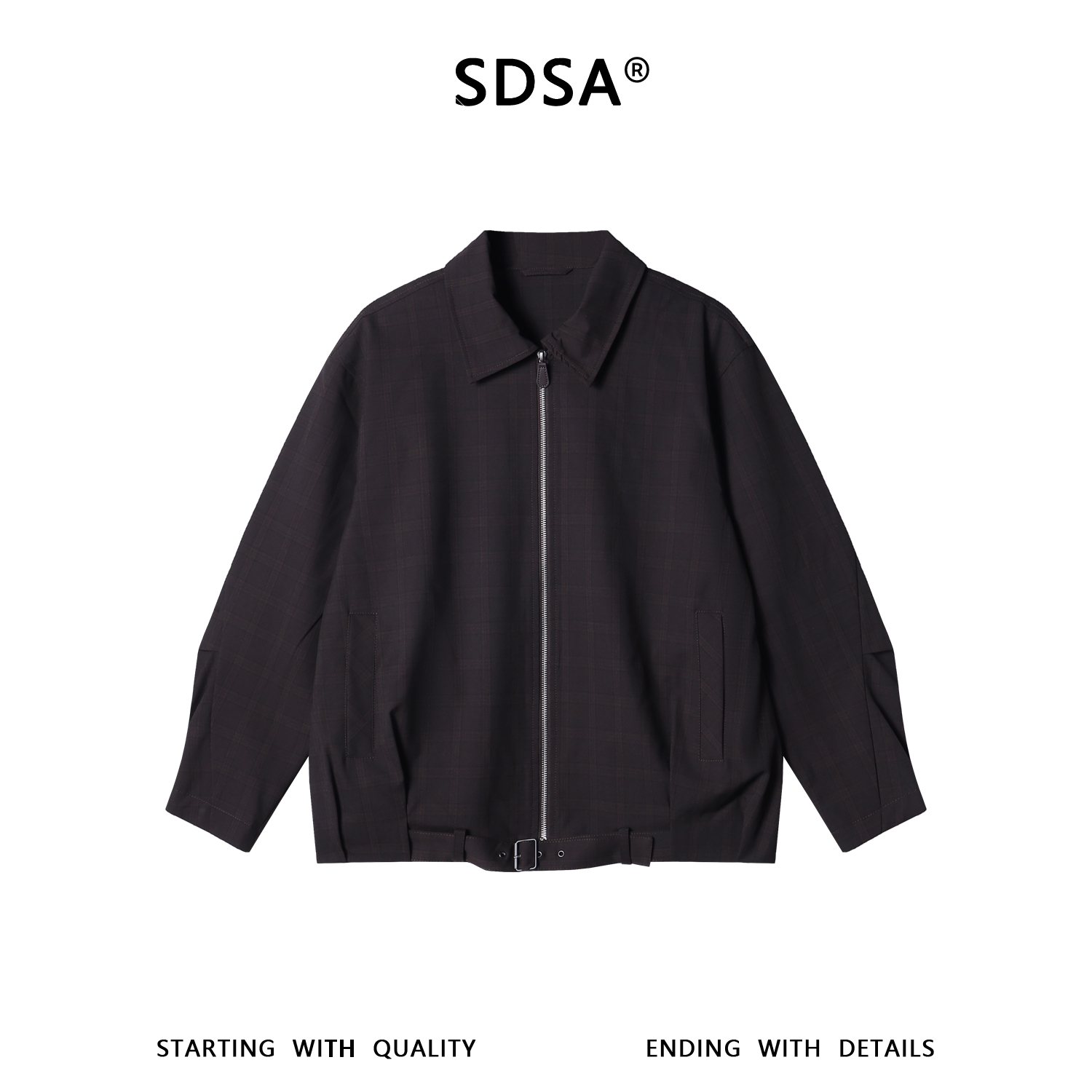 266068SDSA男士春夏新款痞帅男装复古老钱风格纹拉链翻领夹克外套百搭