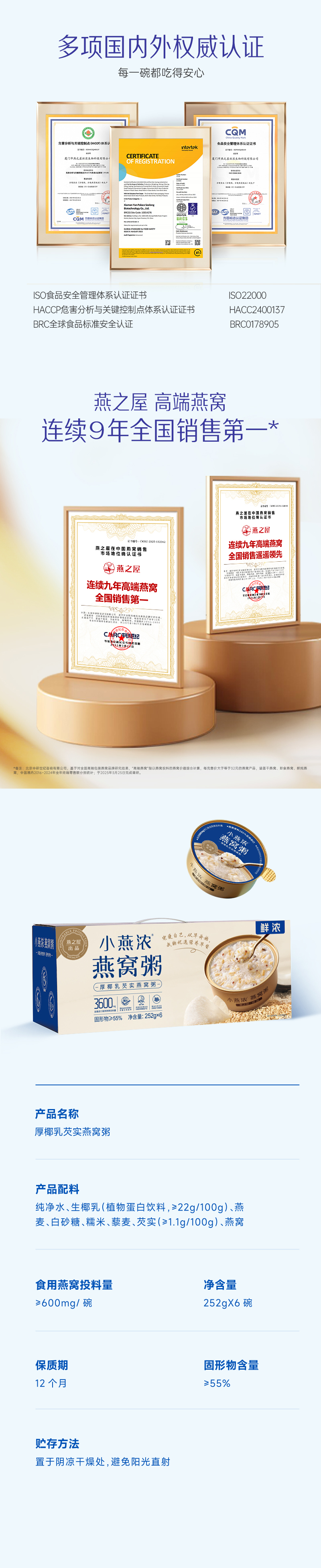 小燕浓·厚椰乳芡实燕窝粥(箱/6盒)