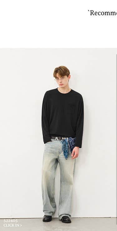 714street水洗纯棉宽松休闲裤男2025秋季新款弯刀裤cleanfit长裤