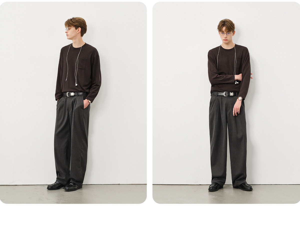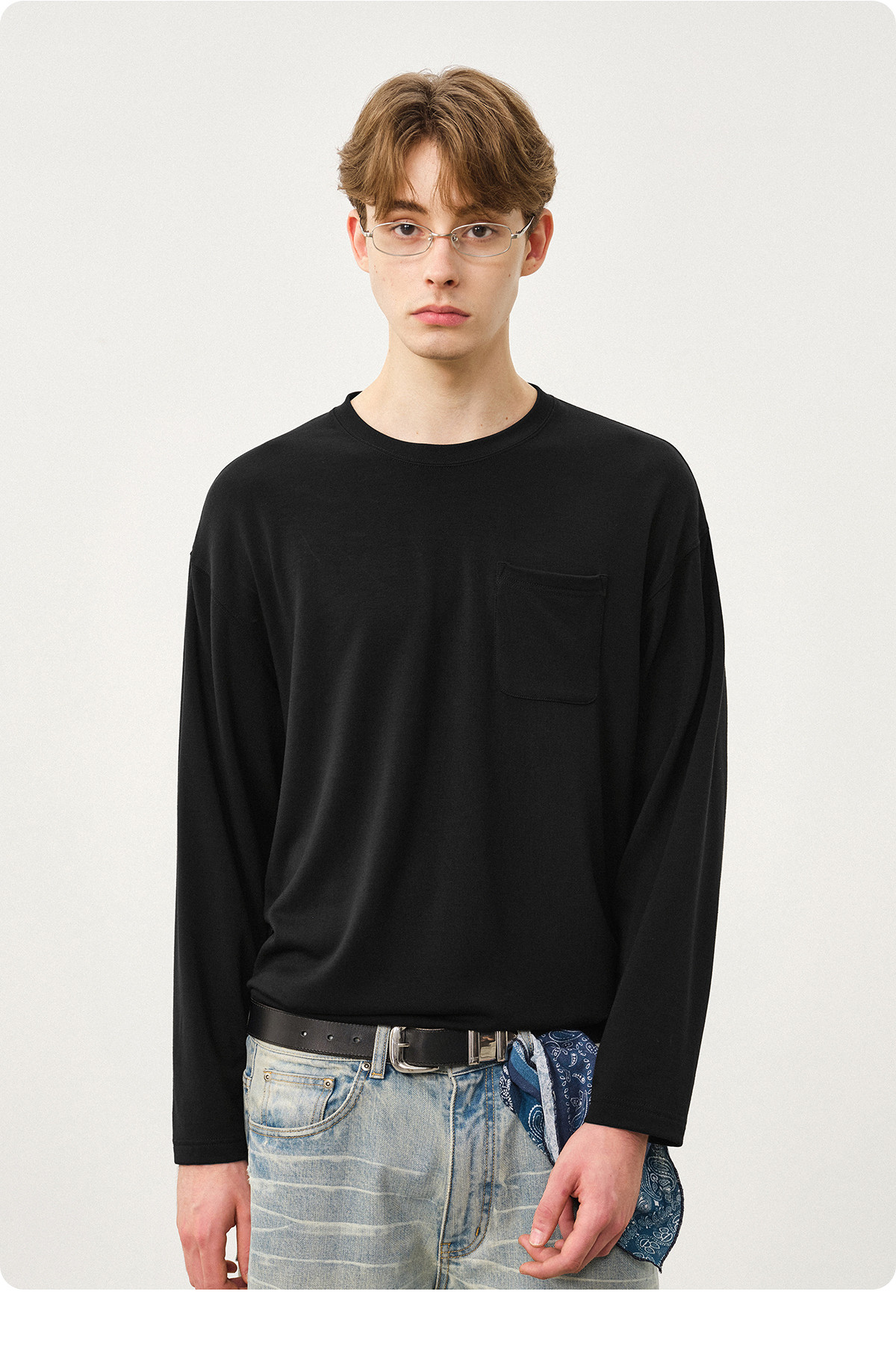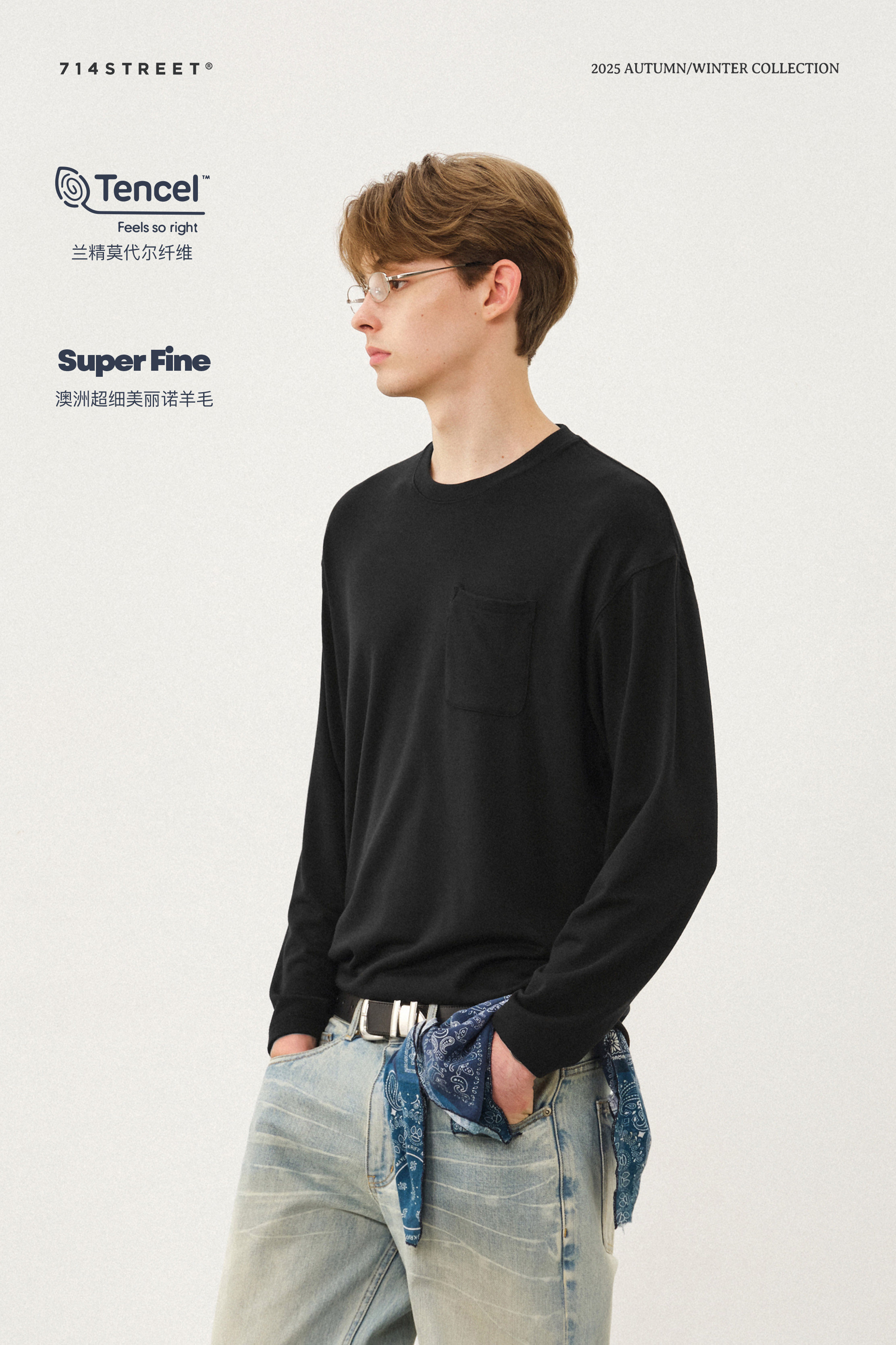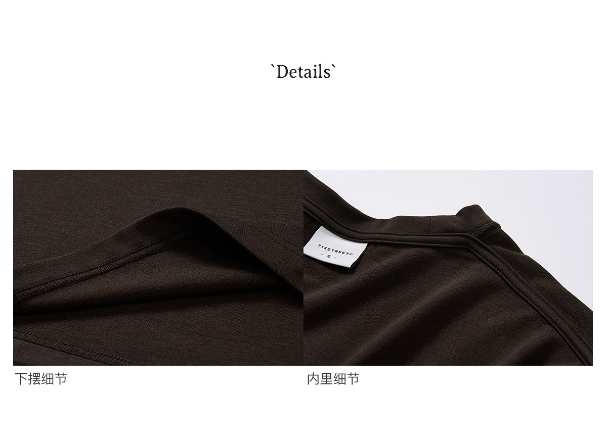 714street美丽诺羊毛混纺打底T恤男2025秋冬情侣装莫代尔长袖上衣