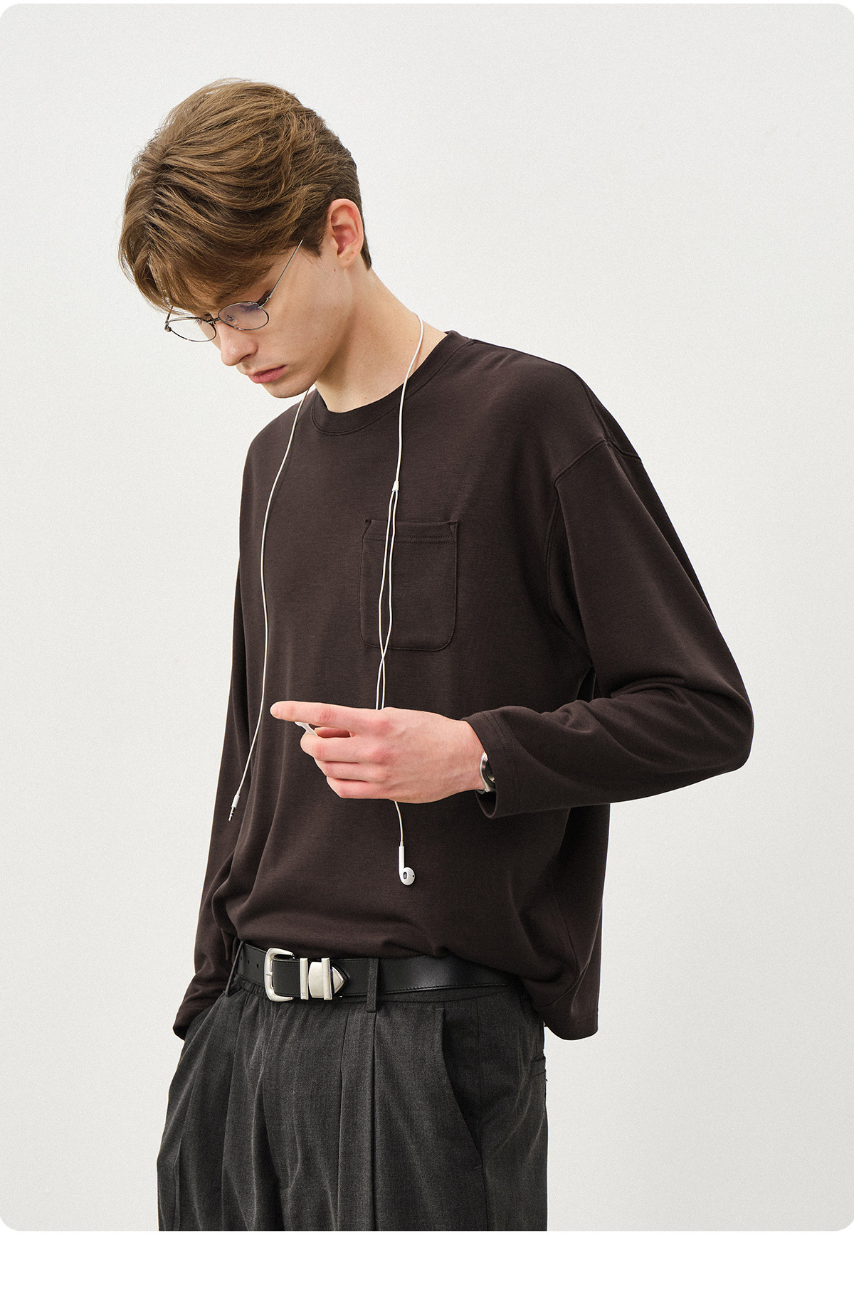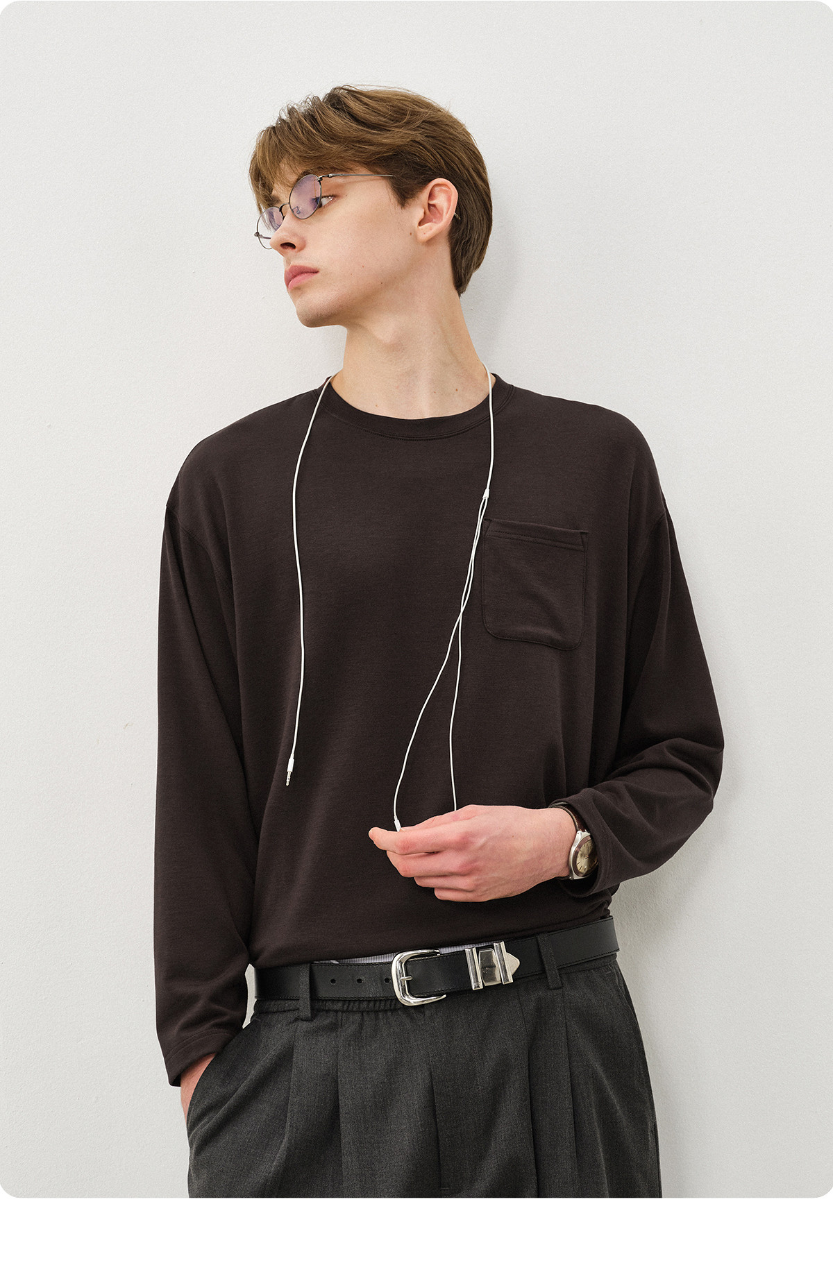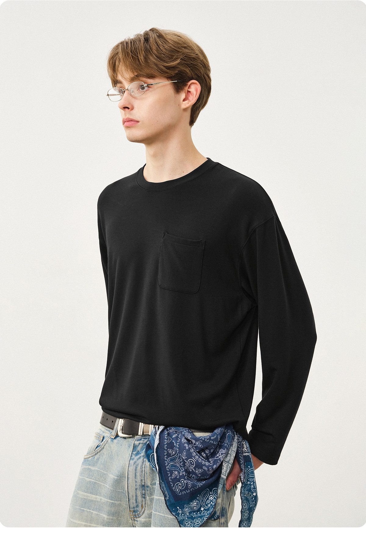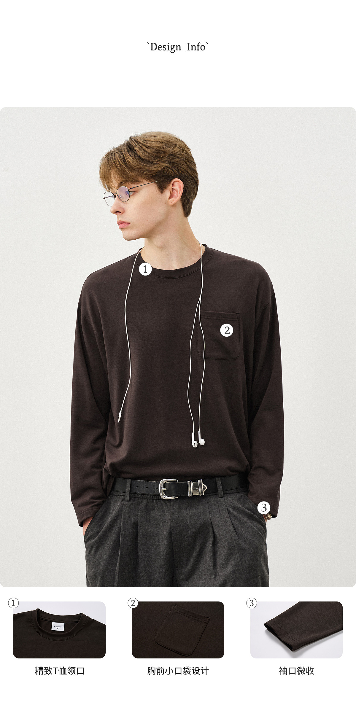 714street美丽诺羊毛混纺打底T恤男2025秋冬情侣装莫代尔长袖上衣