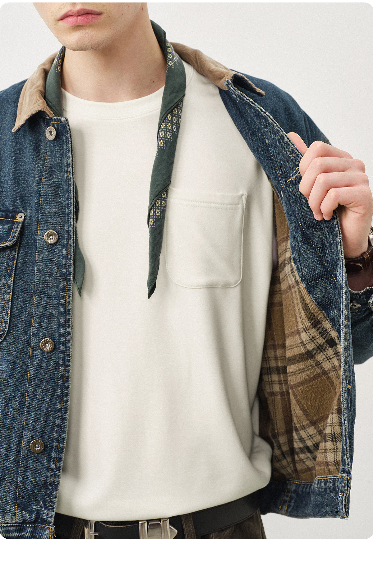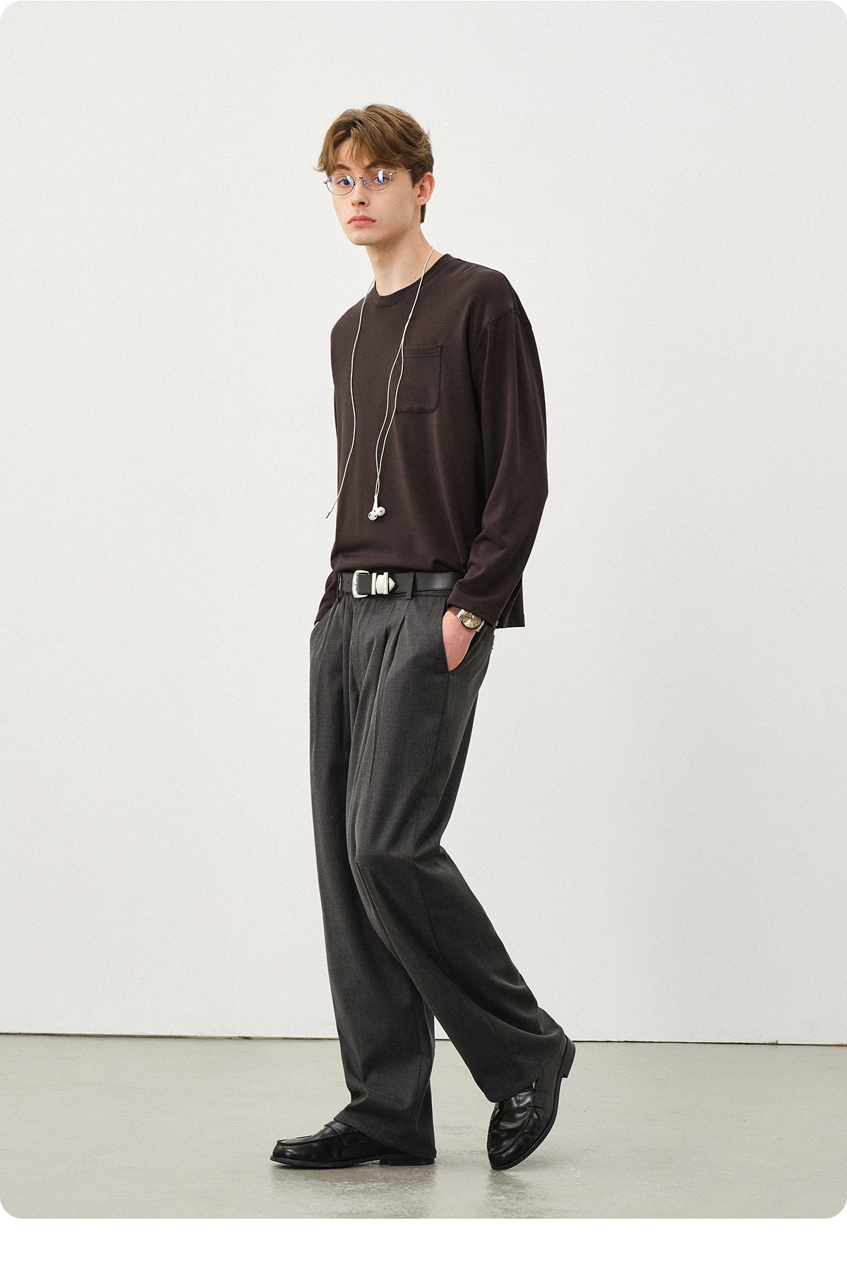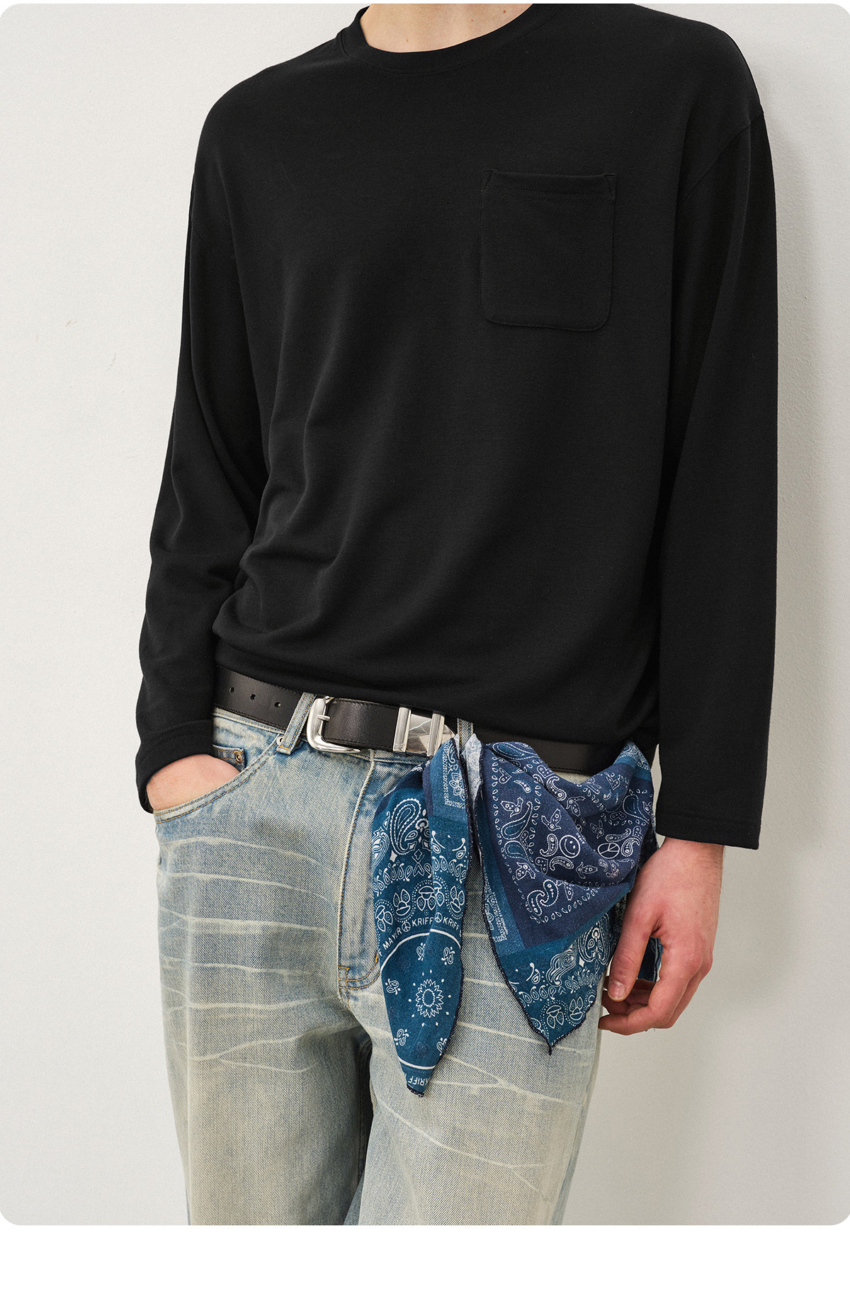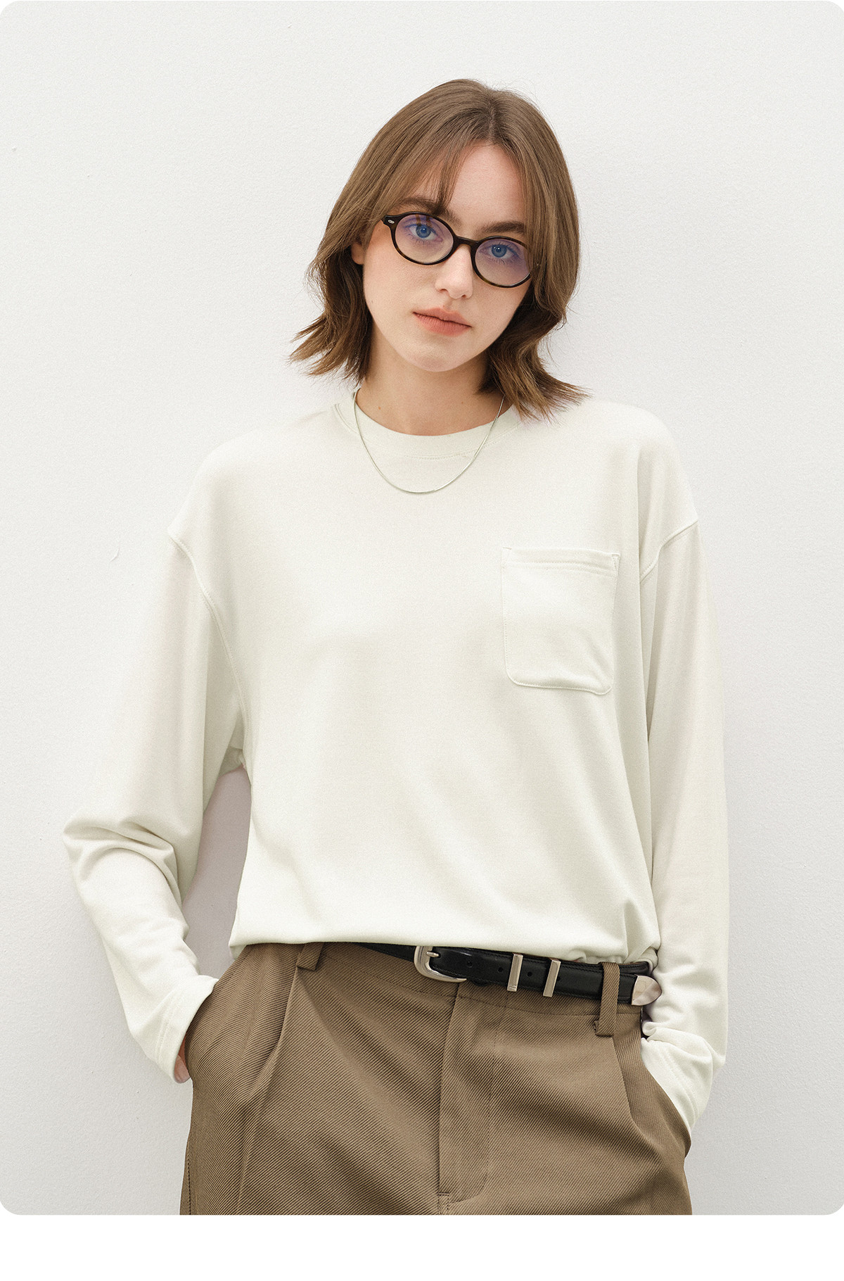 714street美丽诺羊毛混纺打底T恤男2025秋冬情侣装莫代尔长袖上衣