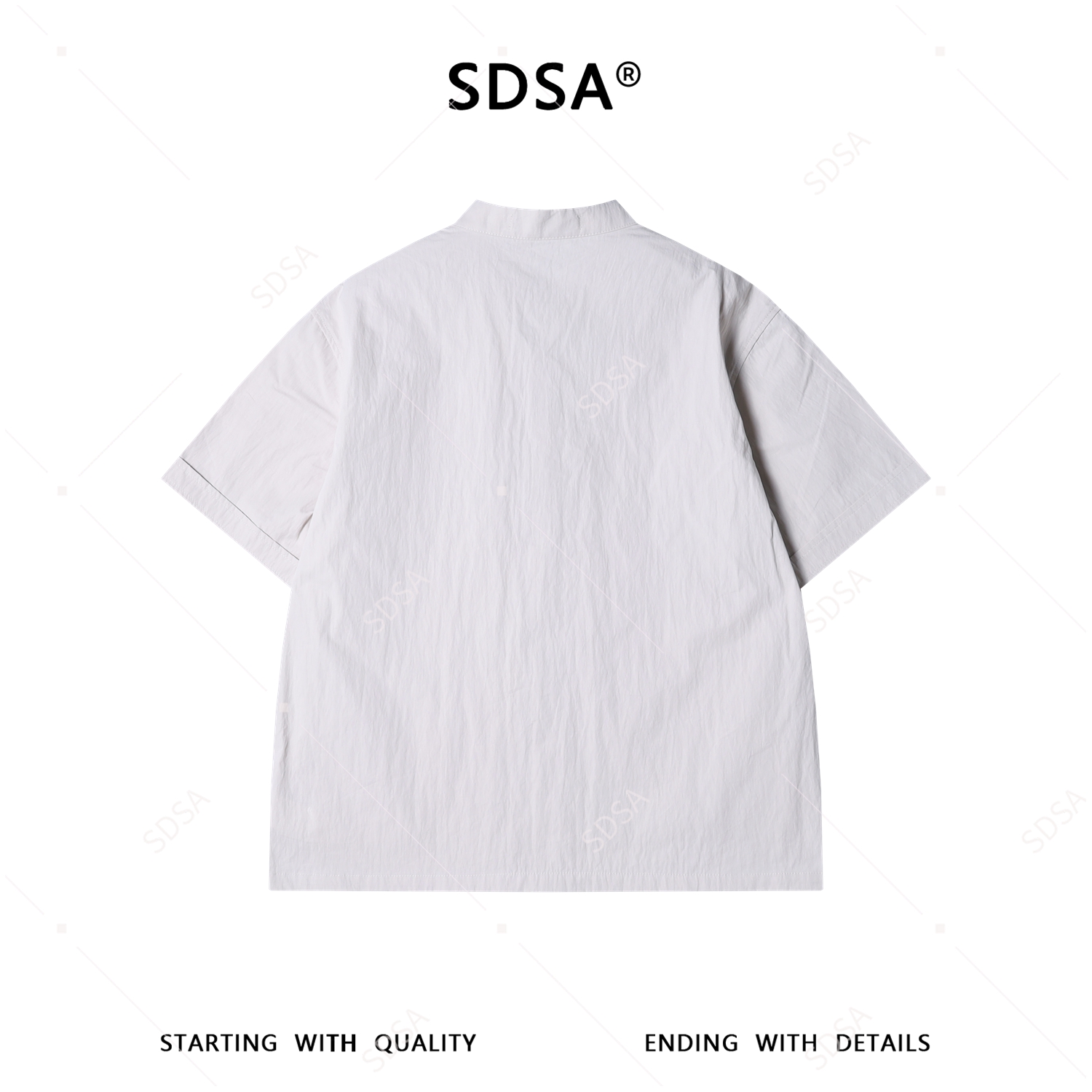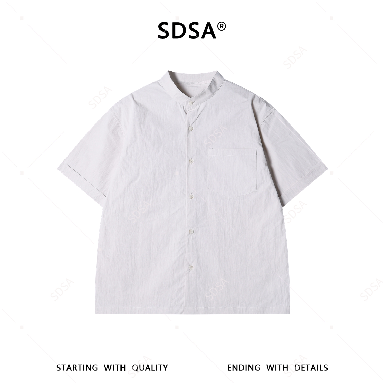 56019SDSA男装2026新款高贵轻奢潮牌简约纯色立领短袖衬衫百搭时尚衬衣