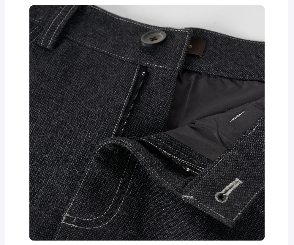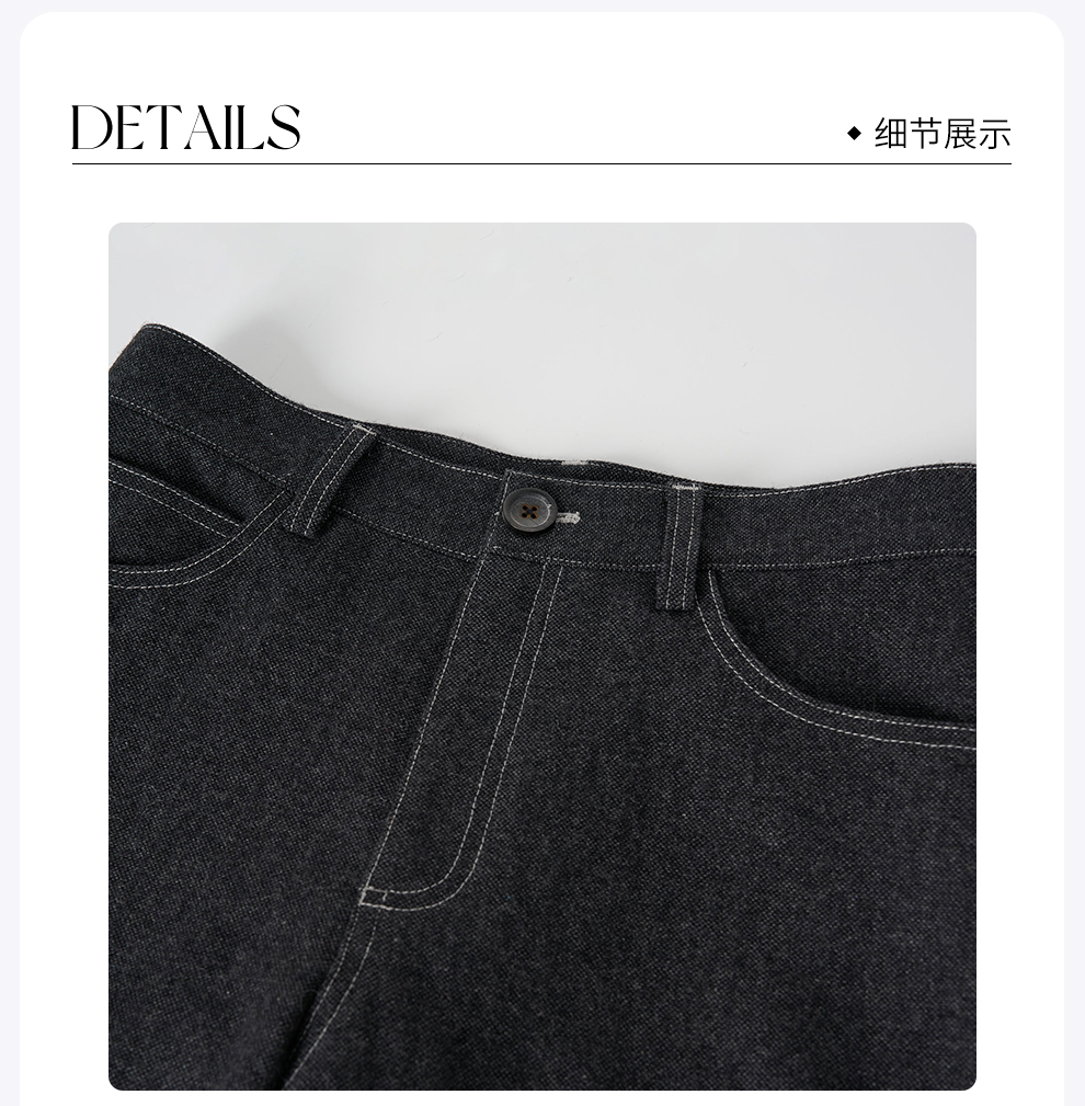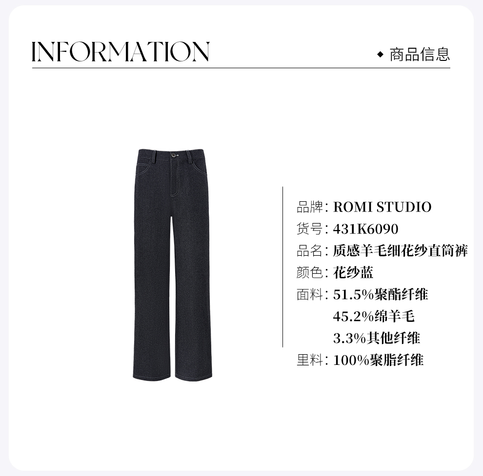 ROMI STUDIO“率性自我”绵羊毛混纺花纱感高腰直筒休闲裤 431K6090