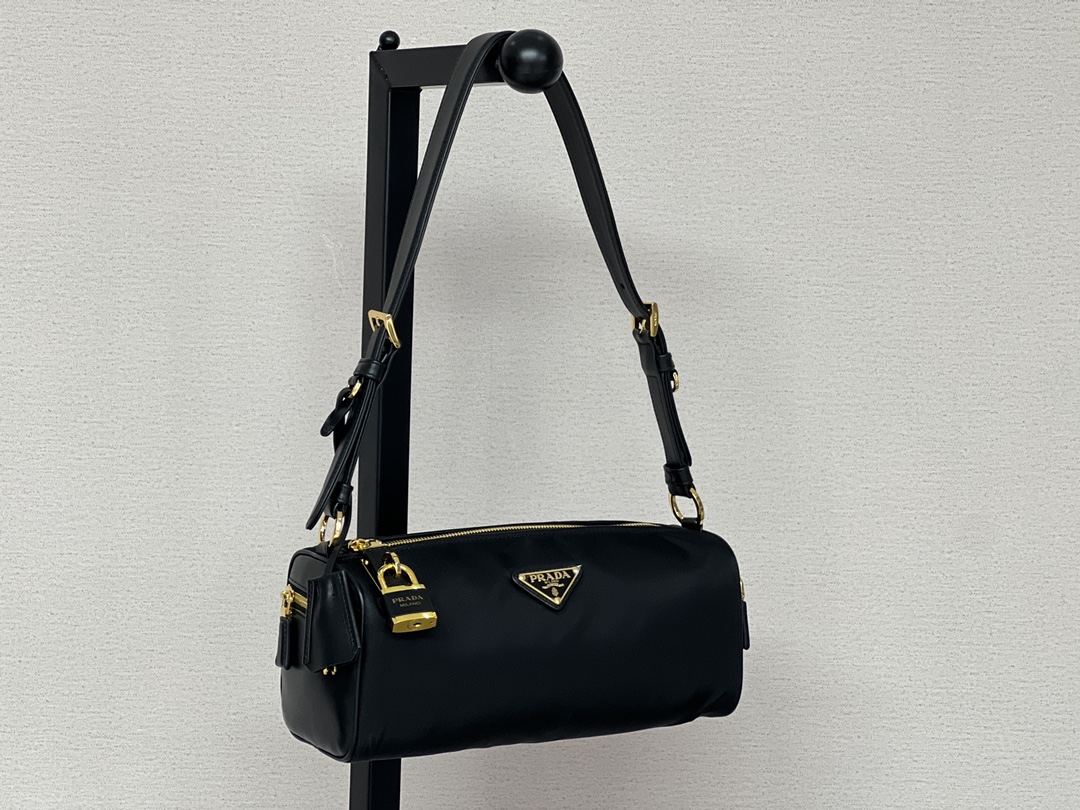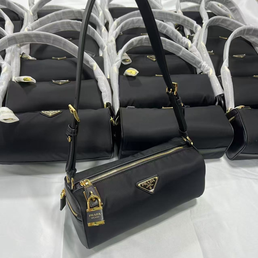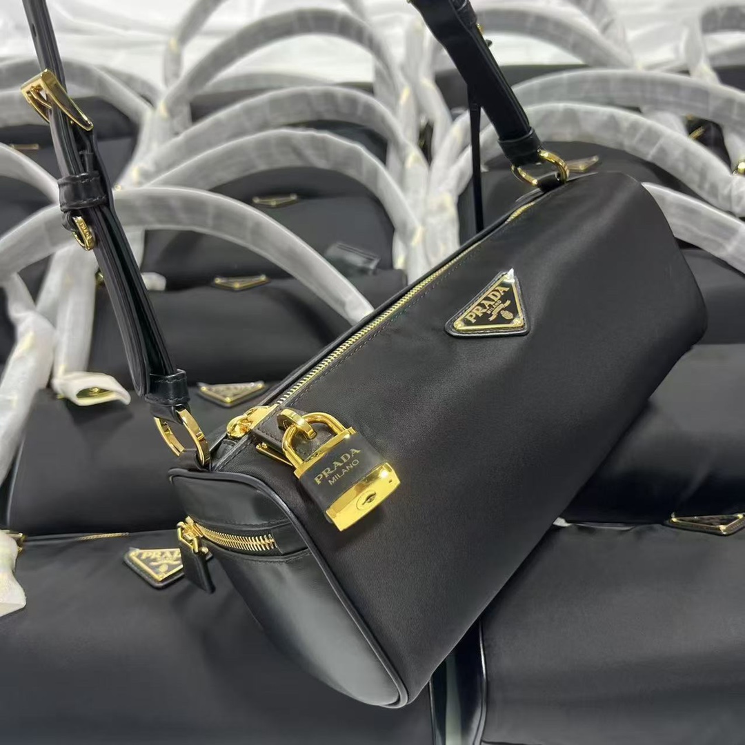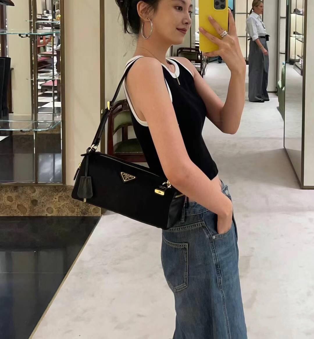普拉达25s新款中号再生尼龙单肩包包包采用再生尼龙Re-Nylon材质和皮革细节装饰(HH)