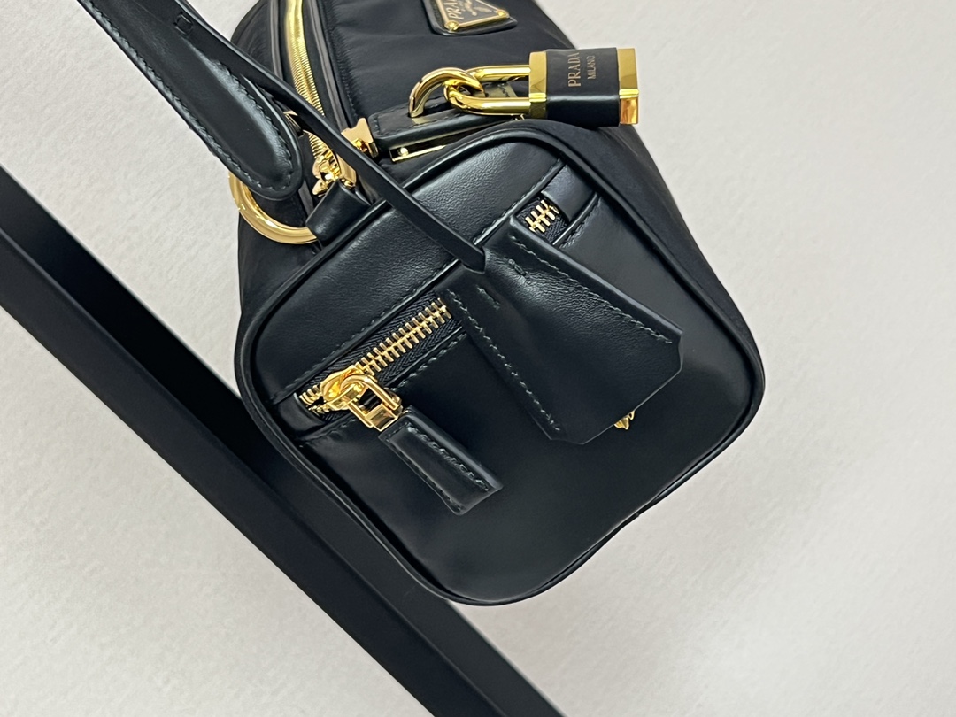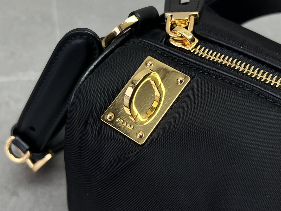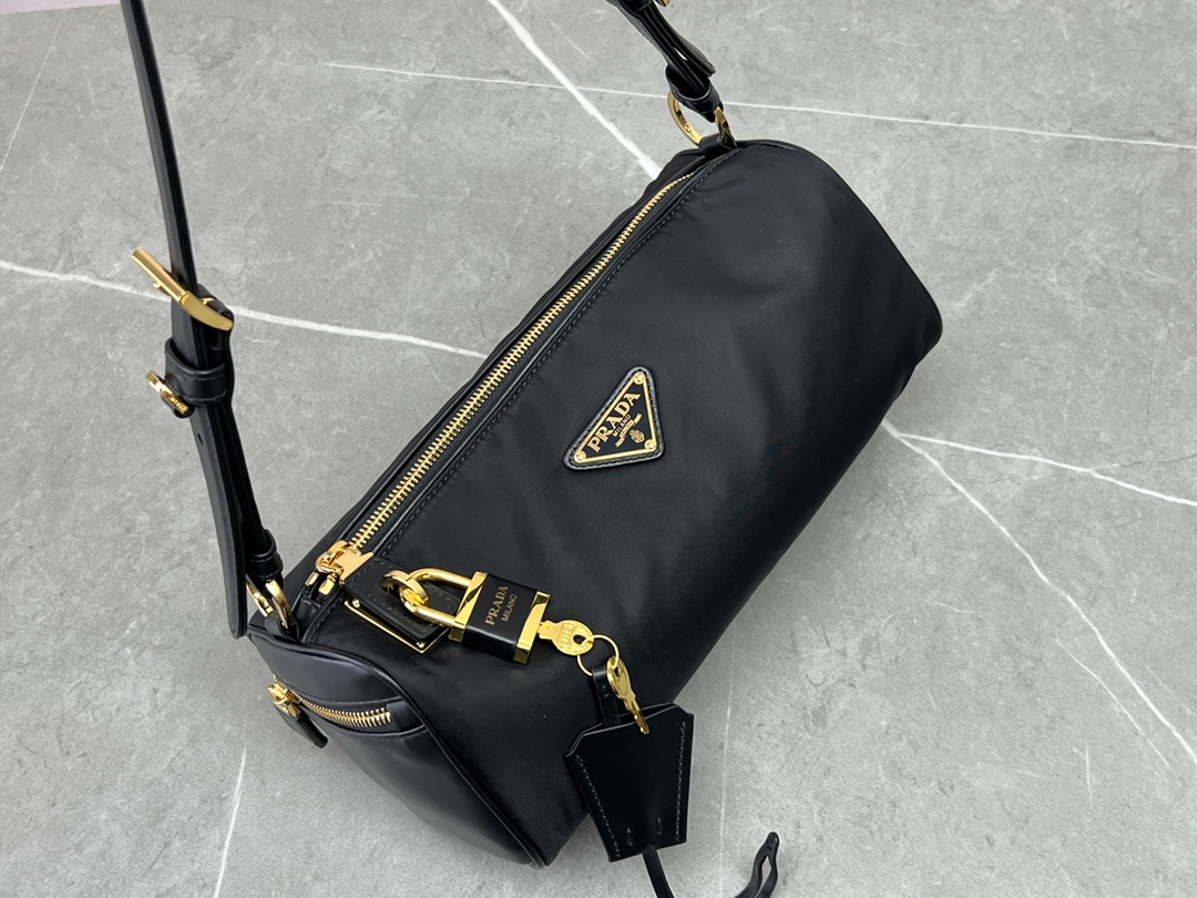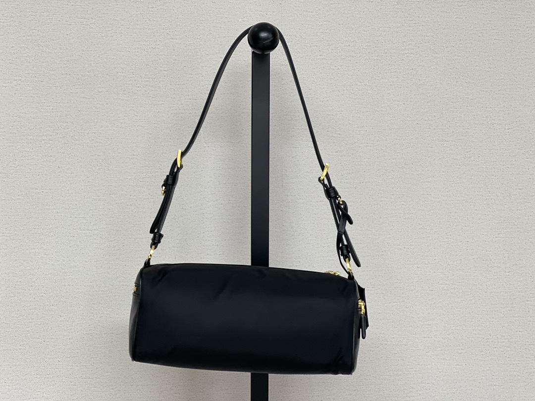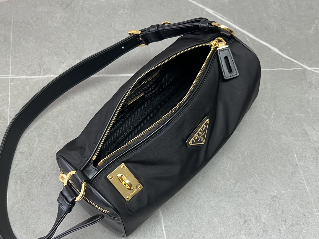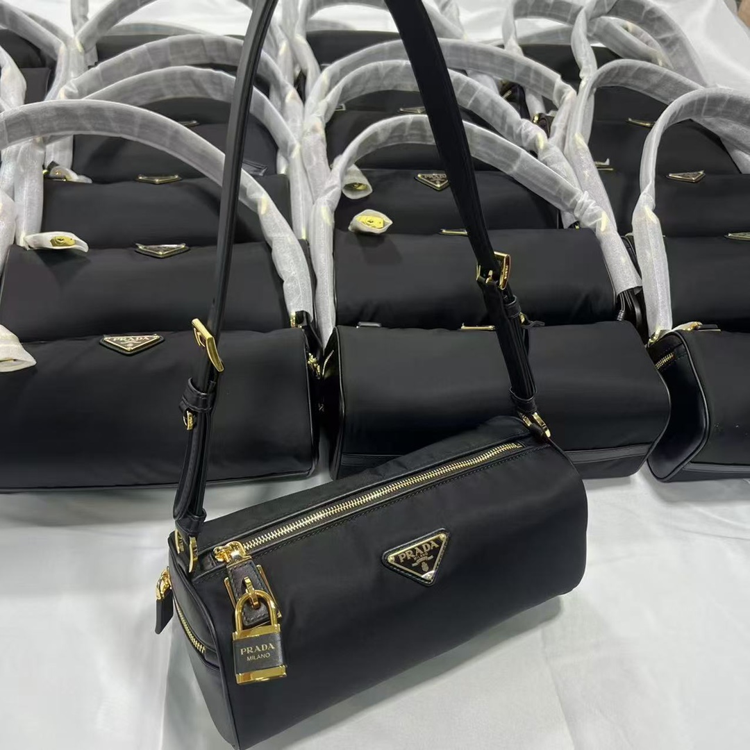 普拉达25s新款中号再生尼龙单肩包包包采用再生尼龙Re-Nylon材质和皮革细节装饰(HH)