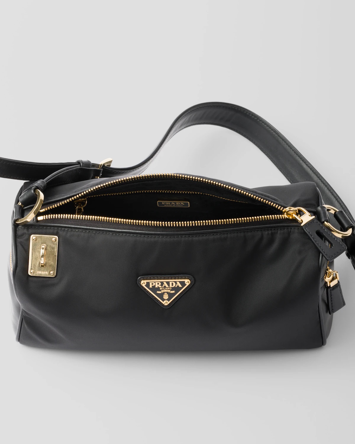 包包采用再生尼龙Re- Nylon材质和皮革细节装饰 精致百搭廓形彰显Prada品牌精髓
