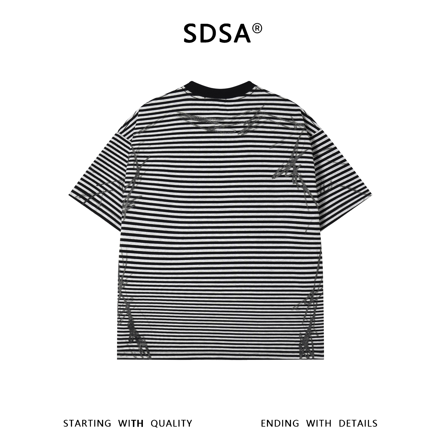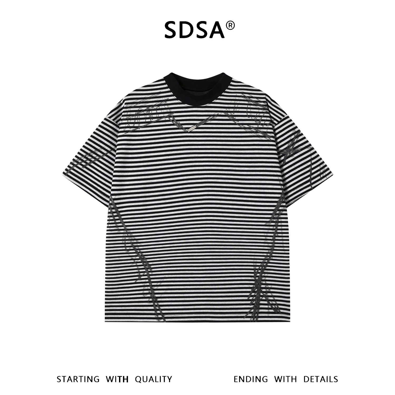 SDSA男装2026新款高贵轻奢手绘涂鸦线条条纹宽松短袖T恤百搭休闲